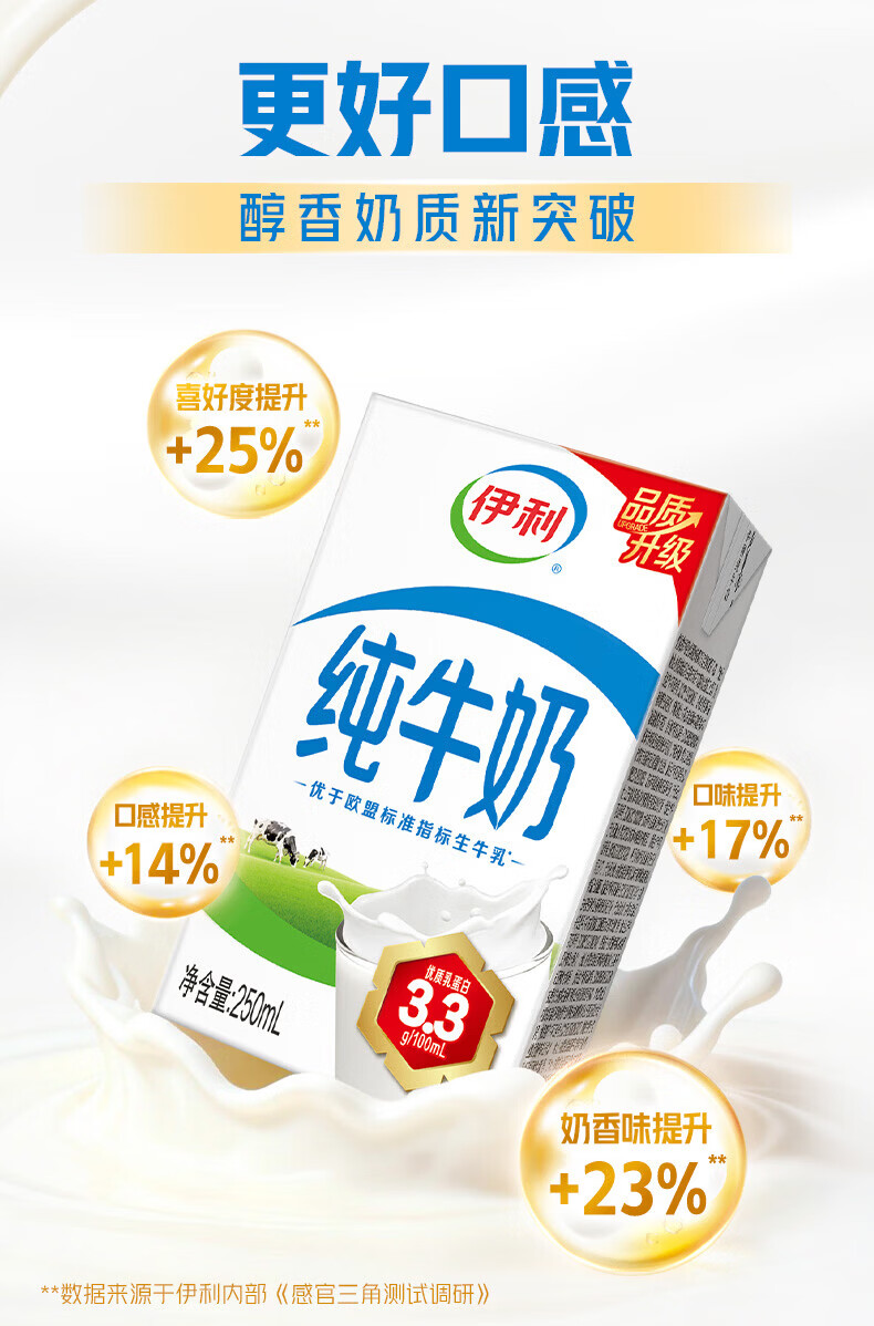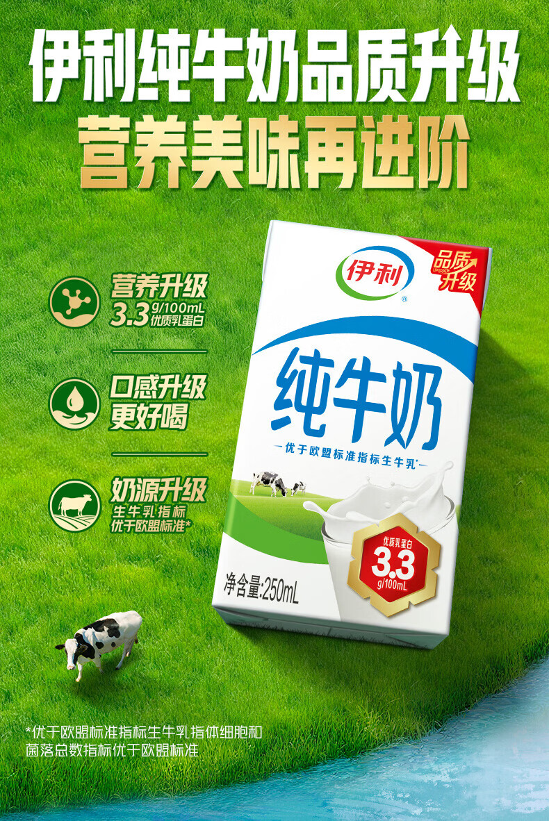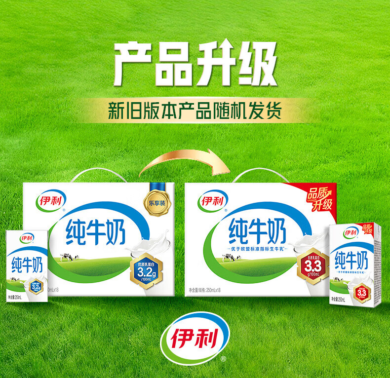 伊利纯牛奶250ml*18盒整箱 品质升级 优质乳蛋白学生早餐礼盒装 1月产 250ml*18盒/箱*2箱