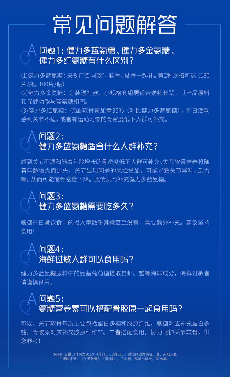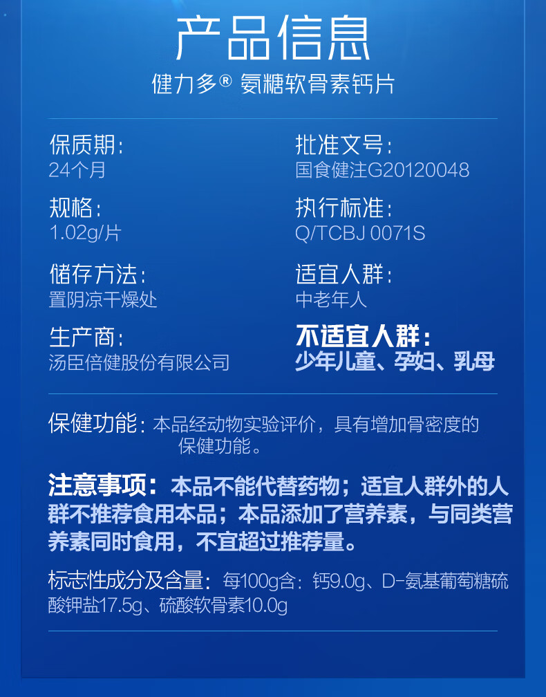 汤臣倍健健力多氨糖软骨素钙片280粒中老年关节补钙骨胶原 中老年补钙片