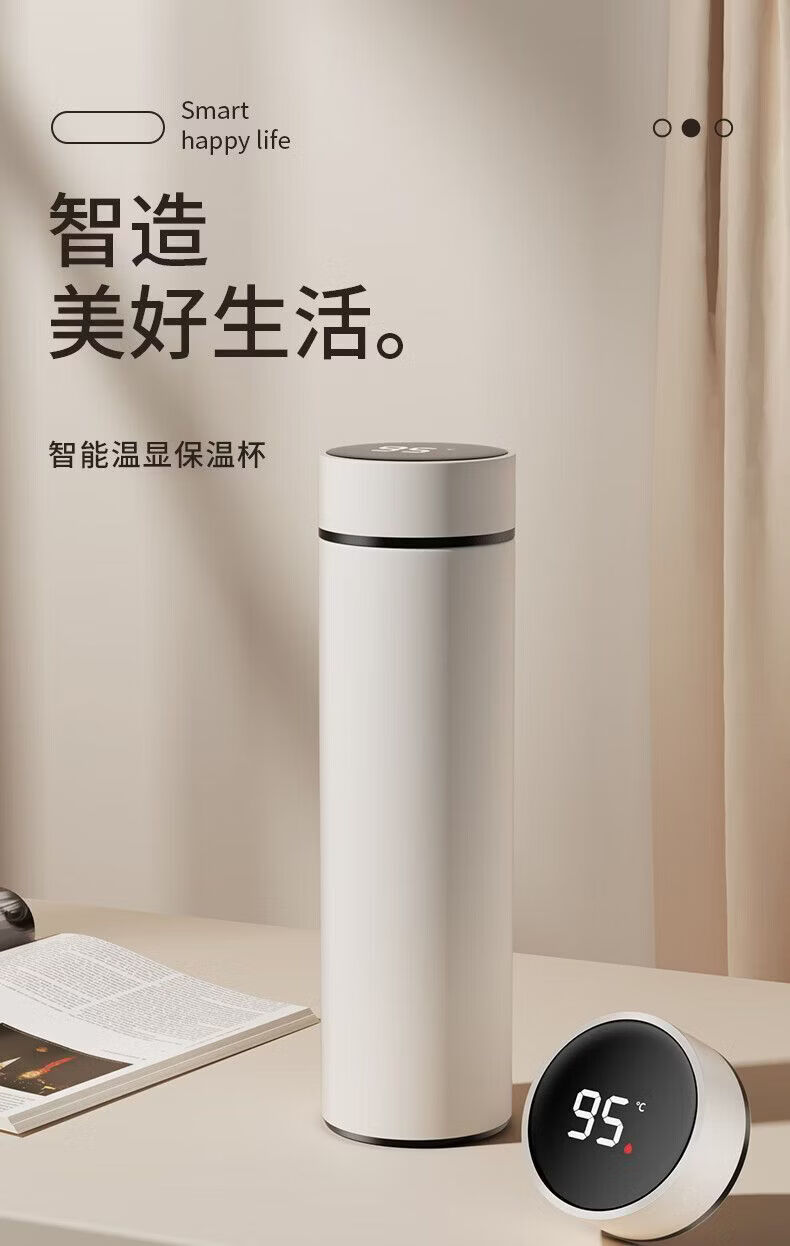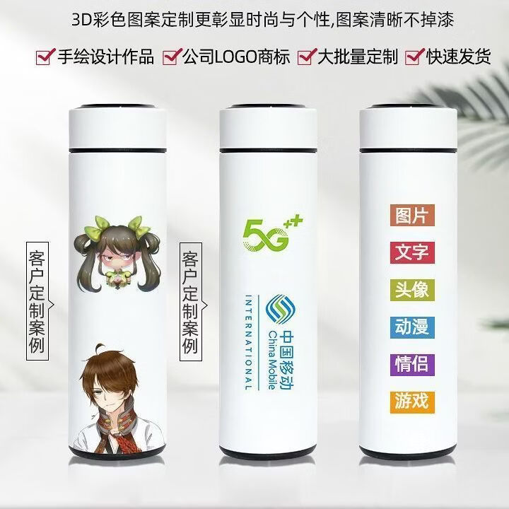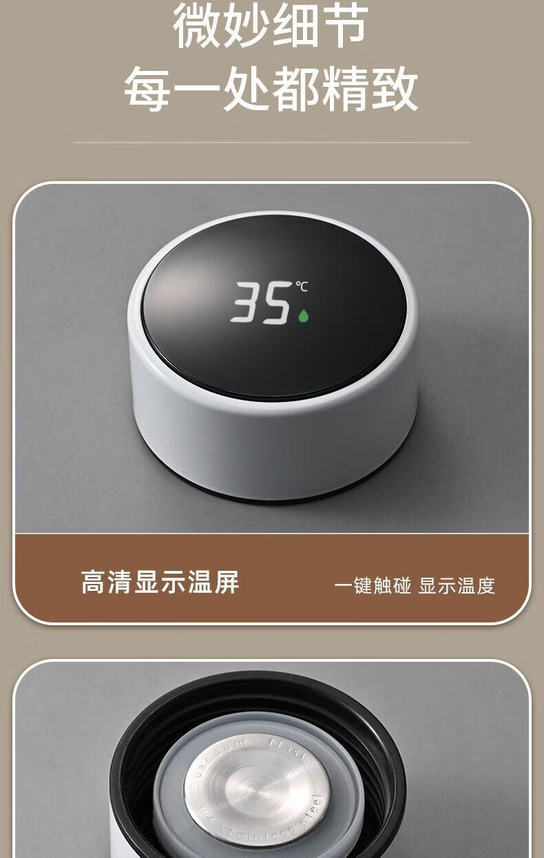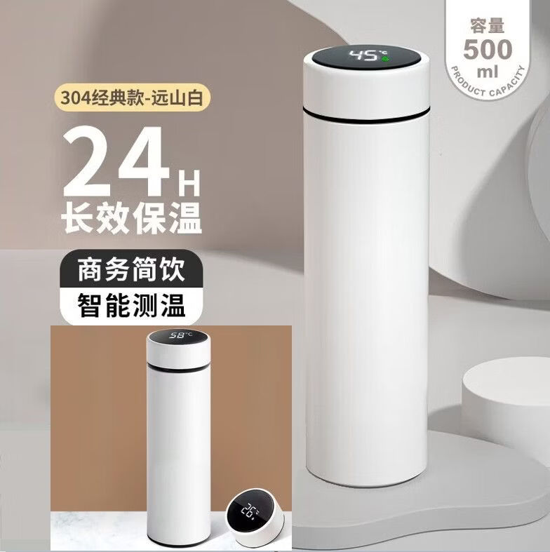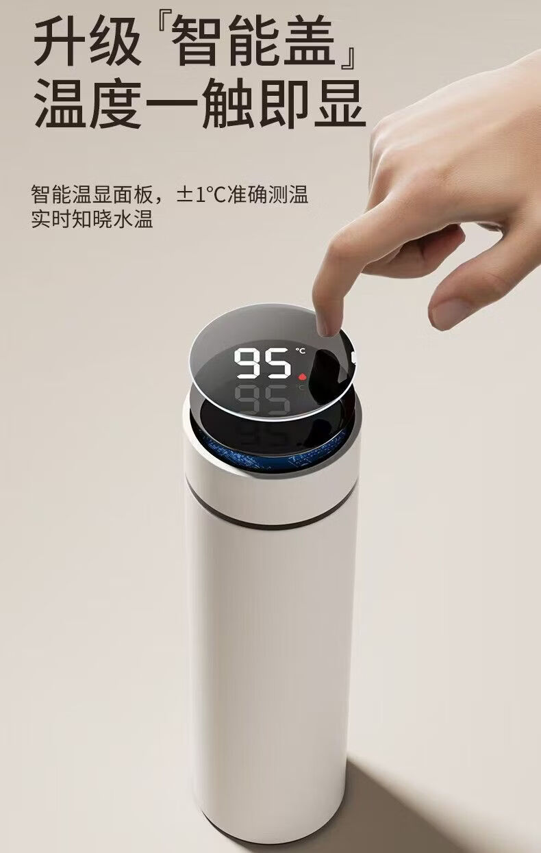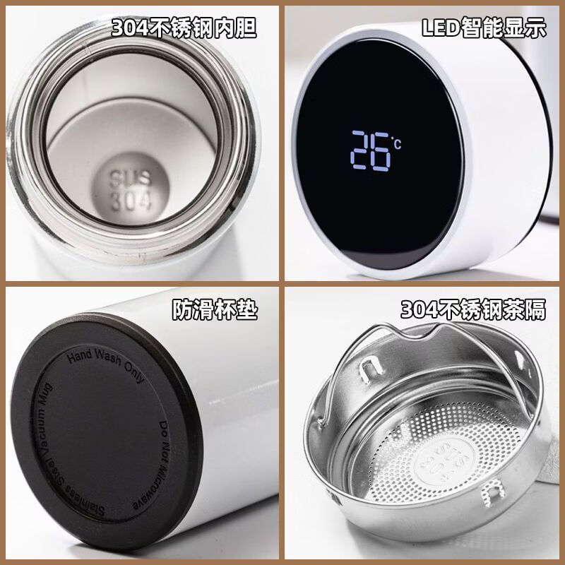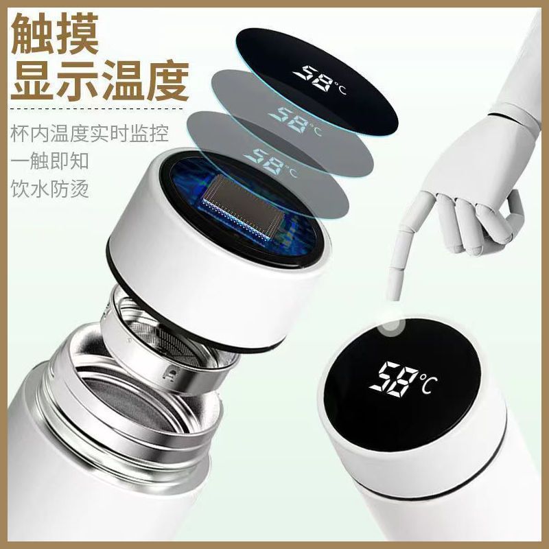 肥肥鲨保温水杯可爱搞笑搞怪表情杯子个性便携显温不锈钢保温杯 来图定制 500ml 送茶隔【显示温度8-12小时保冷保温】