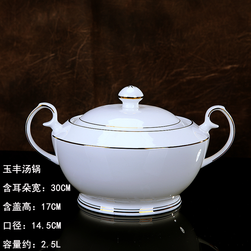 锦秋堂 景德镇陶瓷器 骨瓷餐具家用饭碗 面碗 烤碗 汤碗 沙拉碗单件散买 花蕾汤碗(汤锅带盖)