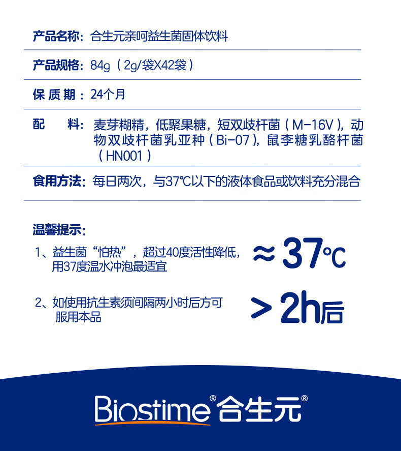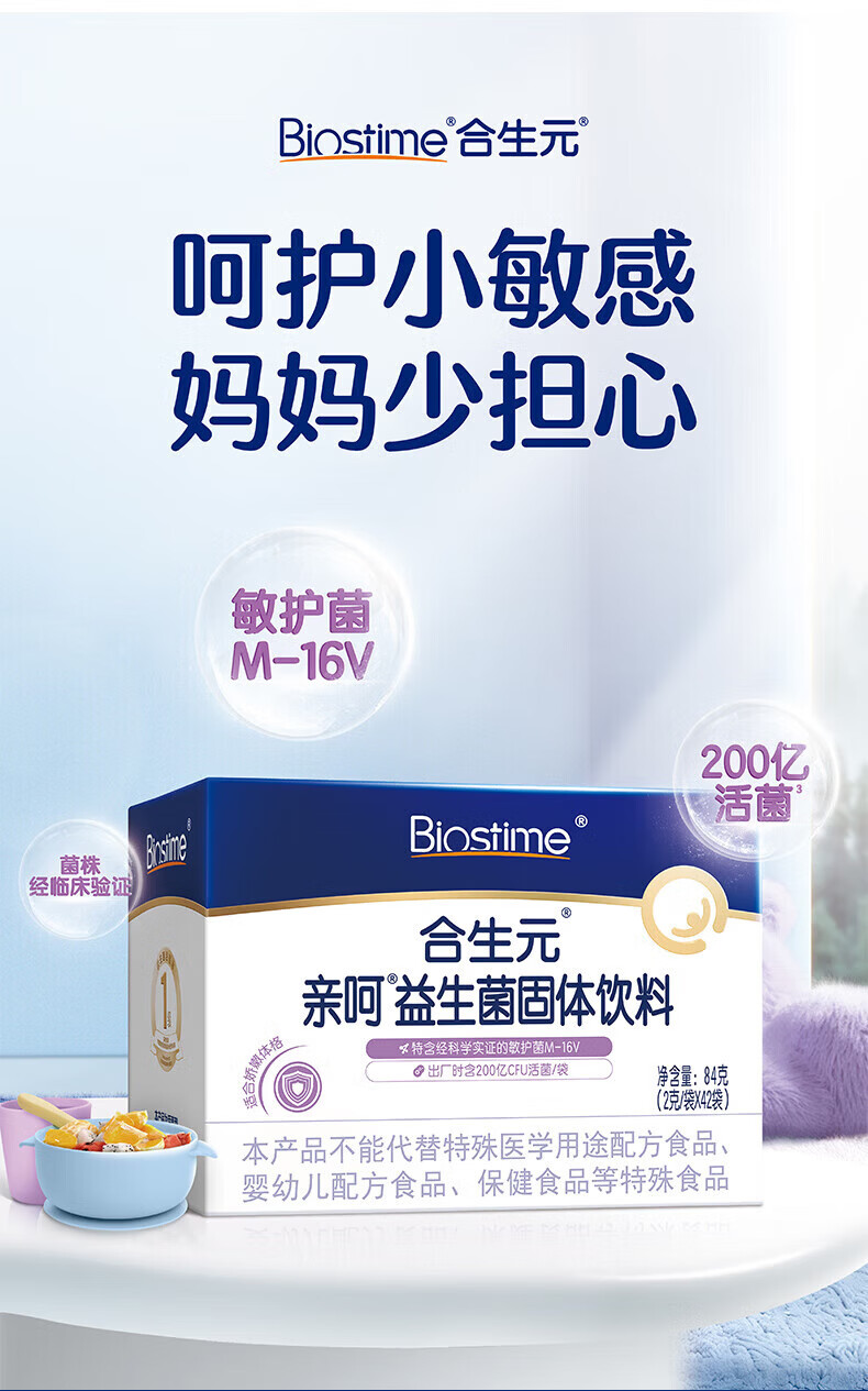 合生元(BIOSTIME)舒敏益生菌婴幼儿儿童亲呵 调理肠胃改善敏敏 42袋 亲呵益生菌 42袋*1盒 【舒敏呵护】