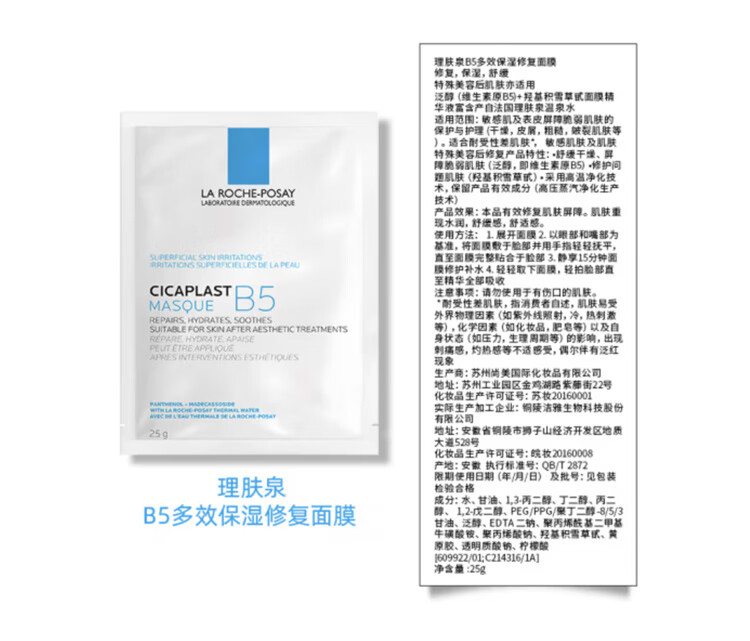 理肤泉(LA ROCHE-POSAY)B5多效保湿修复面膜5片(无盒装)补水保湿长效呵护舒缓随机发货