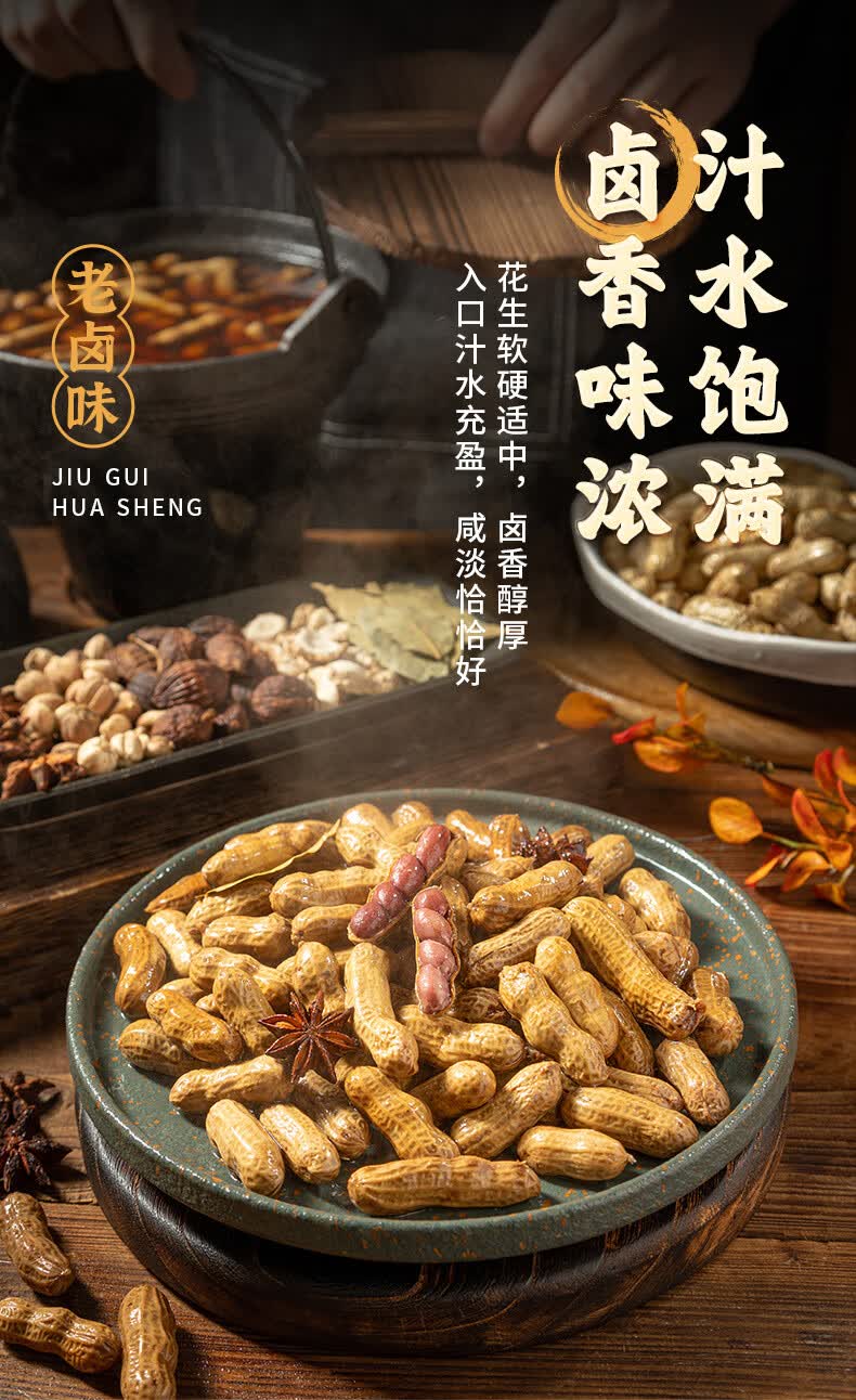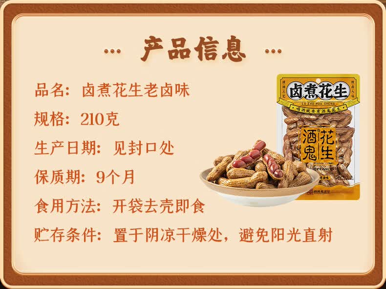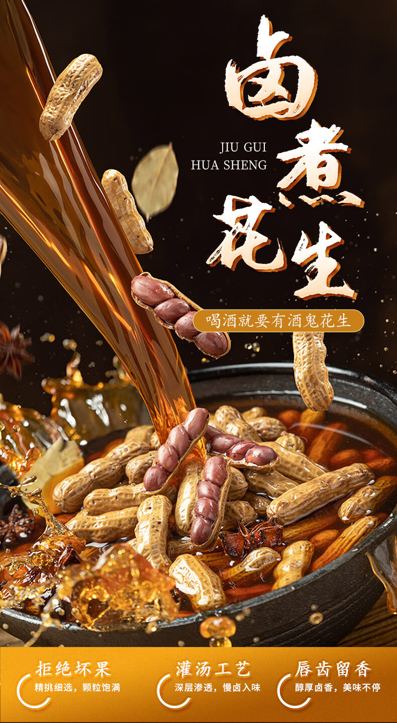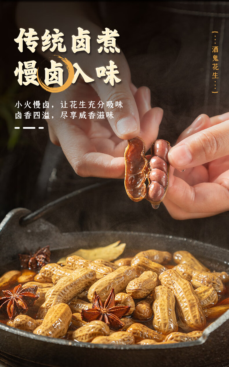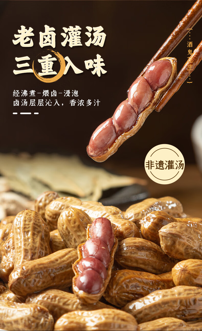 酒鬼带壳卤汁花生老卤五香味210g水煮花生熟花生下酒菜小吃零食