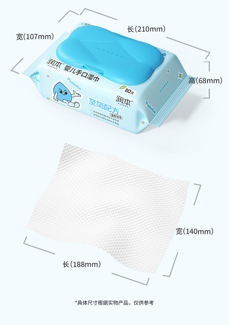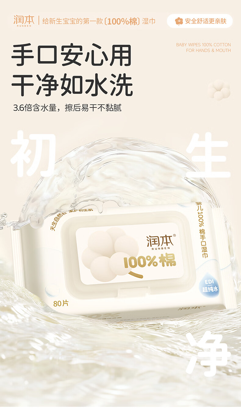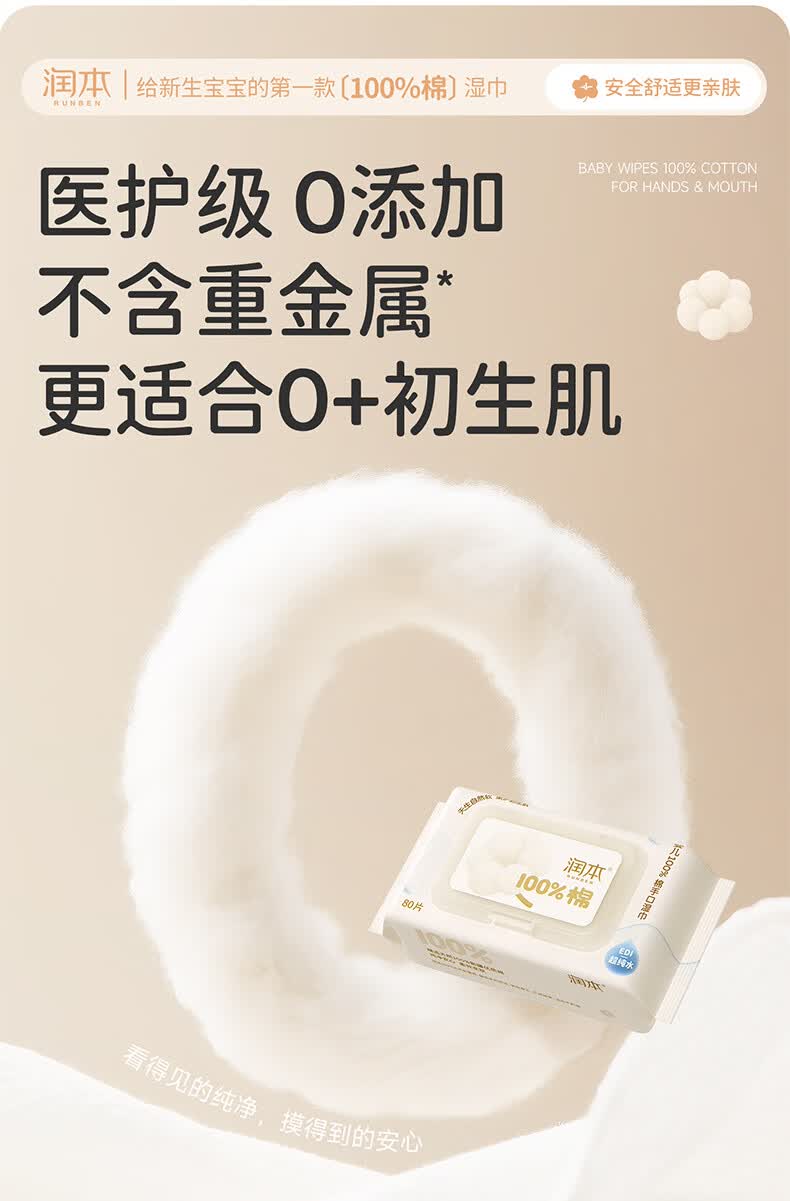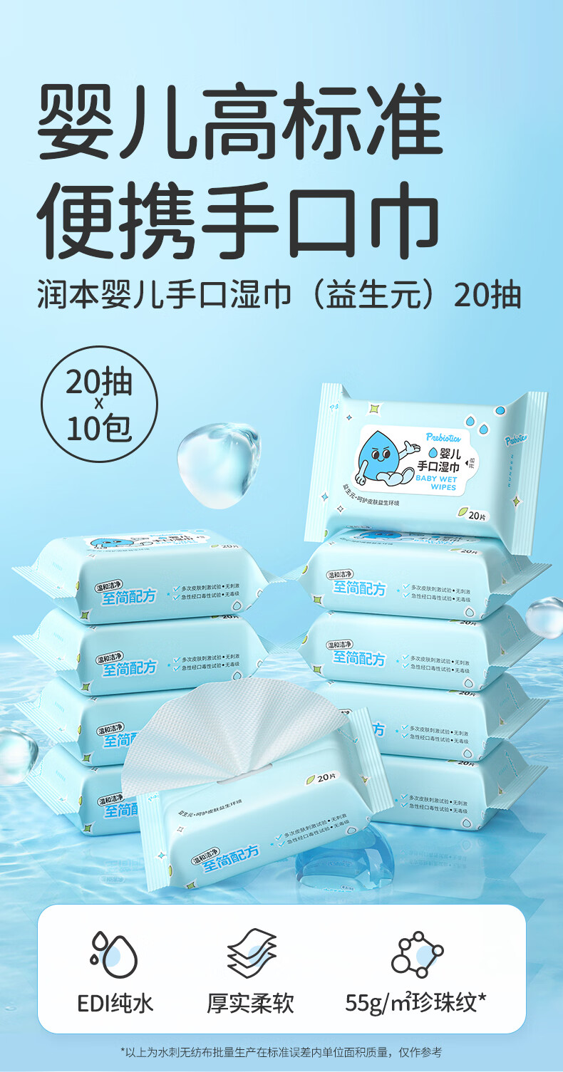 润本湿巾婴儿湿巾湿纸巾儿童宝宝手口湿巾屁屁专用湿巾小包便携新疆棉 【热销爆款】 80抽 10包 手口湿巾
