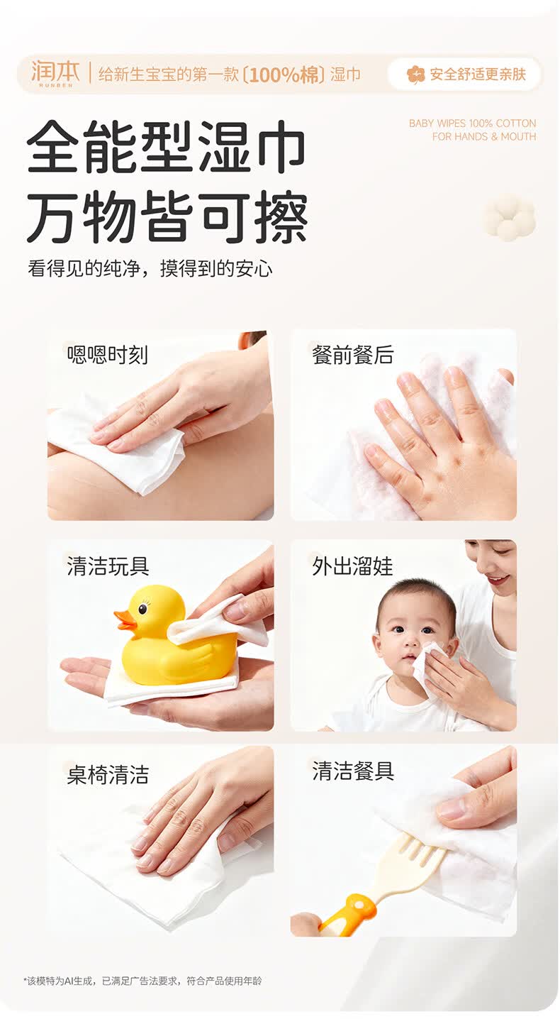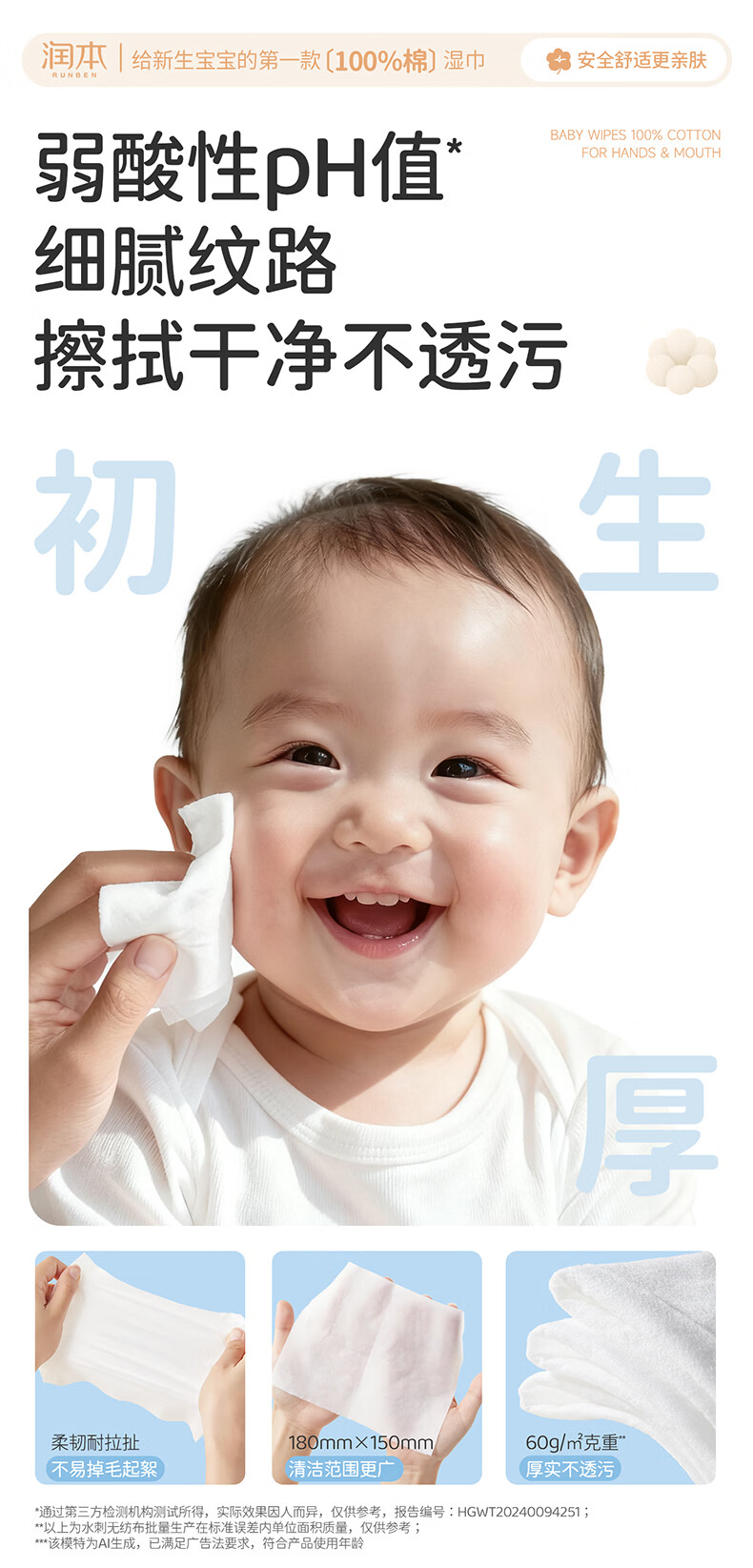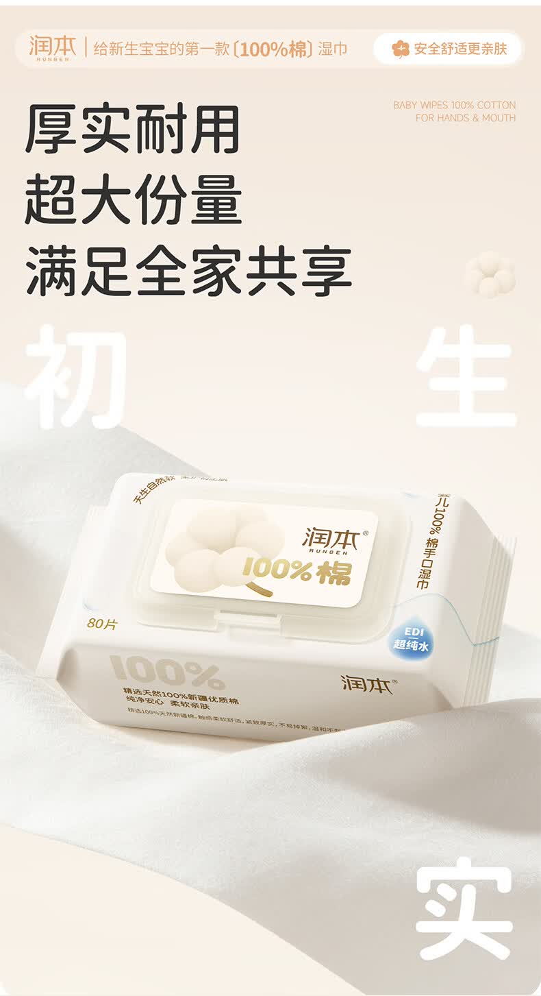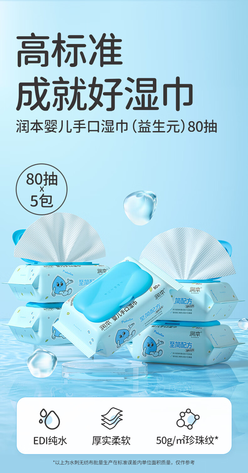 润本湿巾婴儿湿巾湿纸巾儿童宝宝手口湿巾屁屁专用湿巾小包便携新疆棉 【热销爆款】 80抽 10包 手口湿巾