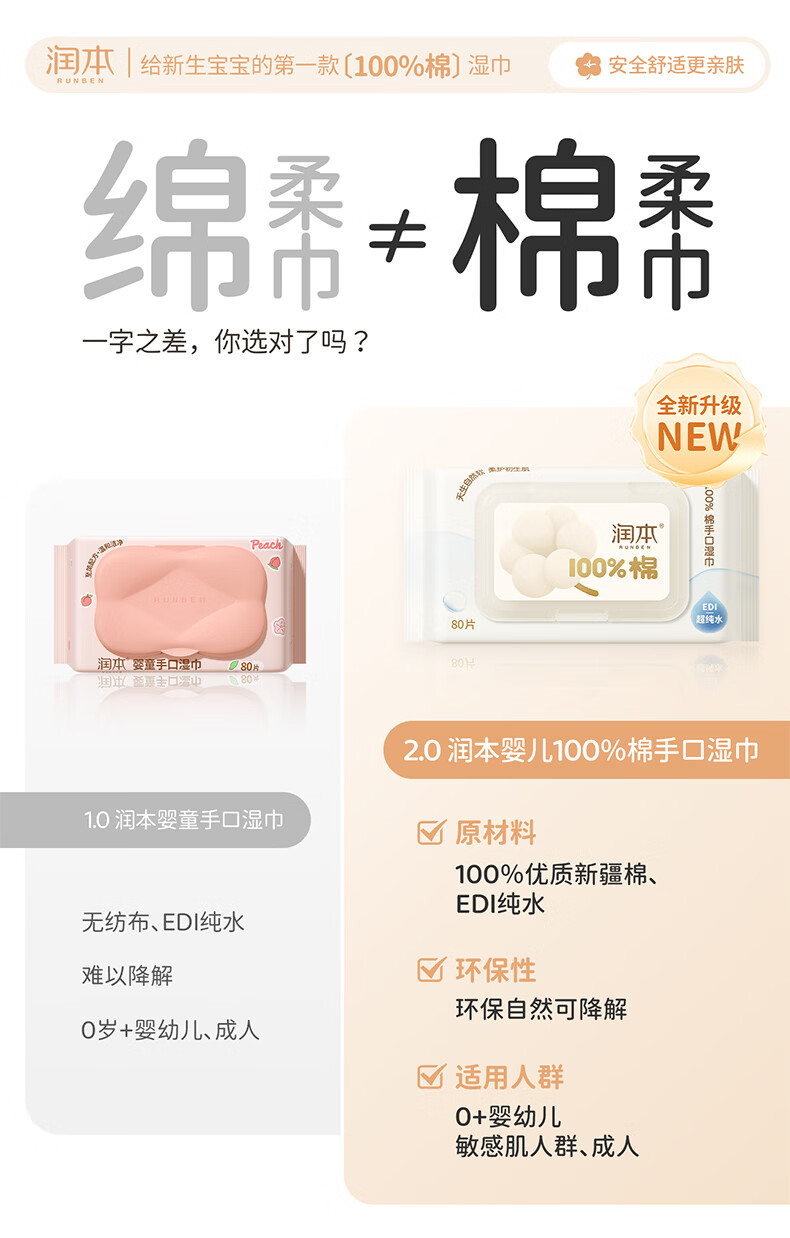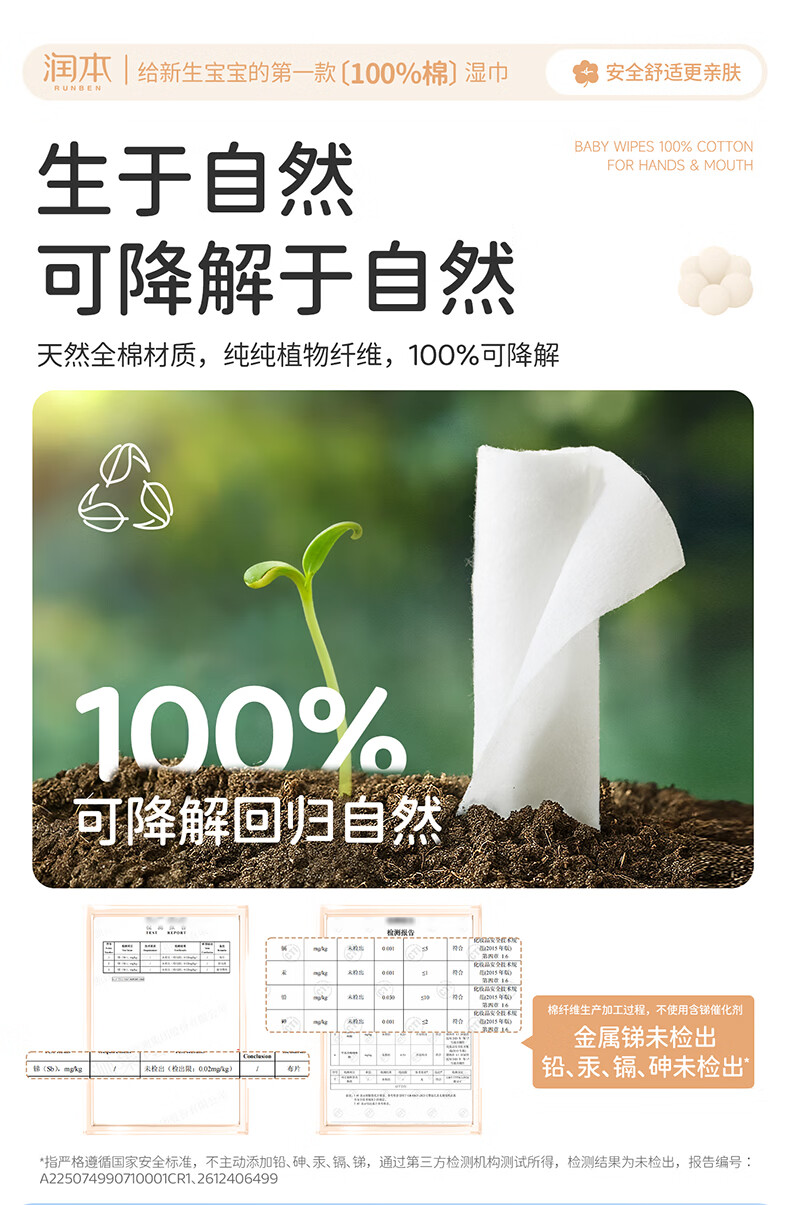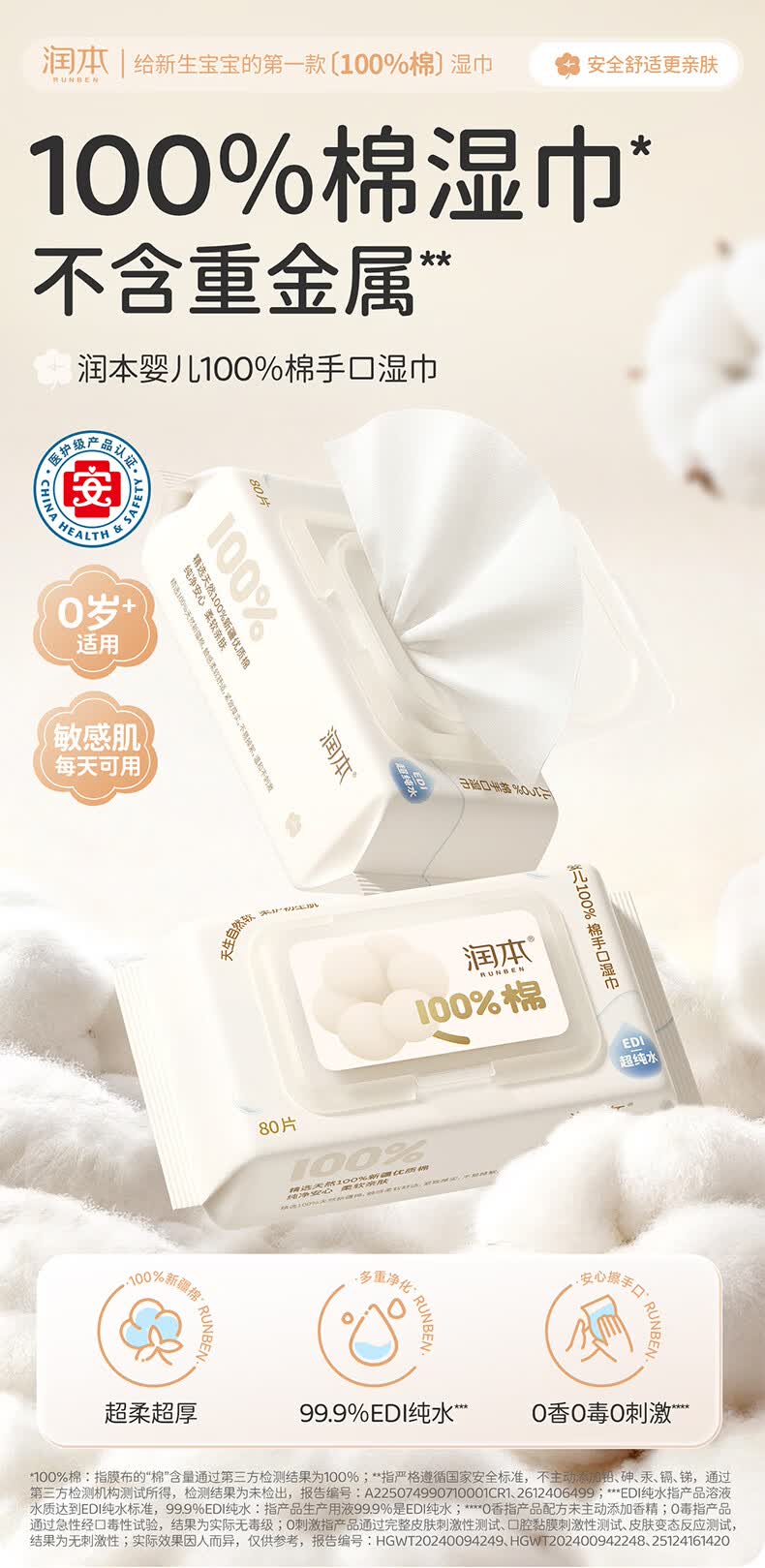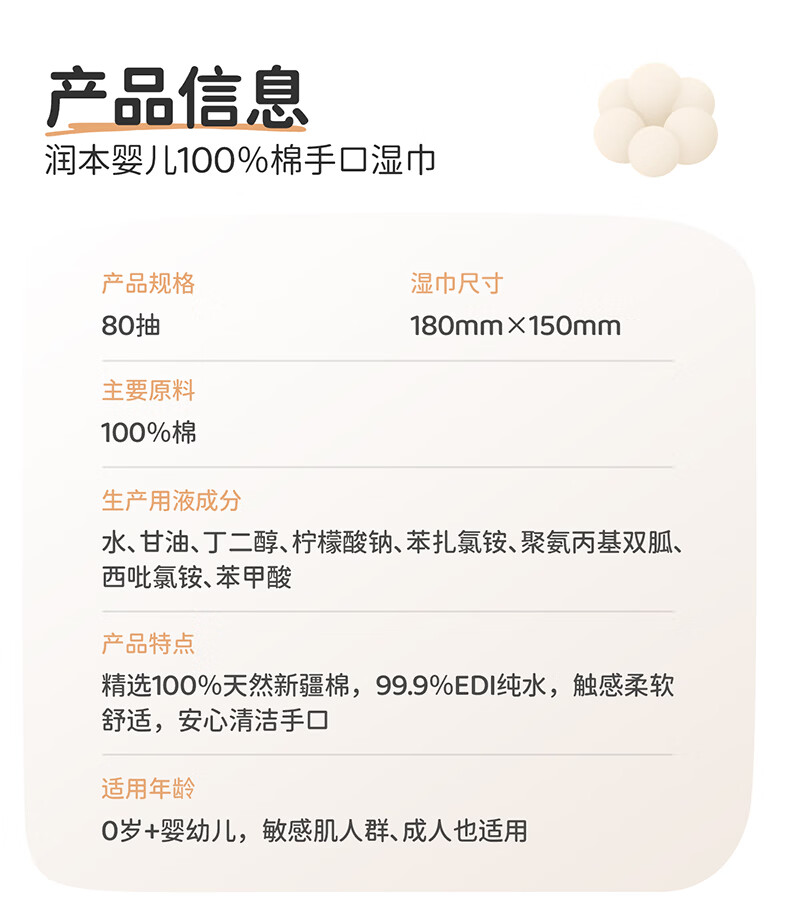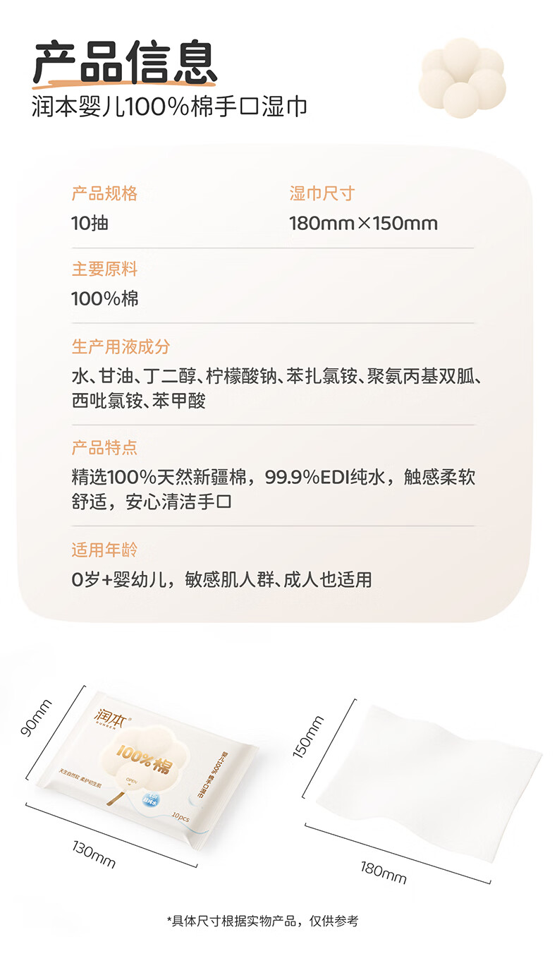 润本湿巾婴儿湿巾湿纸巾儿童宝宝手口湿巾屁屁专用湿巾小包便携新疆棉 【热销爆款】 80抽 10包 手口湿巾