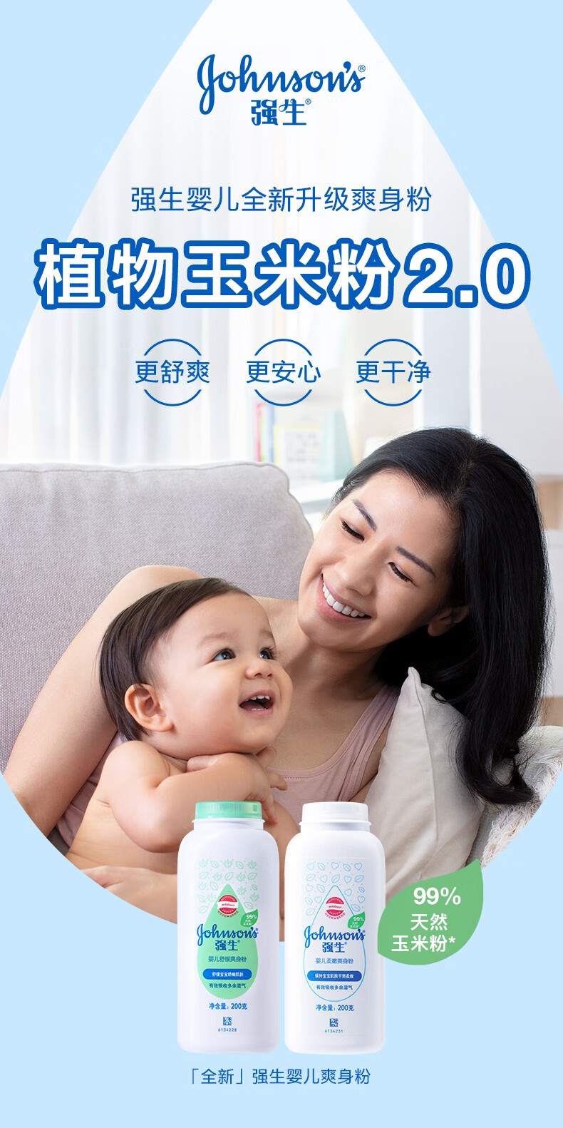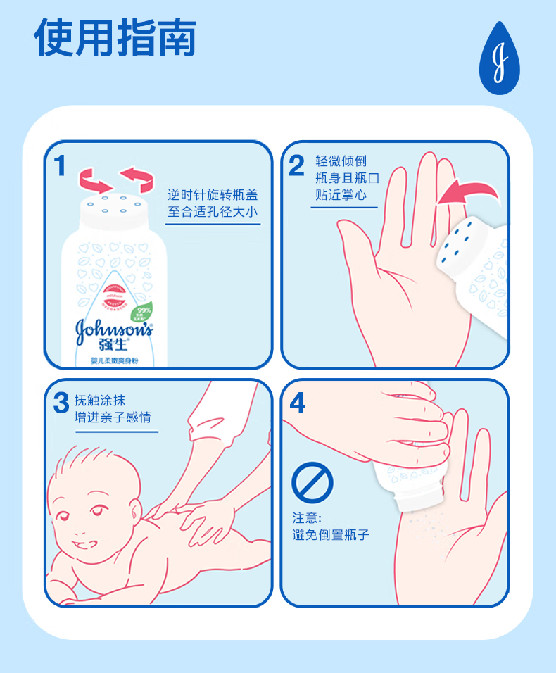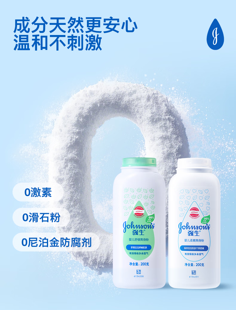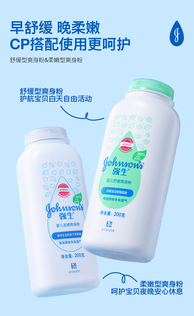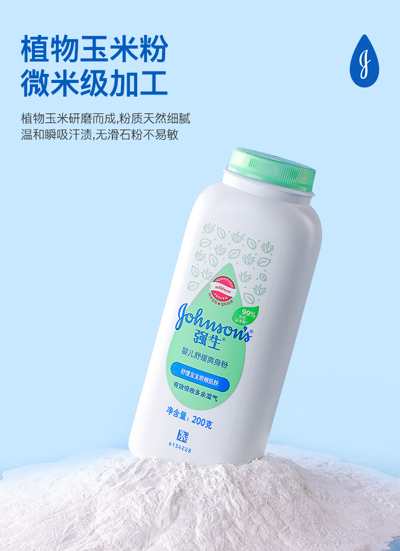 强生(Johnson)婴儿柔嫩爽身粉玉米粉200g 新生儿宝宝儿童红屁屁痱子粉