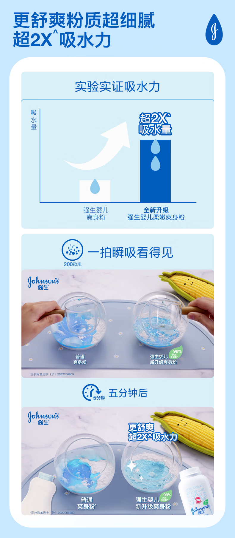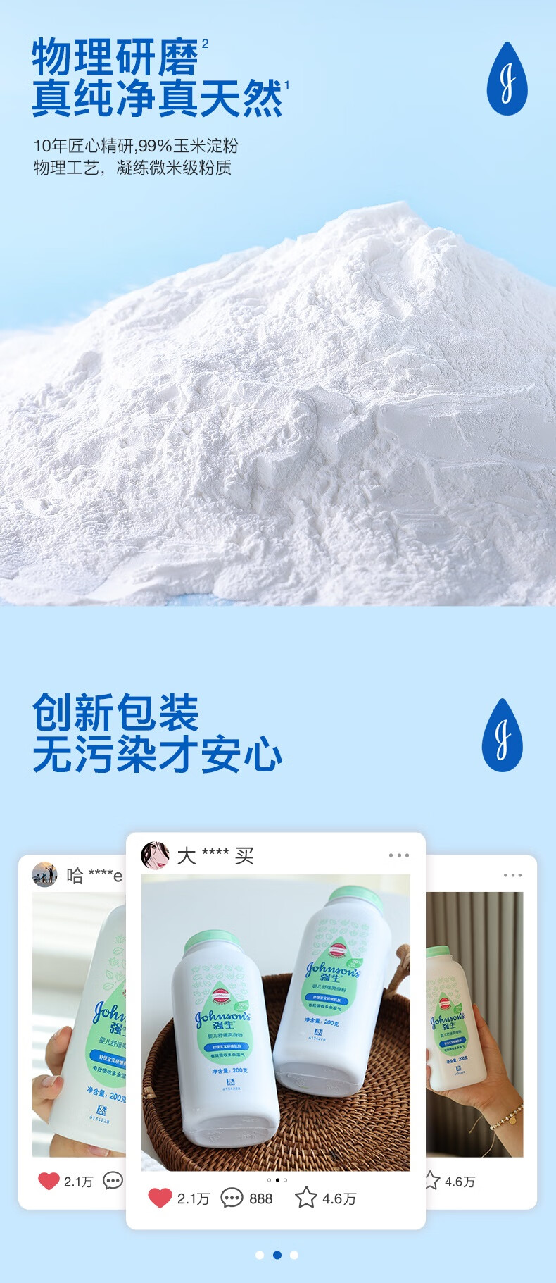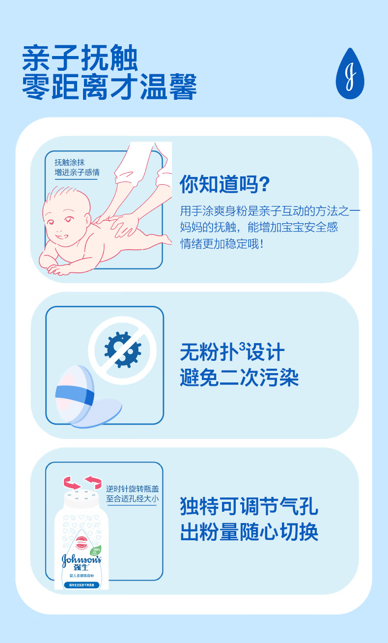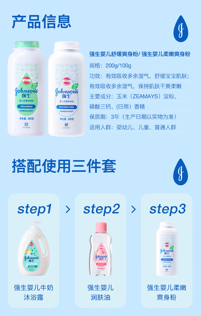 强生(Johnson)婴儿柔嫩爽身粉玉米粉200g 新生儿宝宝儿童红屁屁痱子粉