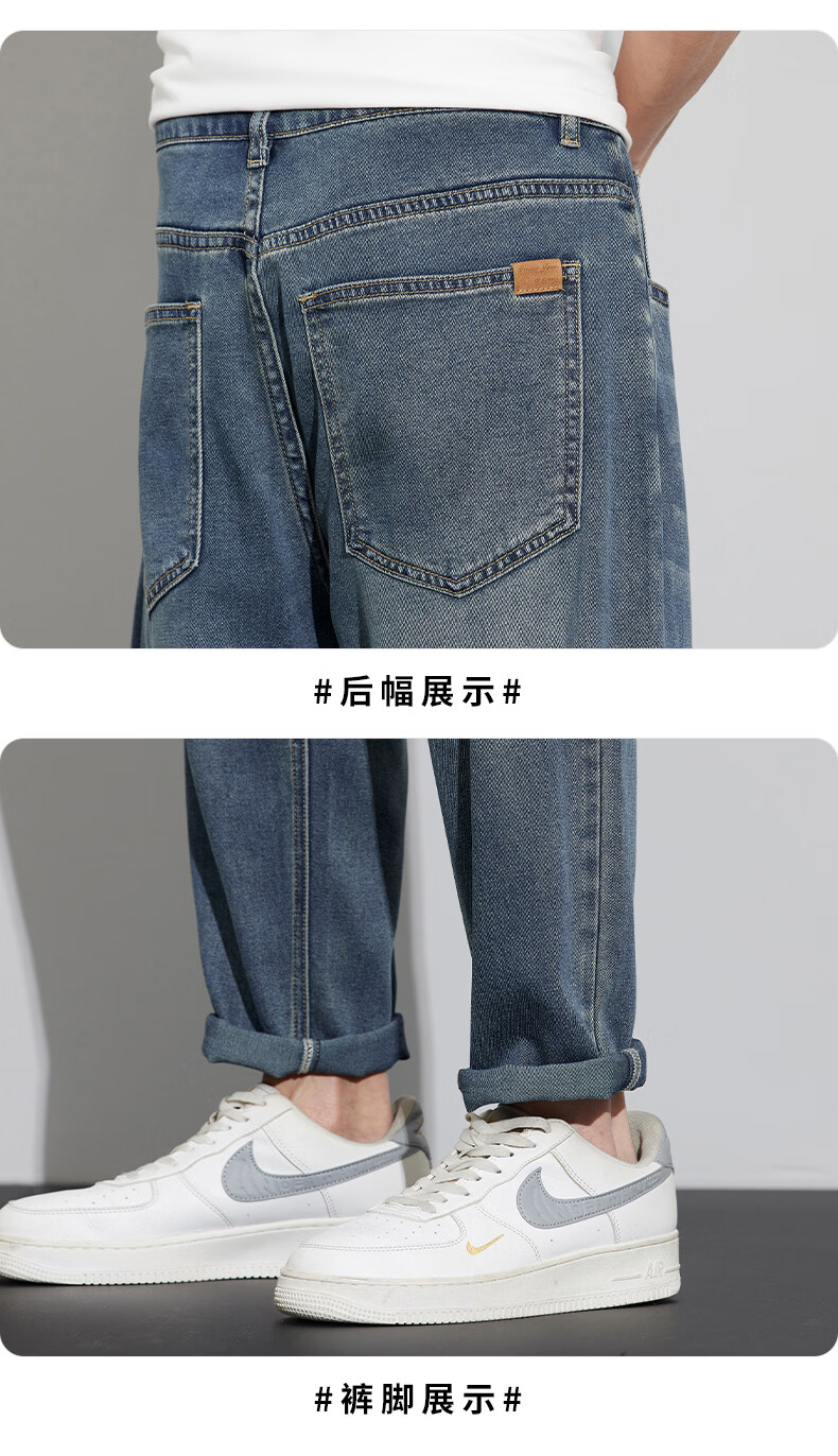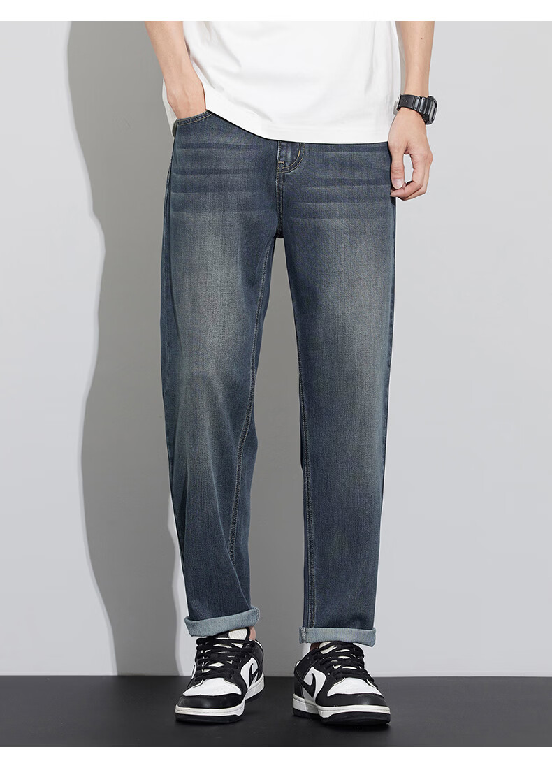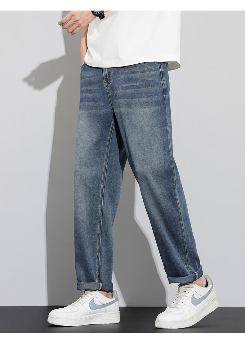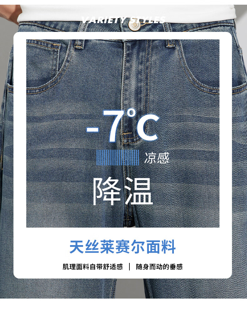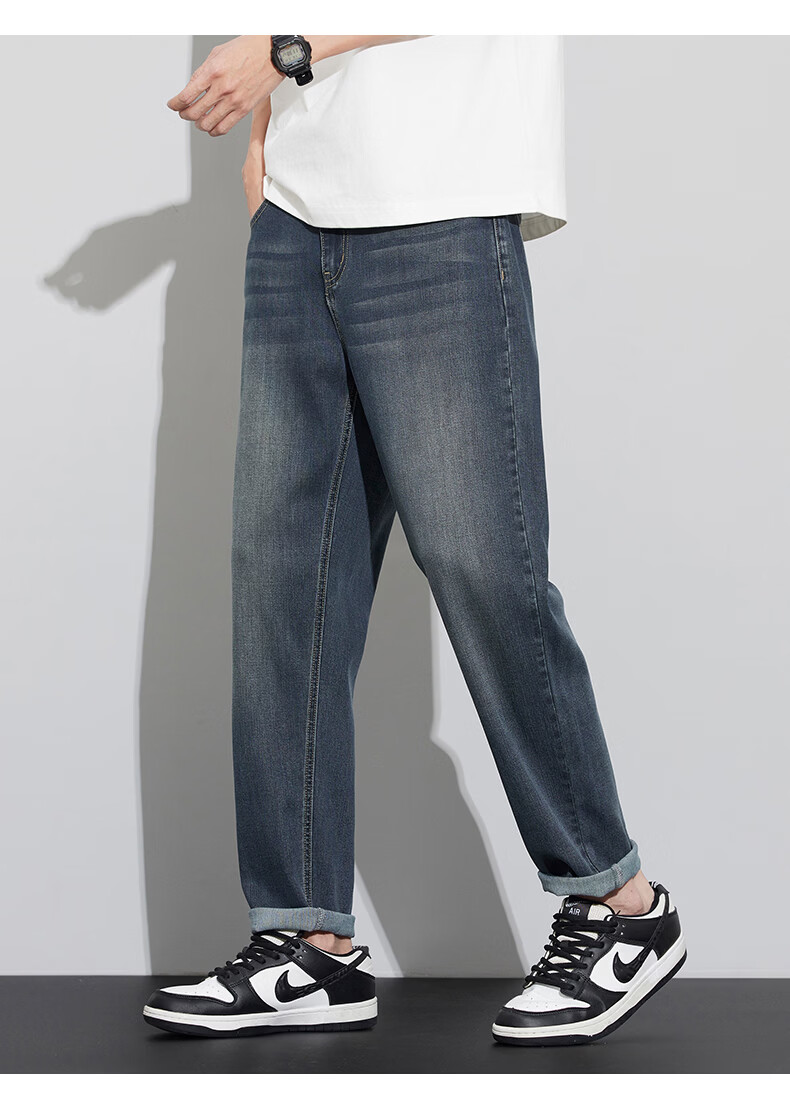 真维斯天丝牛仔裤男士2026新款潮牌夏季薄款宽松直筒弹力锥形休闲长裤子 6873复古蓝 28 建议80-90斤