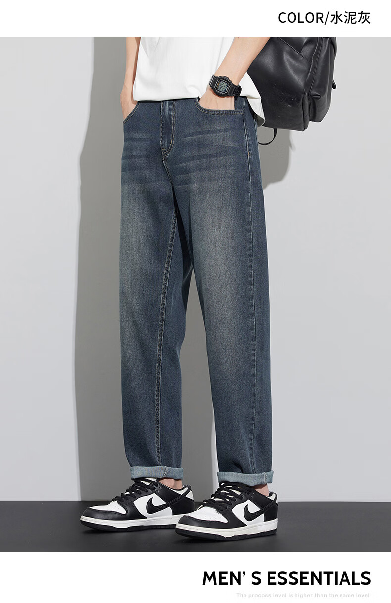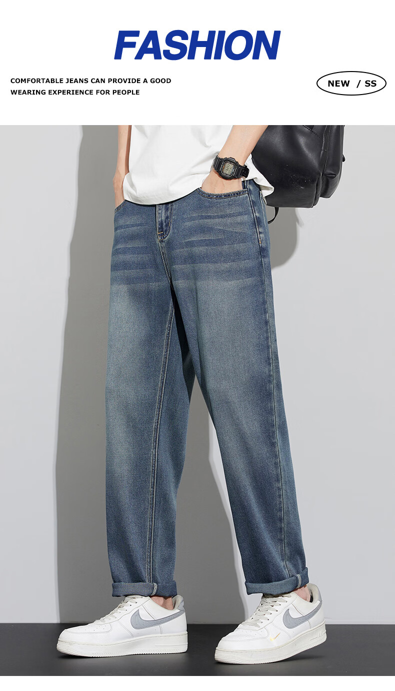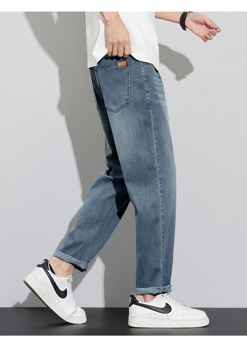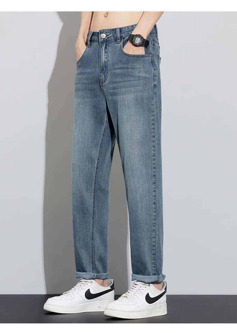 真维斯天丝牛仔裤男士2026新款潮牌夏季薄款宽松直筒弹力锥形休闲长裤子 6873复古蓝 28 建议80-90斤