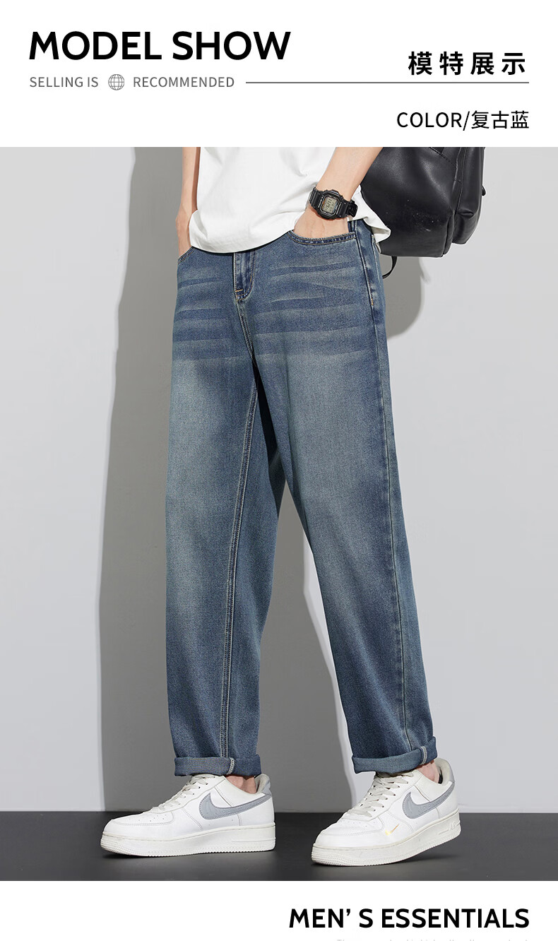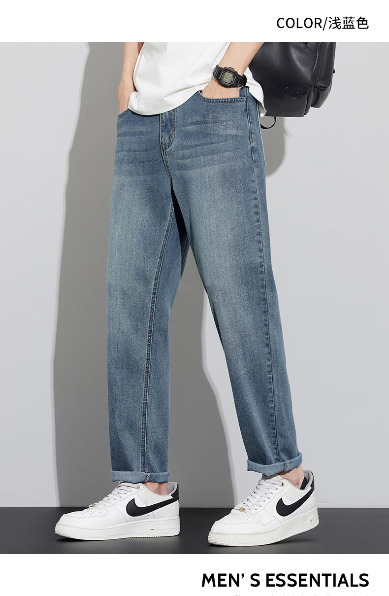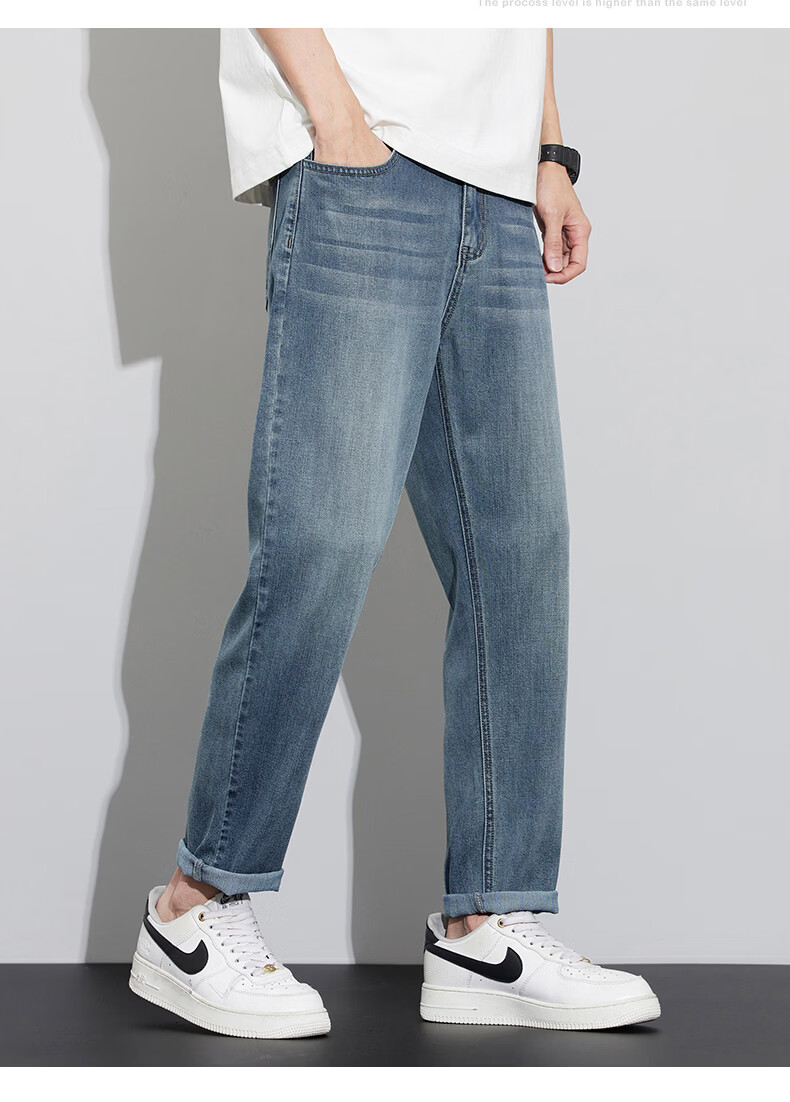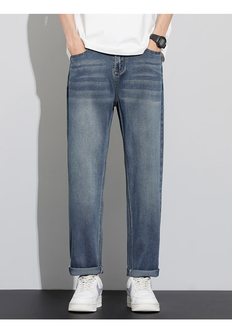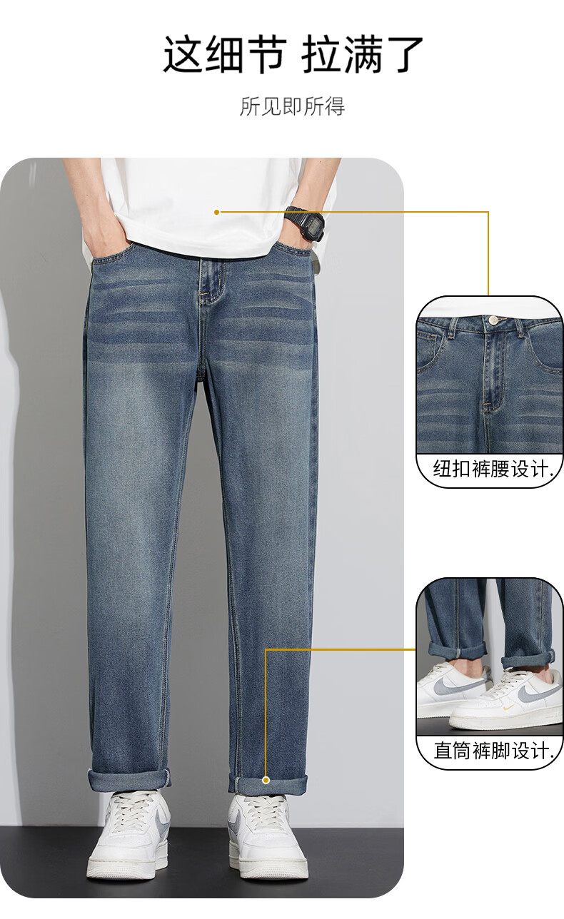 真维斯天丝牛仔裤男士2026新款潮牌夏季薄款宽松直筒弹力锥形休闲长裤子 6873复古蓝 28 建议80-90斤