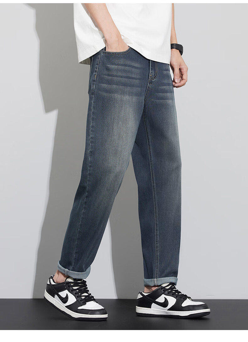 布衣传说牛仔裤合集 原色九分牛仔裤男款宽松锥形休闲长裤子 蓝色12089 32
