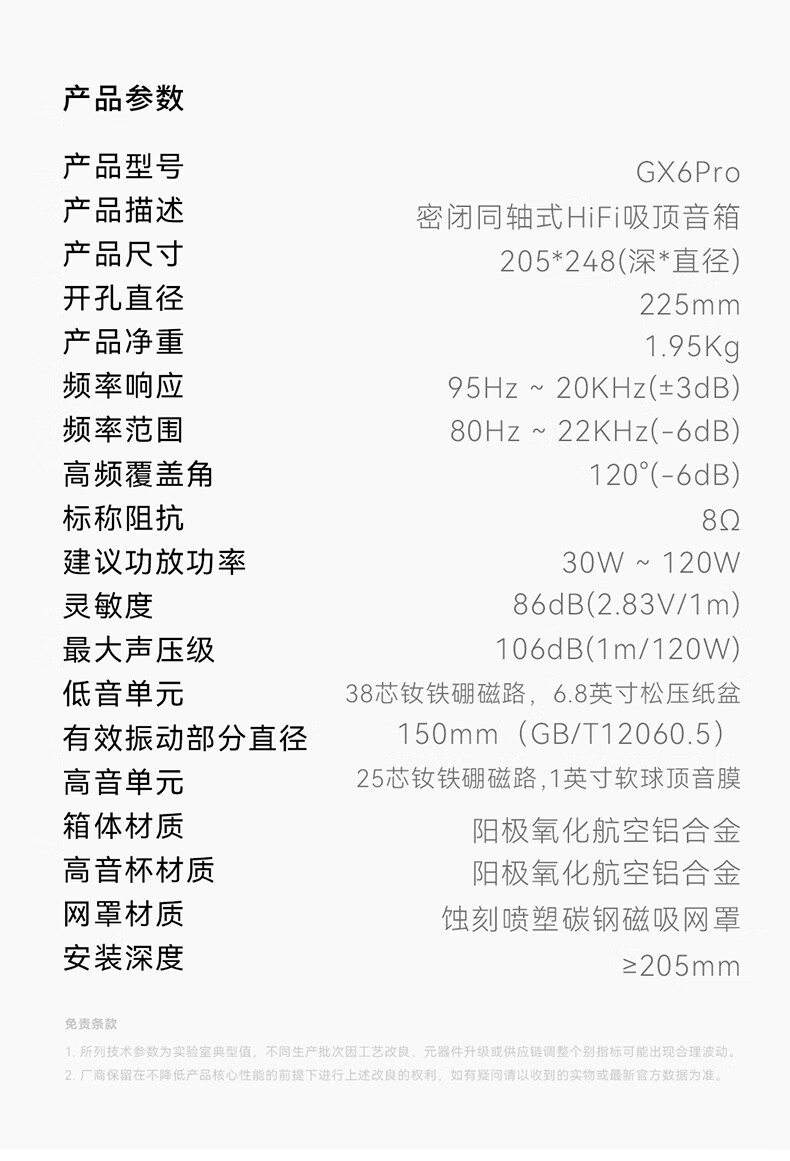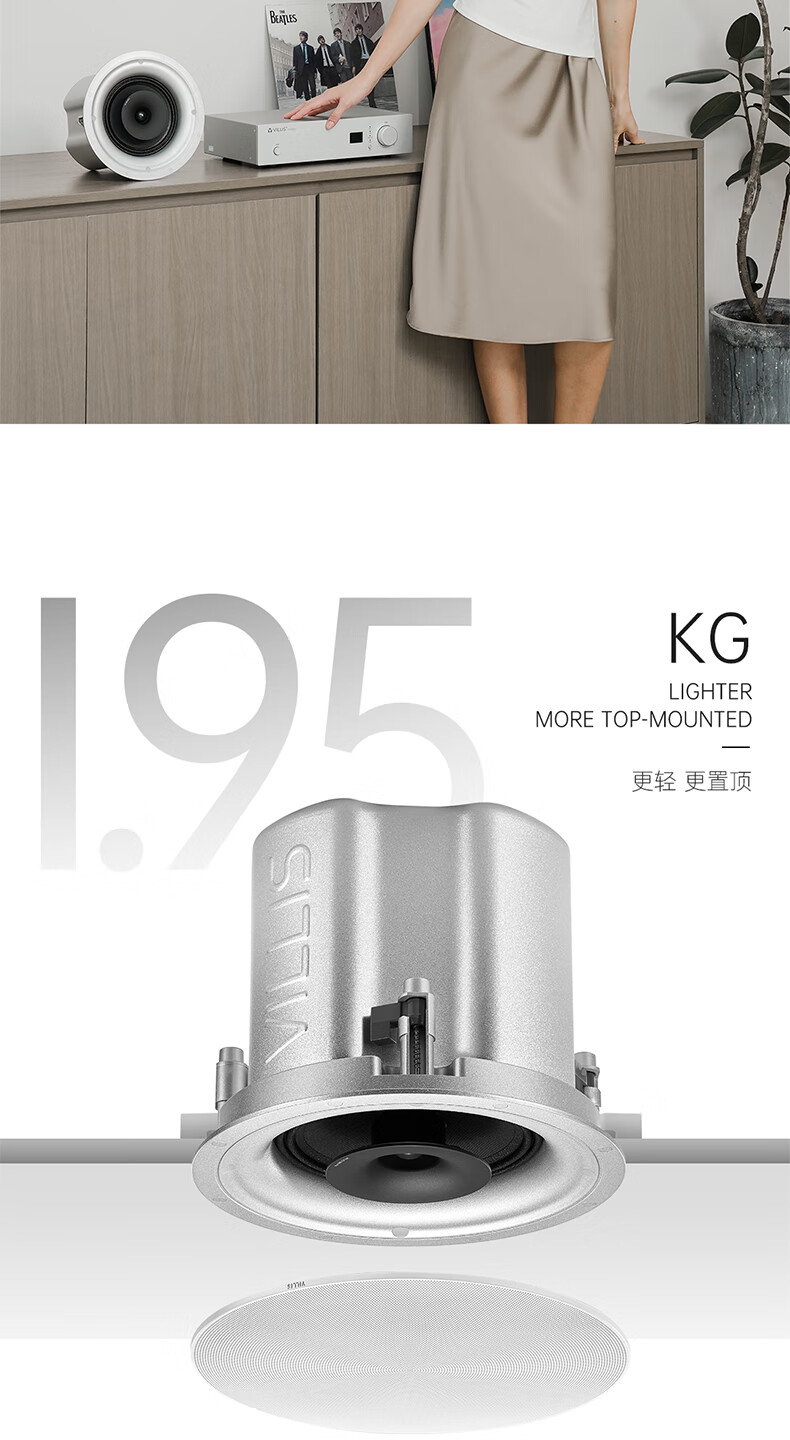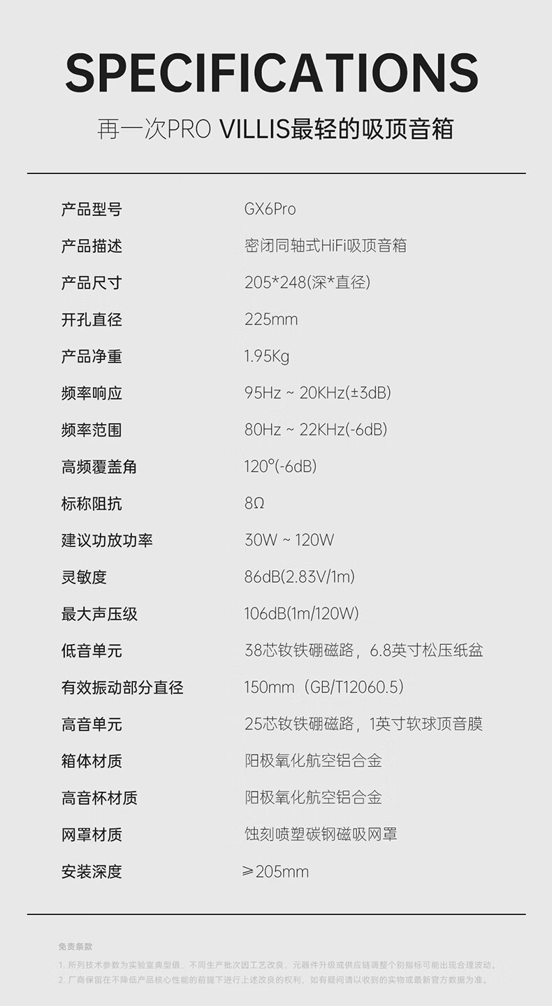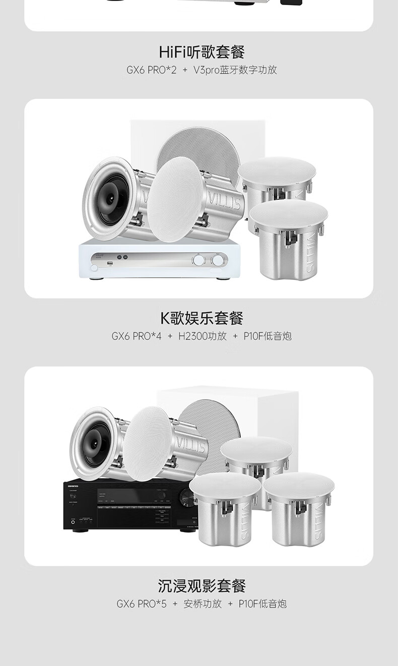 Villis威力声GX6PRO吸顶音响嵌入式5.1发烧家用音响客厅环绕K歌喇叭家庭影院音响套装 单只GX6Pro白色
