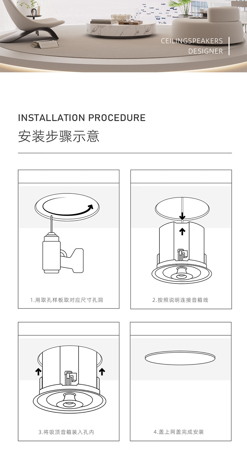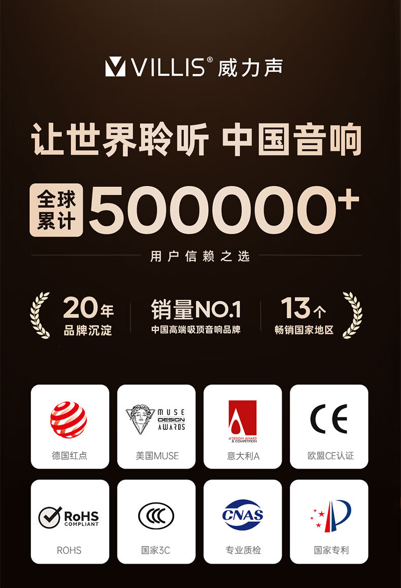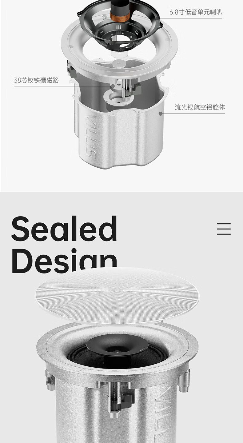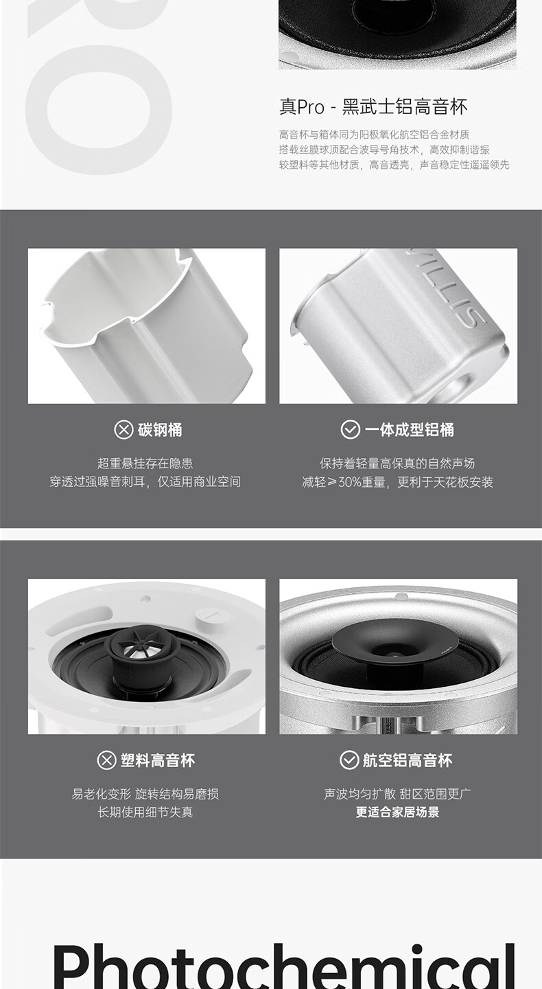 Villis威力声GX6PRO吸顶音响嵌入式5.1发烧家用音响客厅环绕K歌喇叭家庭影院音响套装 单只GX6Pro白色
