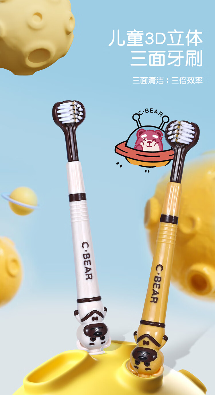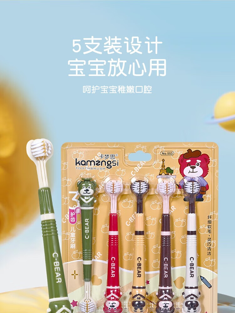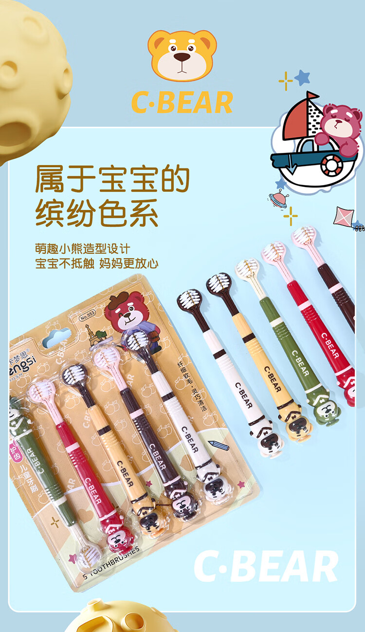[爆卖100万件]C.BEAR儿童软毛三面牙刷3-12岁独立包装护龈 软毛 5支 萌趣小熊儿童三面*5支