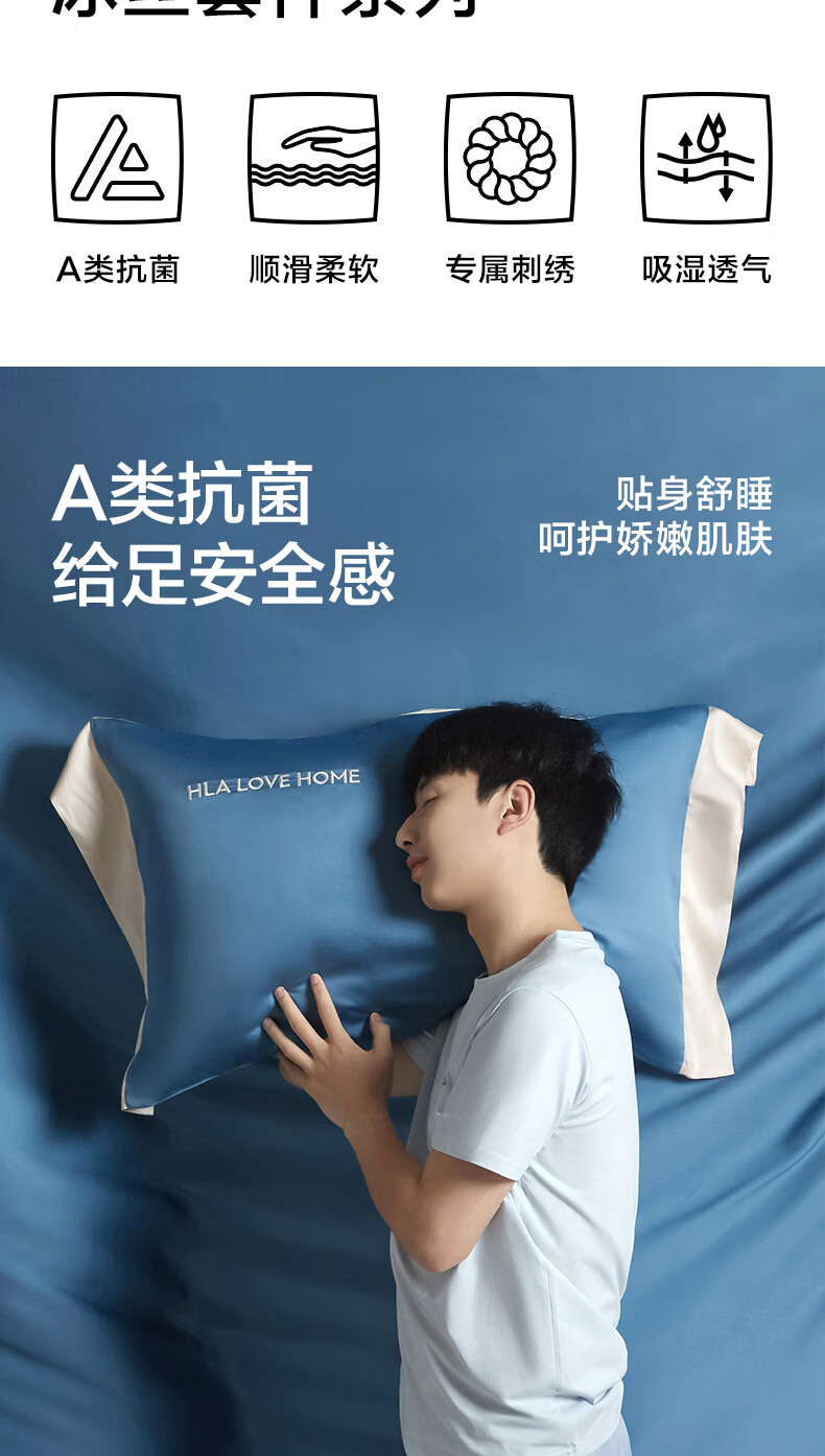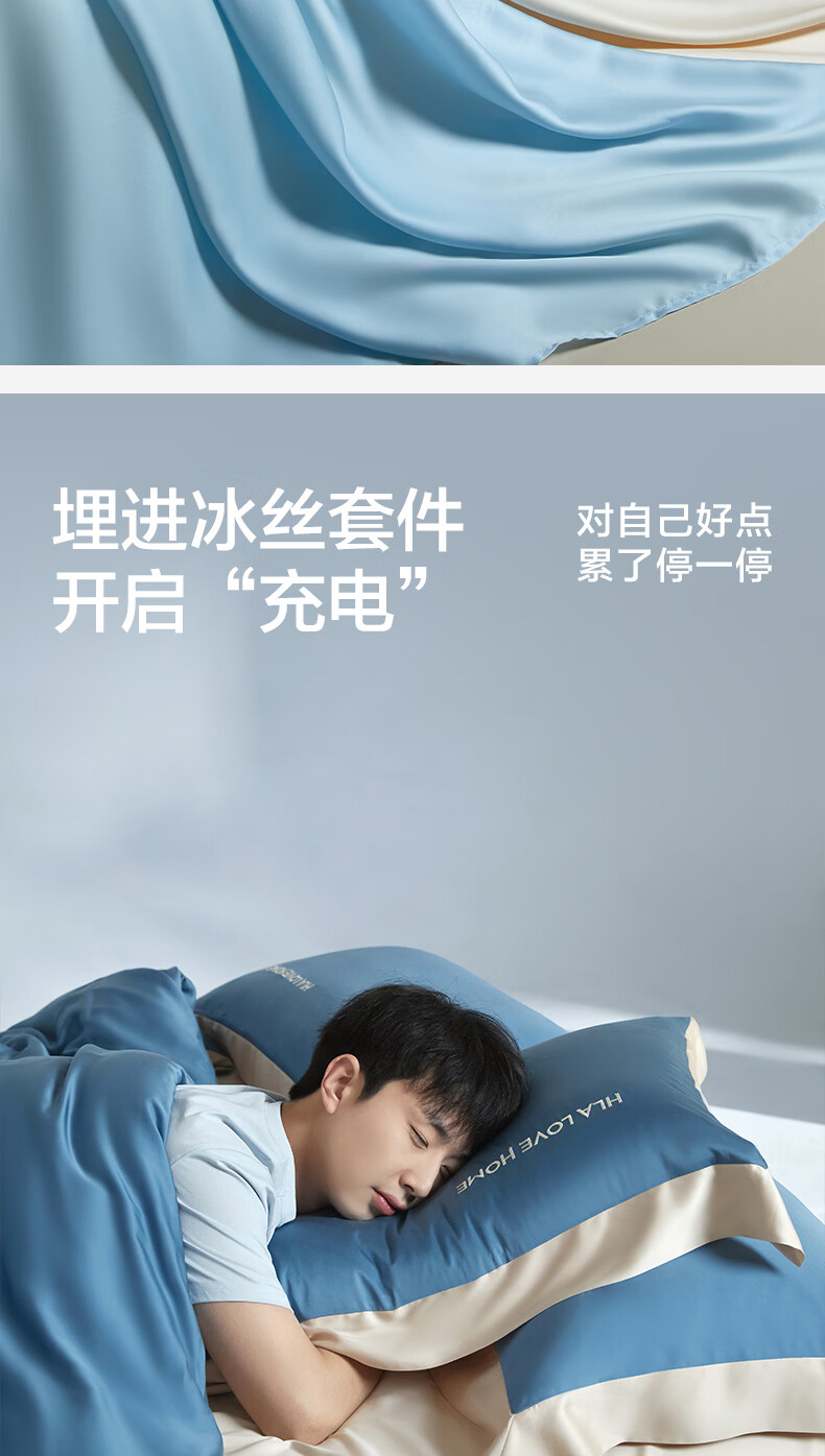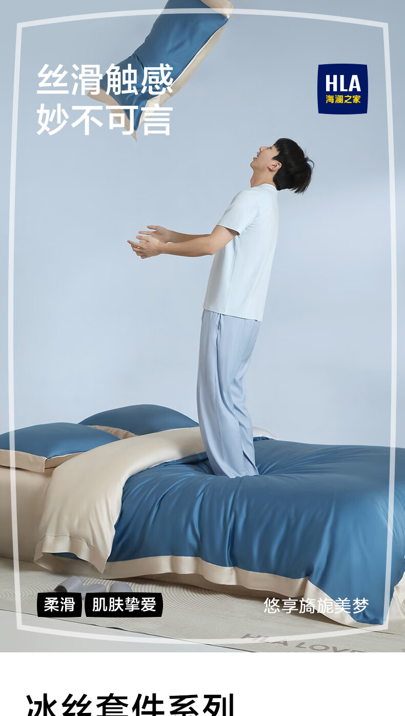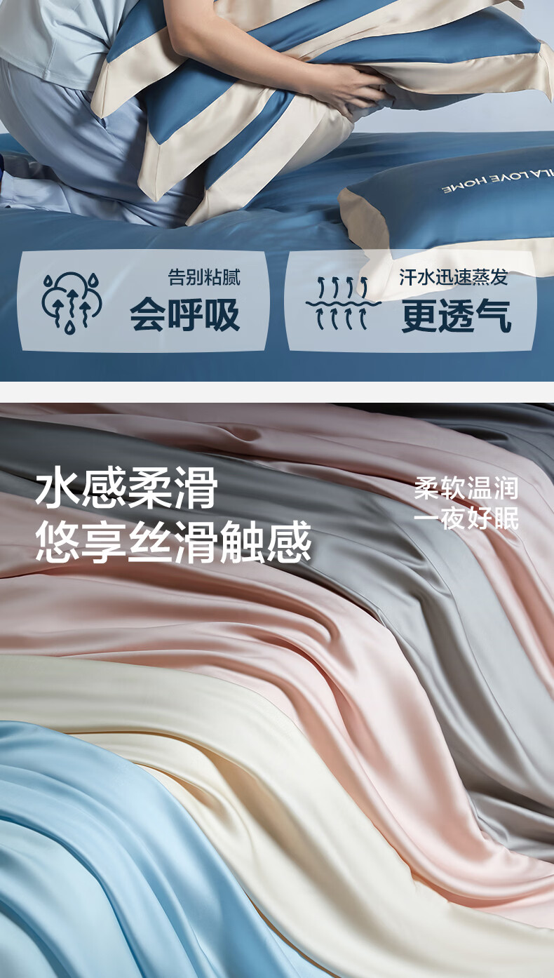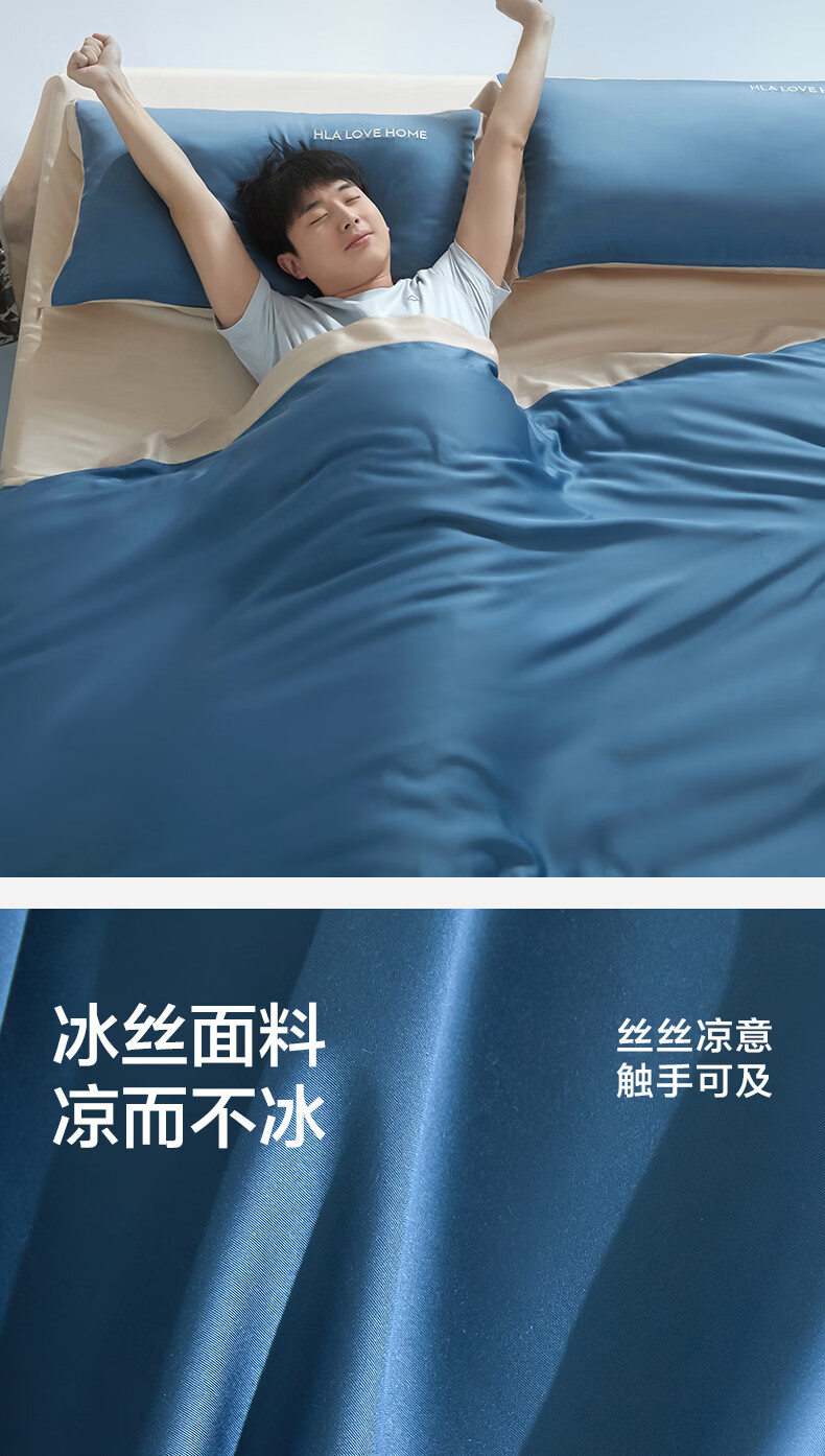 海澜之家(HLA)A类抗菌冰丝四件套夏天凉感床上四件套床单单人被套三件套2026新 高级灰+梧桐杏【抗菌冰丝 A类裸睡级】 三件套被套150*200 床单款 160*230