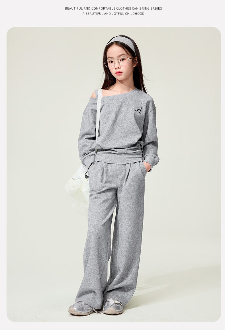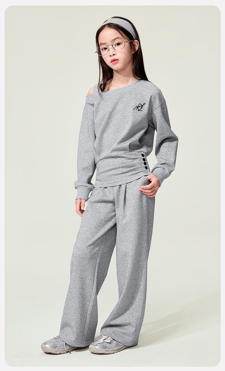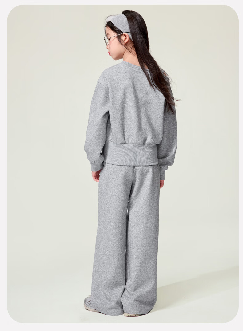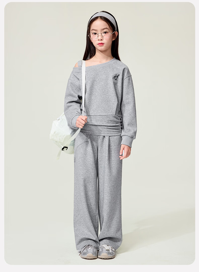 媛媛公主儿童套装26春秋女童半拉链假两件卫衣阔腿卫裤两件套百搭休闲服 灰色 160