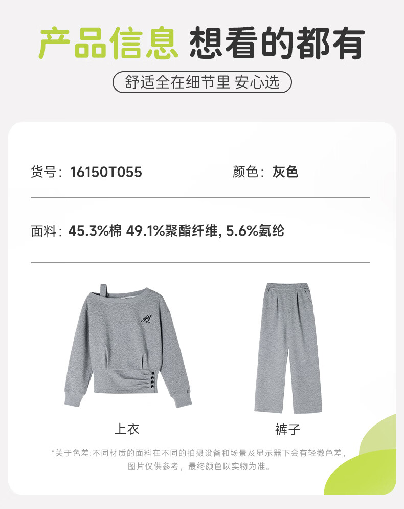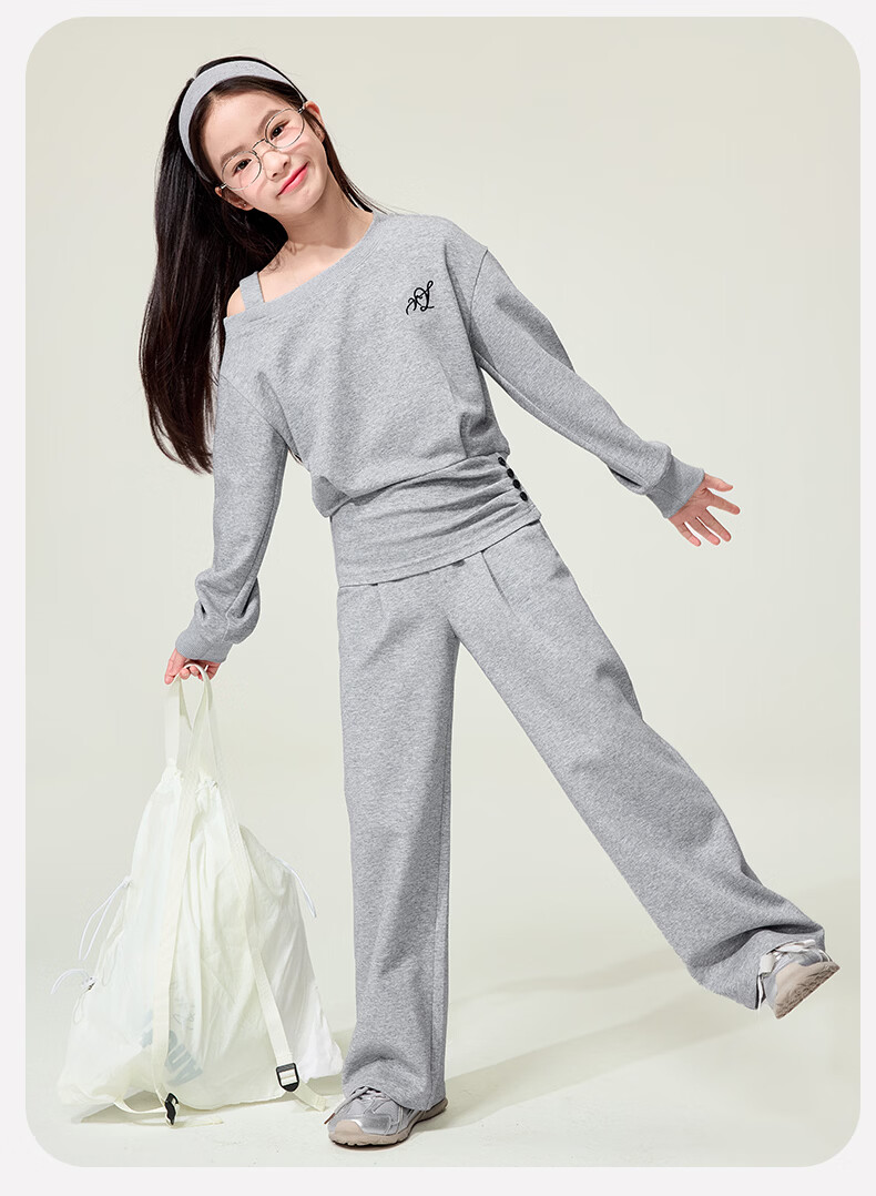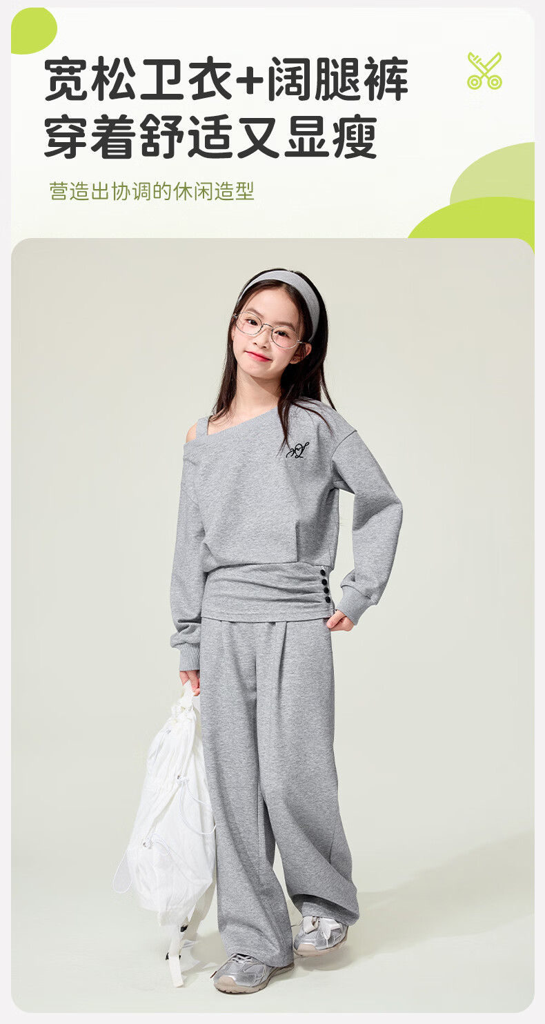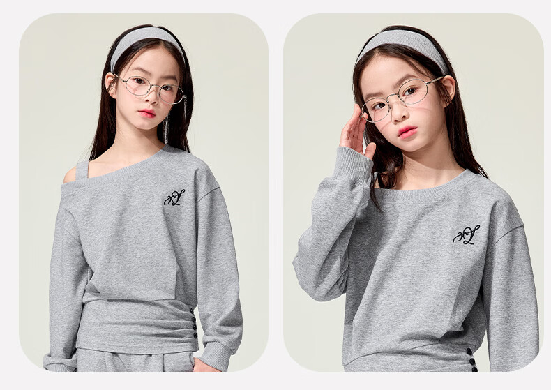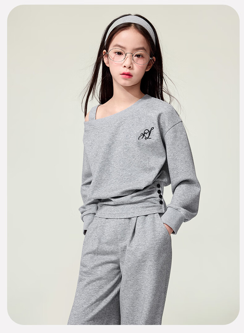 媛媛公主儿童套装26春秋女童半拉链假两件卫衣阔腿卫裤两件套百搭休闲服 灰色 160