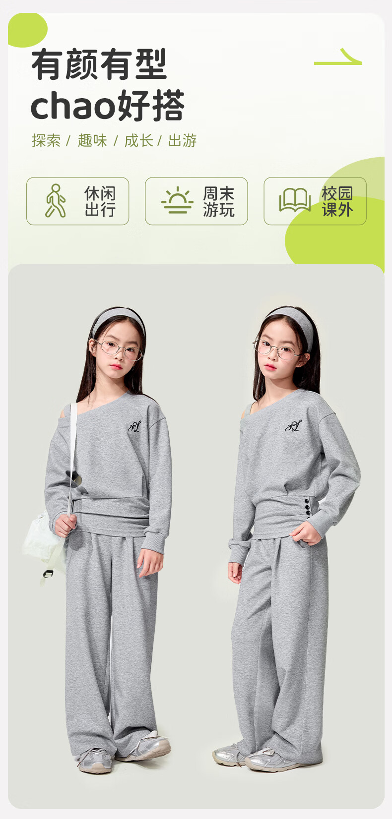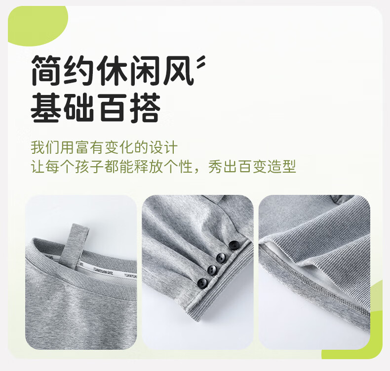媛媛公主儿童套装26春秋女童半拉链假两件卫衣阔腿卫裤两件套百搭休闲服 灰色 110