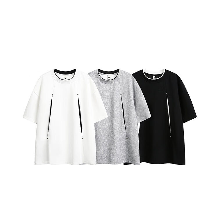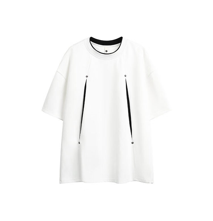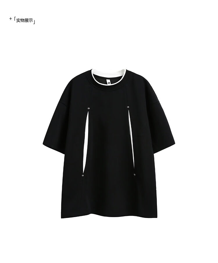 NEW OR MODE美式高街铆钉短袖t恤男夏季新款潮牌宽松痞帅大码休闲百搭半袖T恤 黑色【高品质】 M 【建议90-110斤】