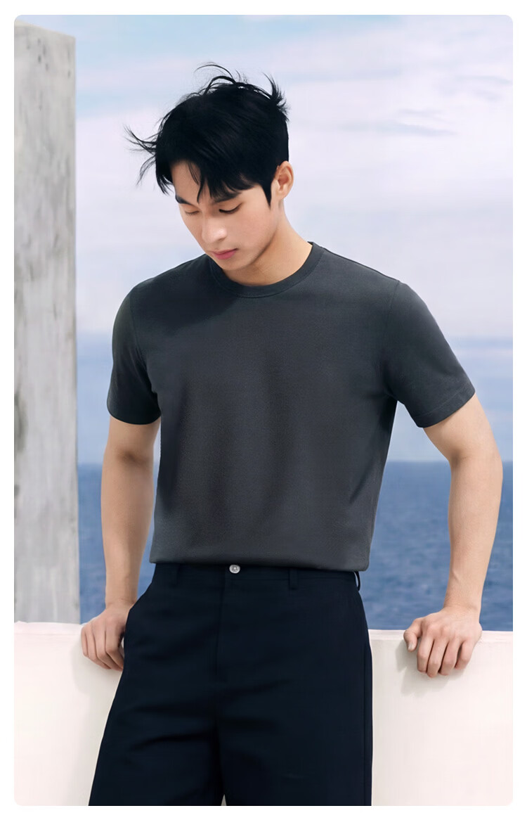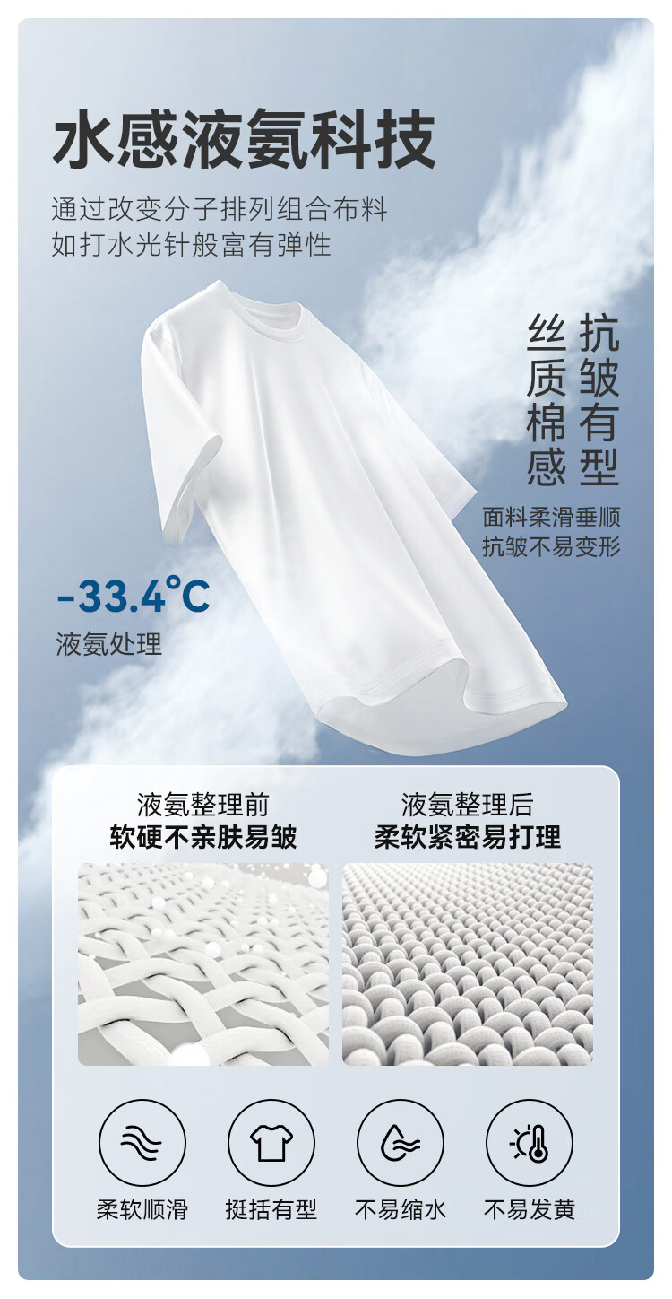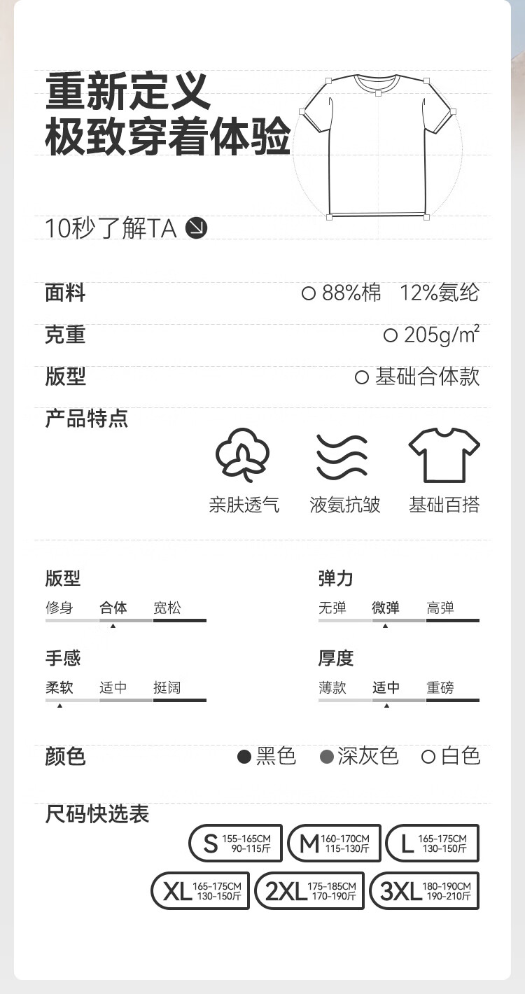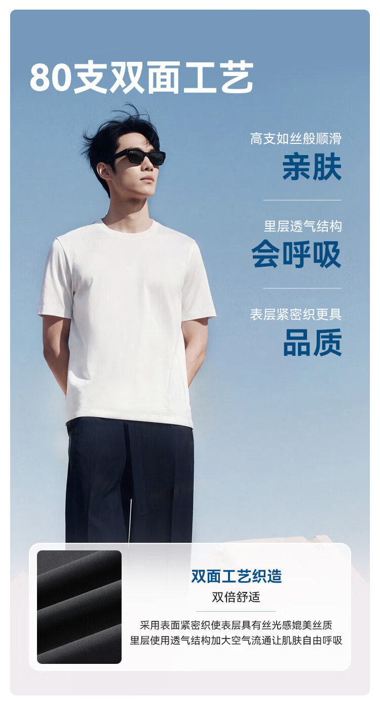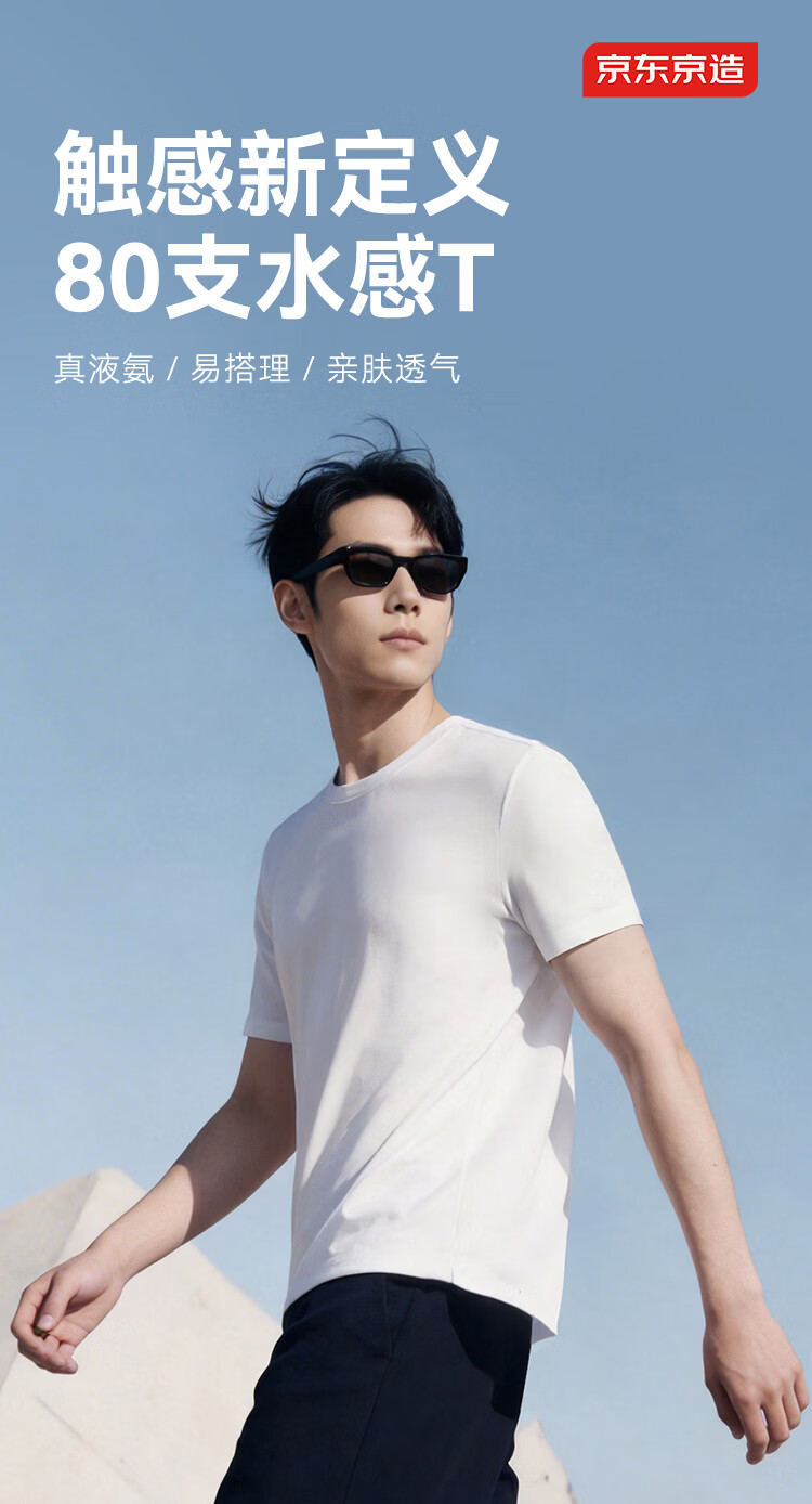京东京造80支液氨短袖男士t恤打底衫内搭春季新款男装衣服轻奢抗皱白M
