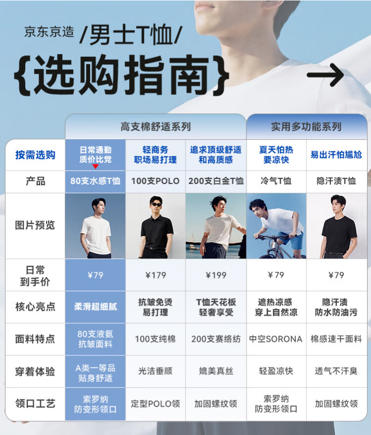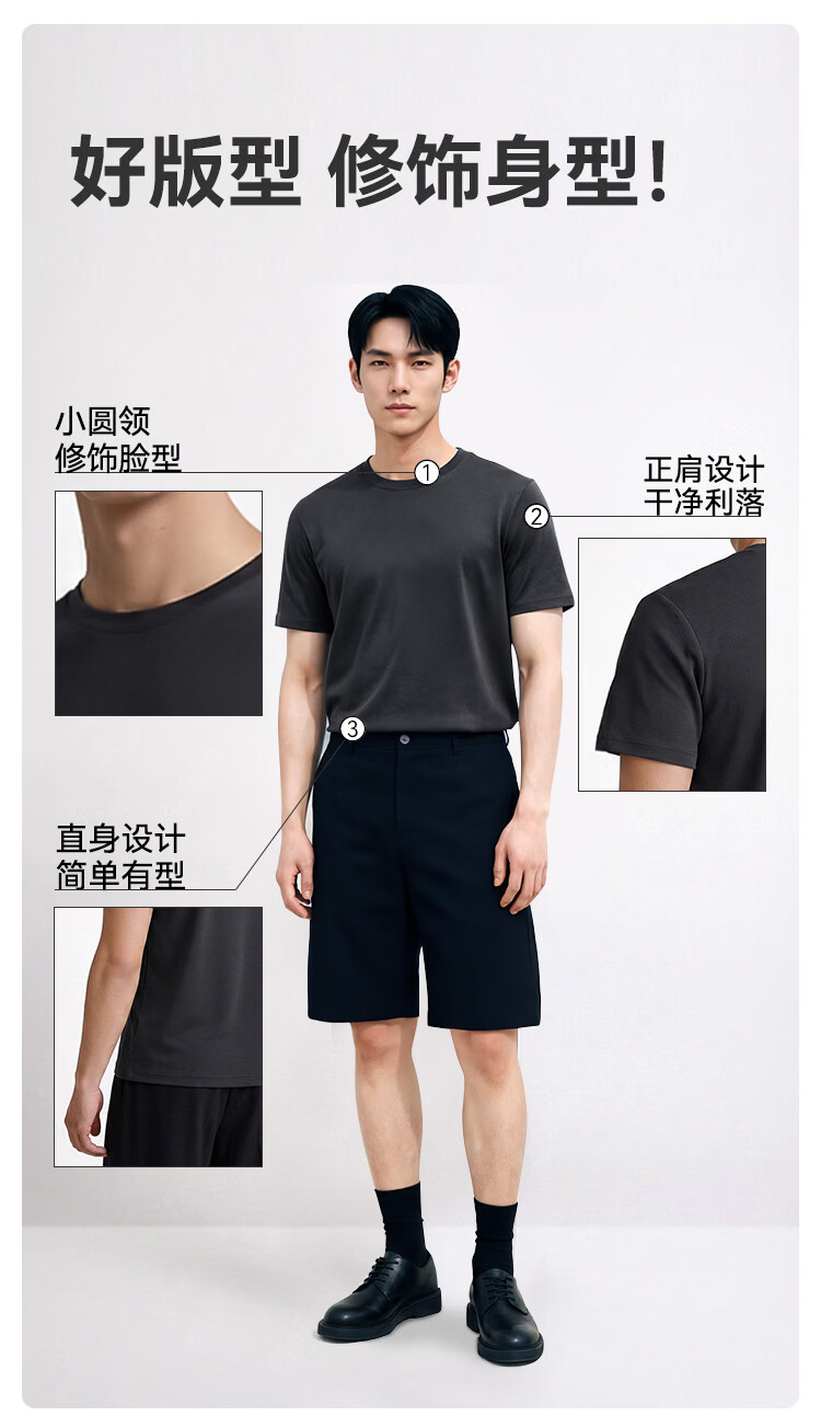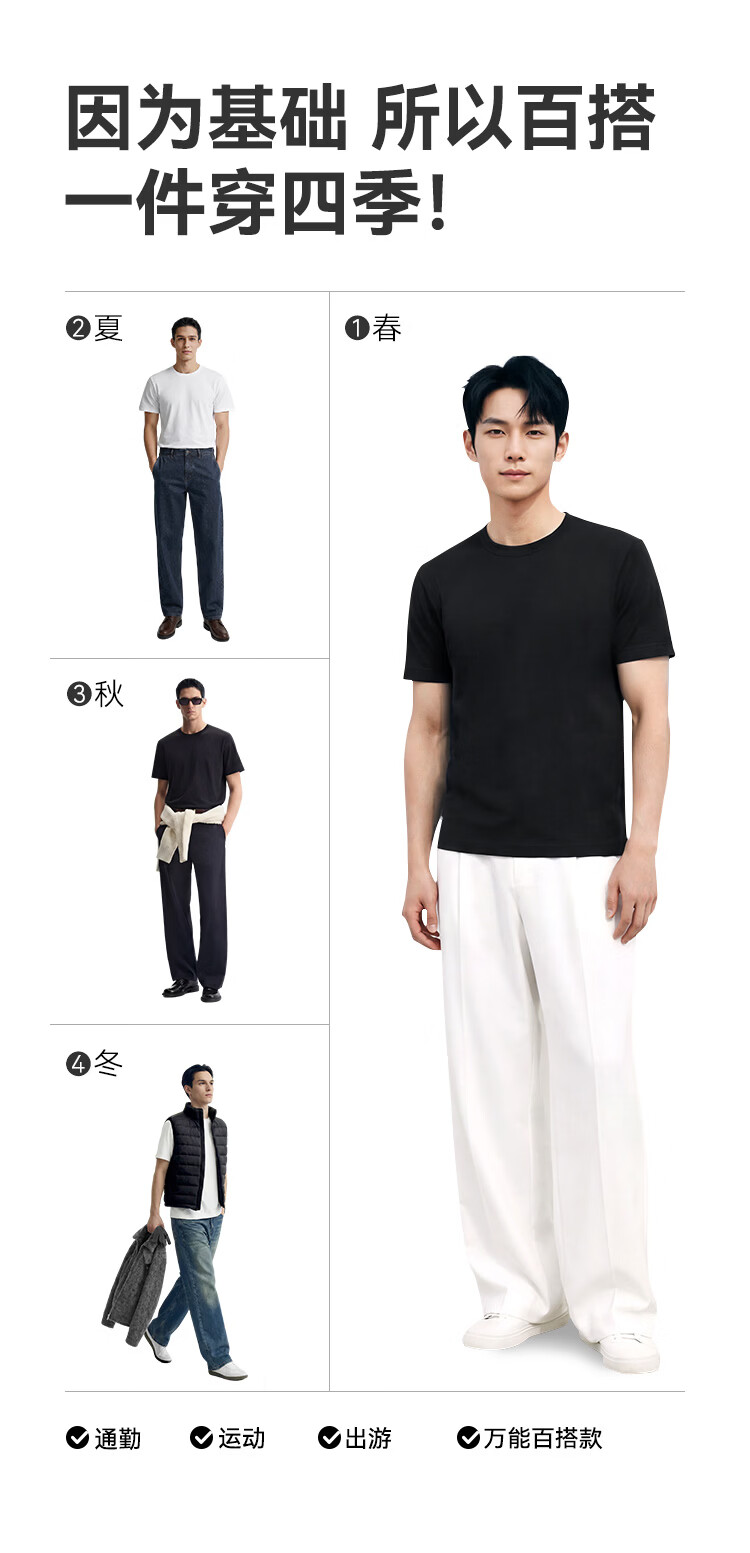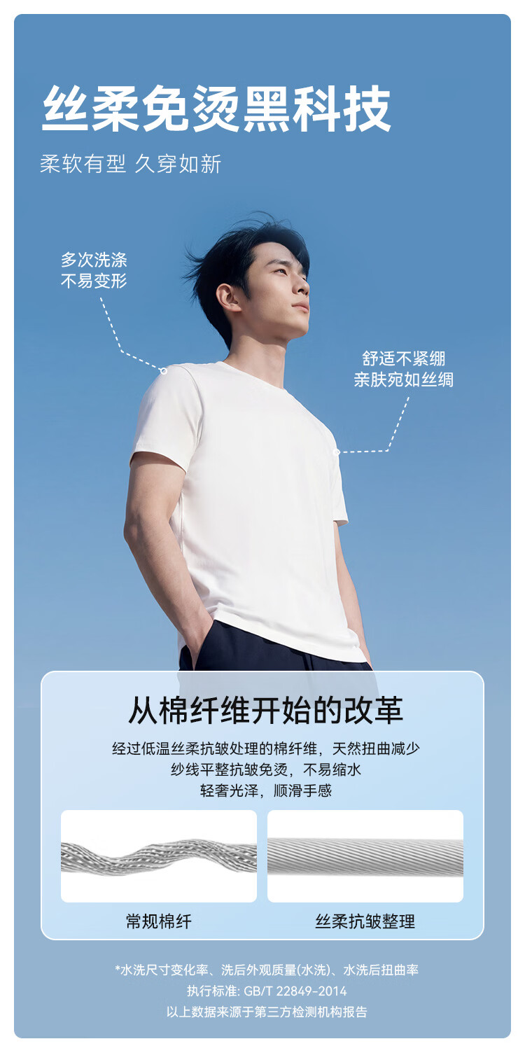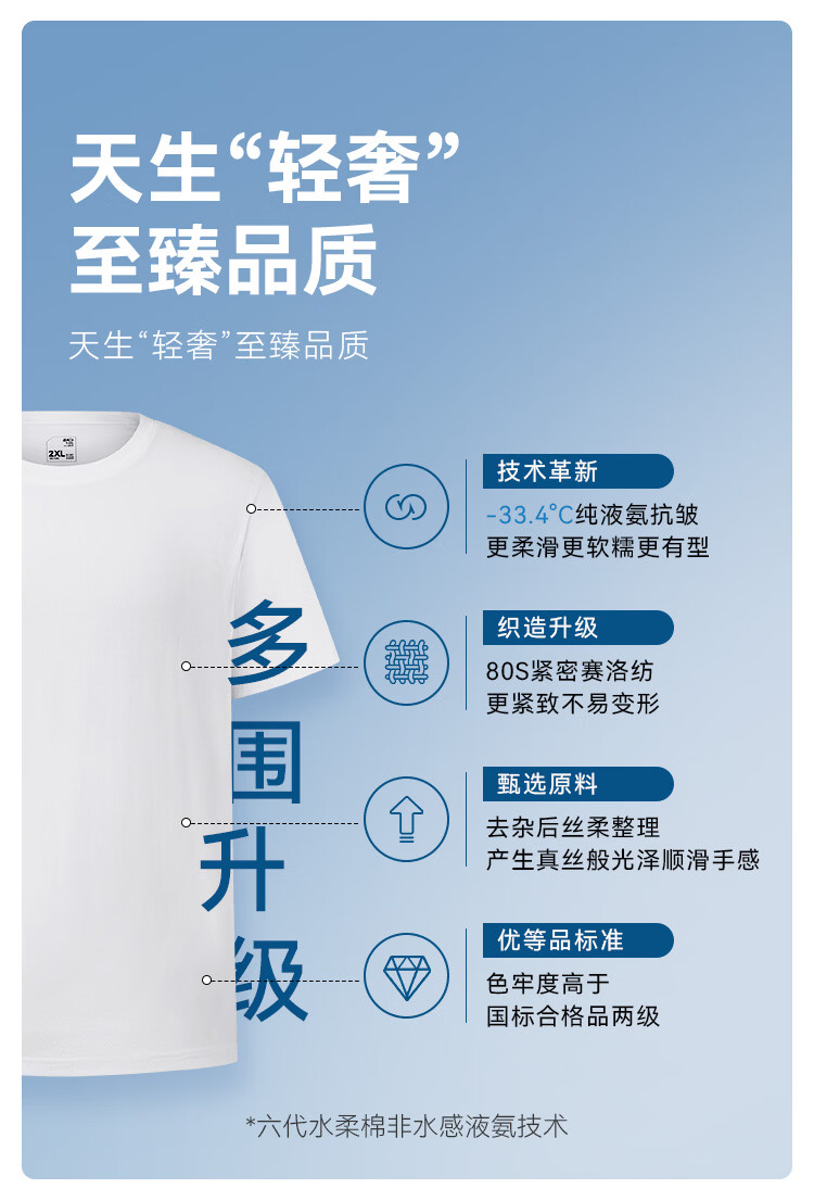 京东京造80支液氨短袖男士t恤打底衫内搭春季新款男装衣服轻奢抗皱白M