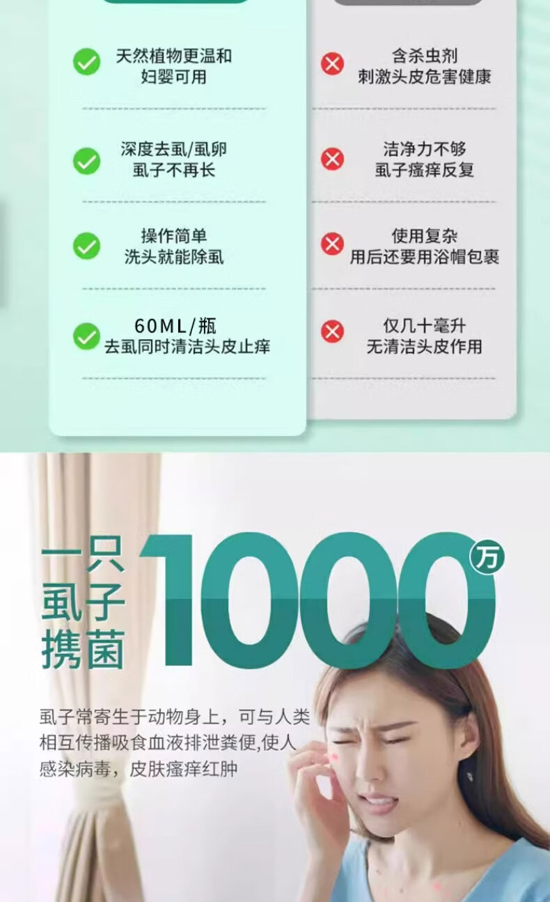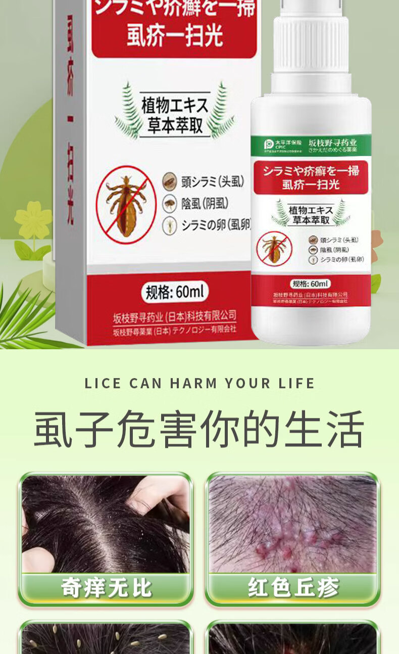 虱子药儿童头虱虱卵一扫光百部酊去头虱小女孩头发去除虱卵虱立净 1盒【60ml】一喷去虱