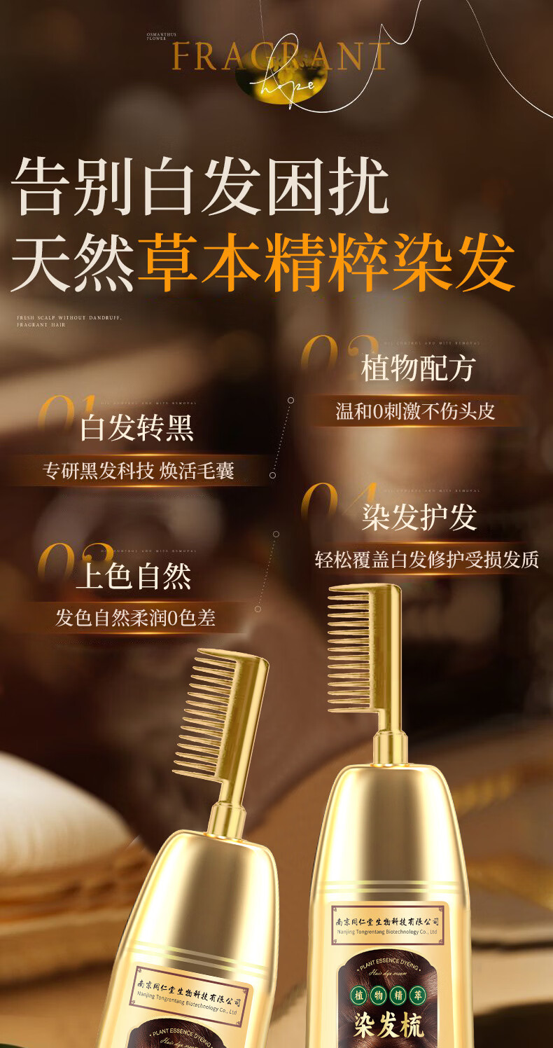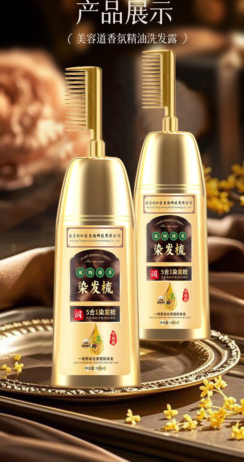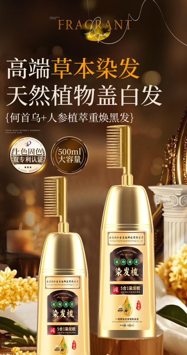 南京同仁堂一梳黑染发剂植物天然纯孕妇可用男女士自己在家染头发黑色遮白发 自然黑植物盖白发【贈送染发工具】 500ml