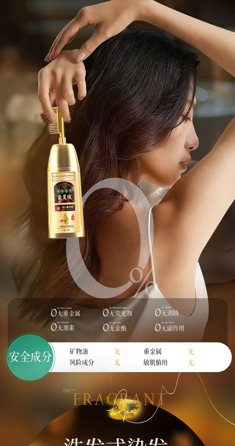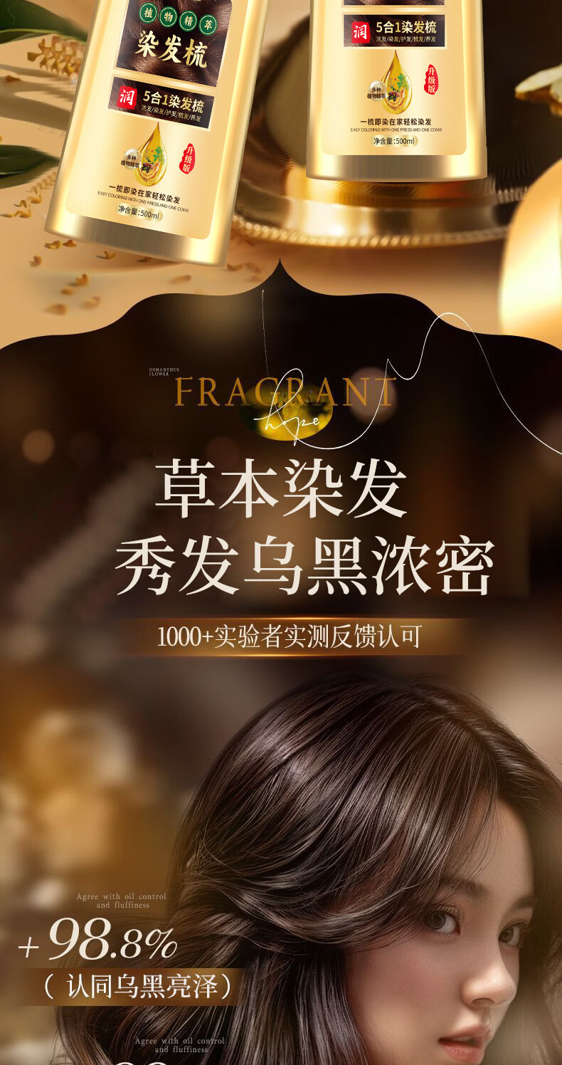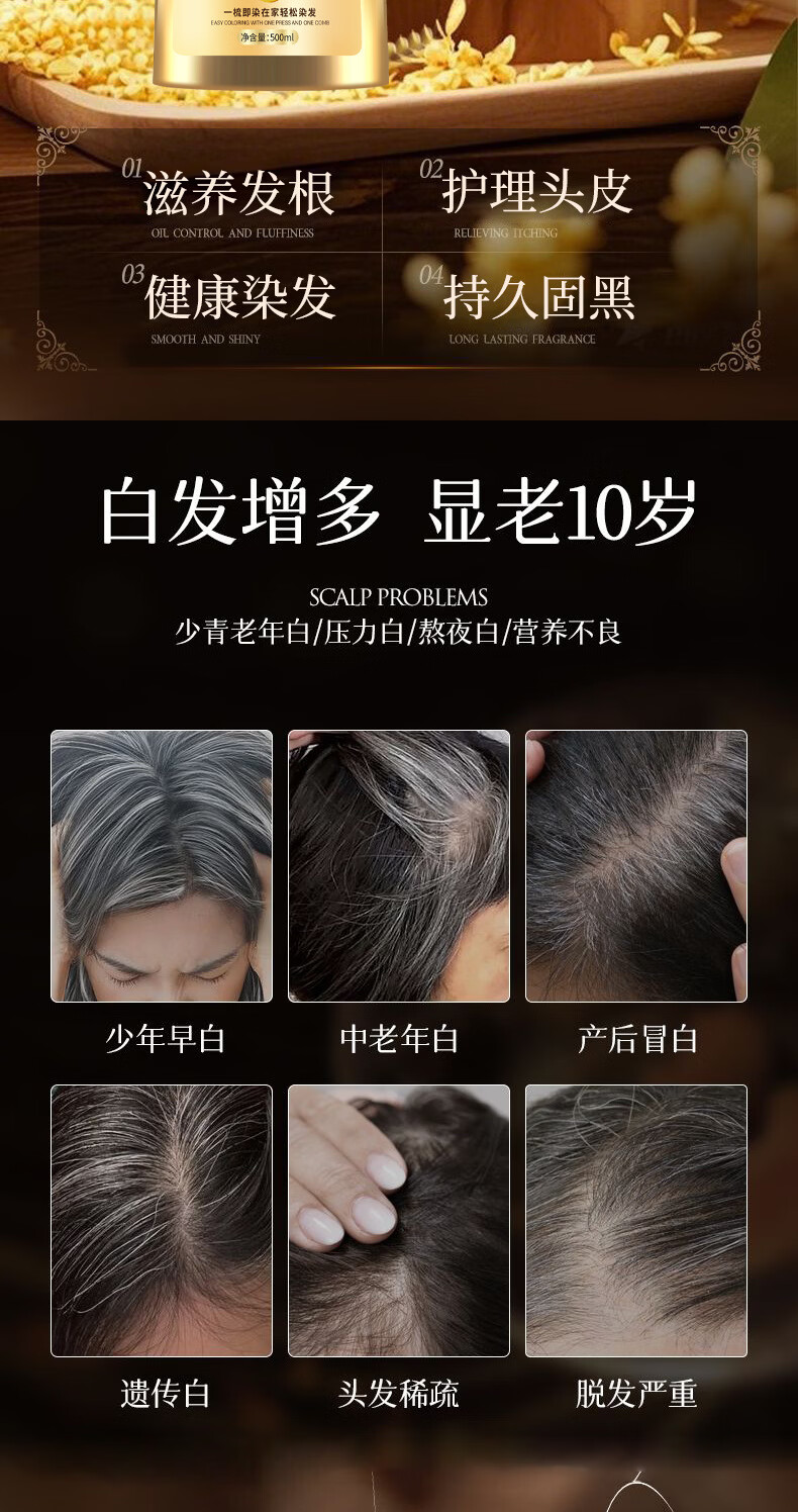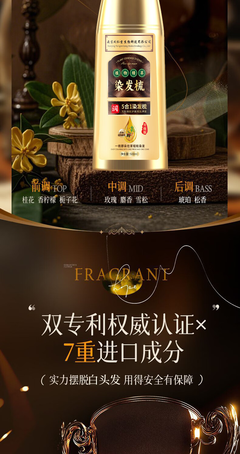南京同仁堂一梳黑染发剂植物天然纯孕妇可用男女士自己在家染头发黑色遮白发 自然黑植物盖白发【贈送染发工具】 500ml