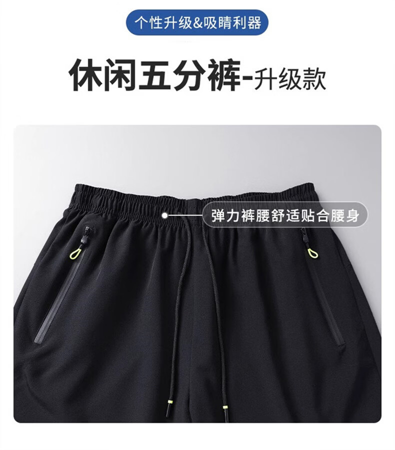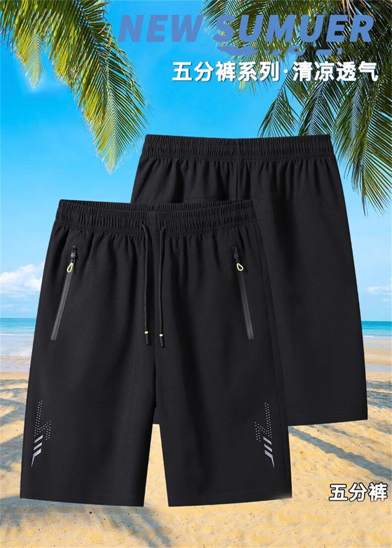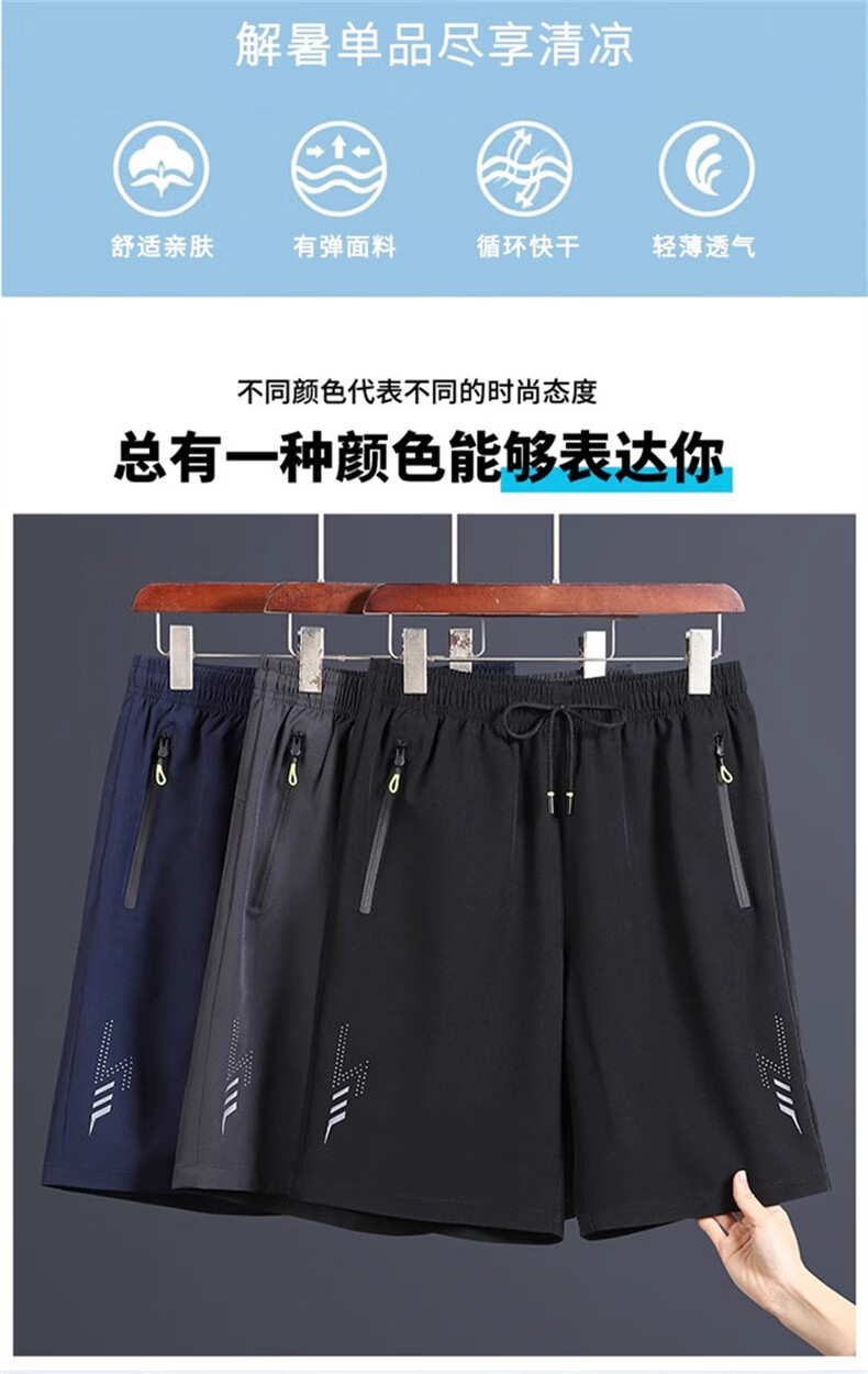 JEEP SPIRIT吉普2026夏季新款男士冰丝速干运动短裤男款夏天休闲五分裤子男 黑色+深灰色【两件装】 2XL