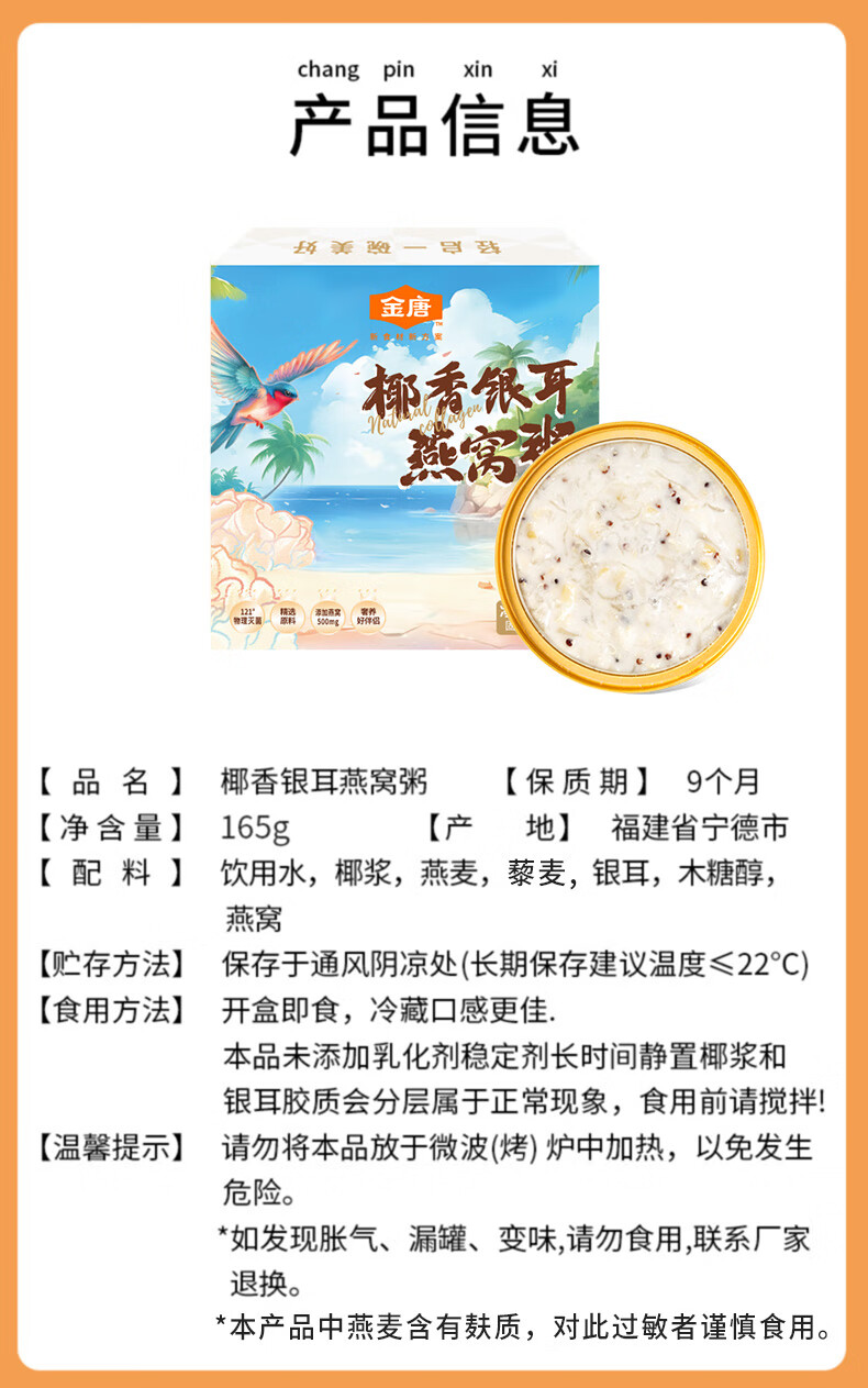 金唐椰香银耳燕窝粥单碗165g早餐即食营养代餐滋补品