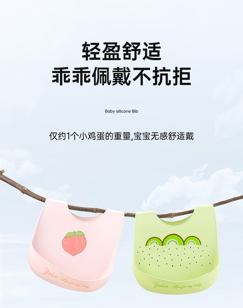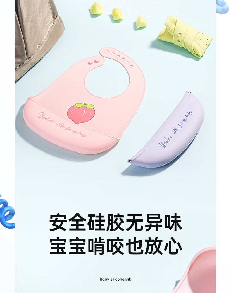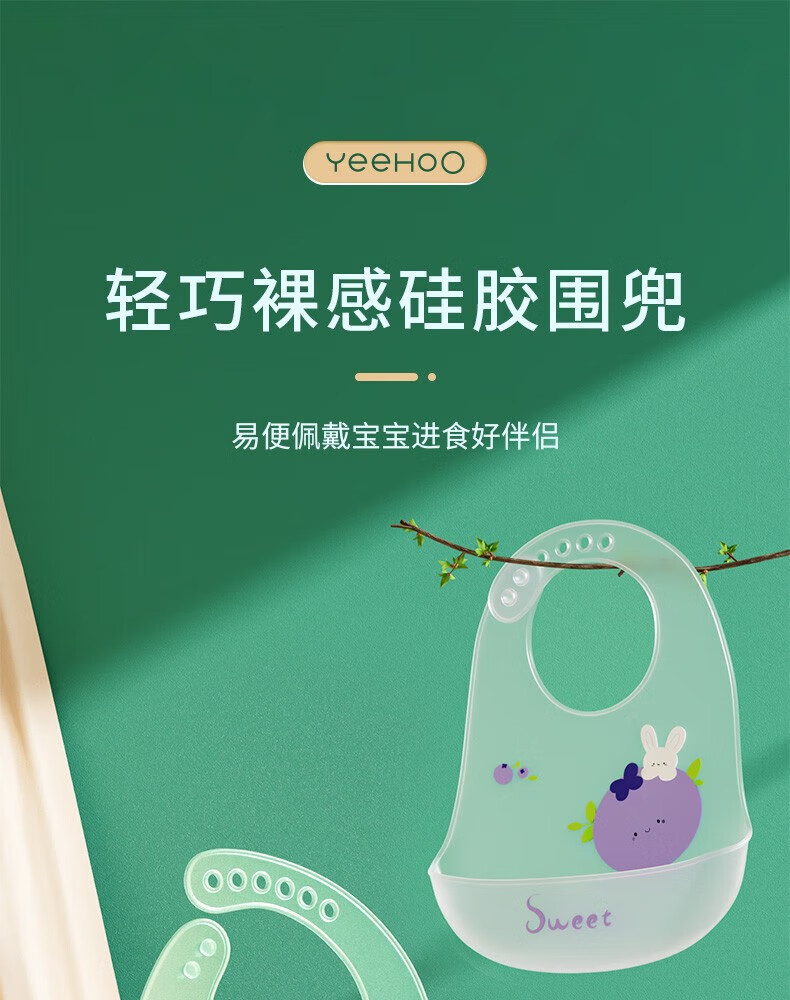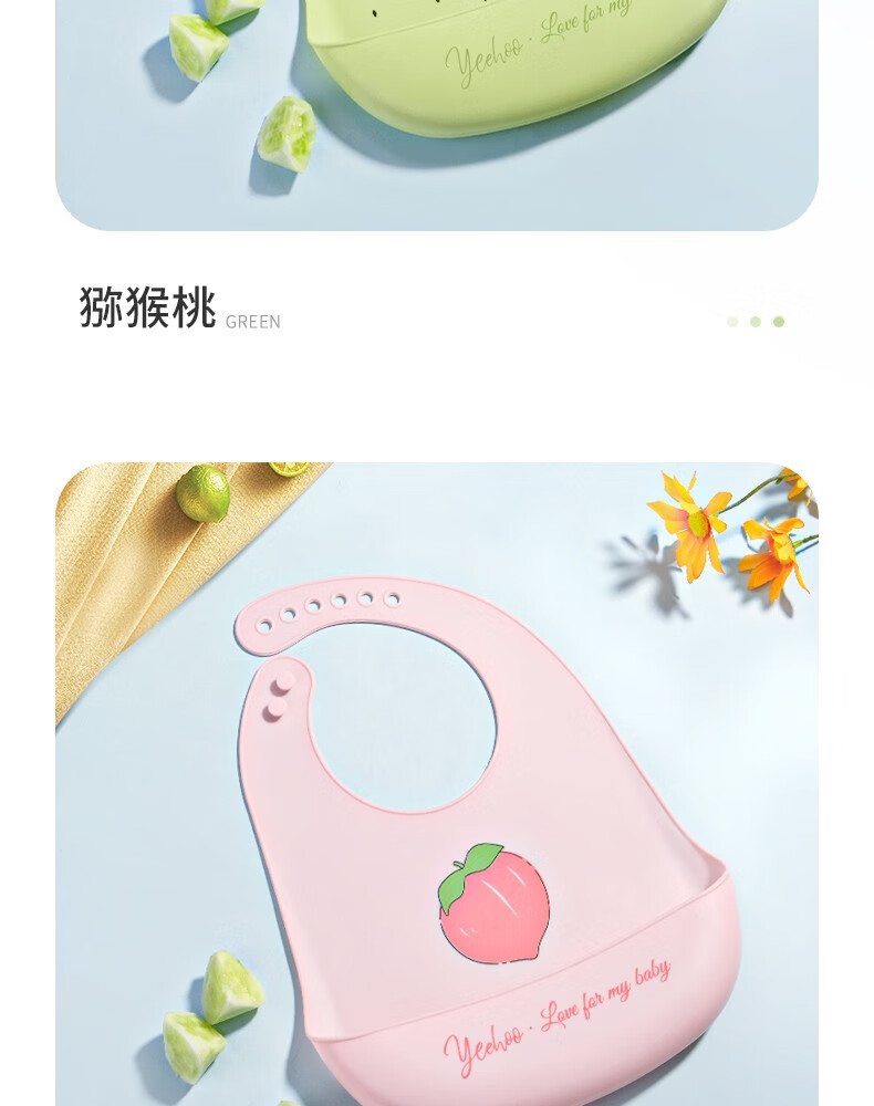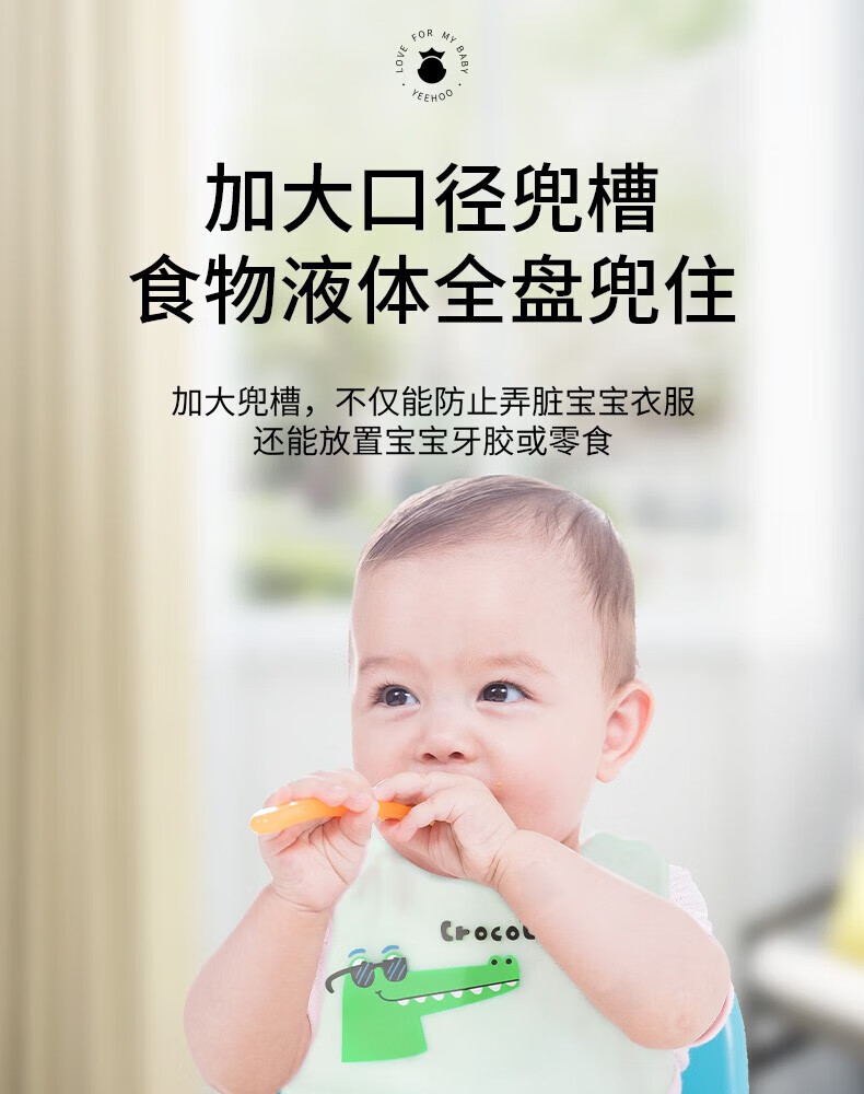 英氏(YEEHOO)围兜防溅衣婴儿硅胶超软儿童饭兜喂饭防水防脏神器 6档调节围兜 小鹿黄色