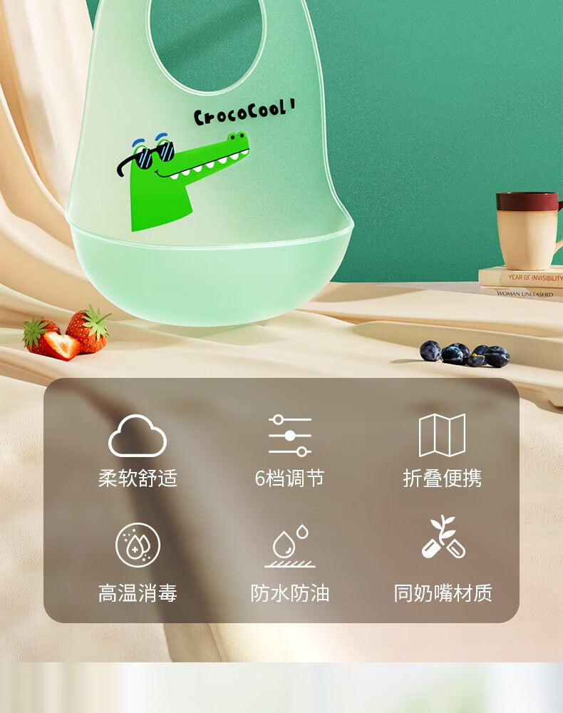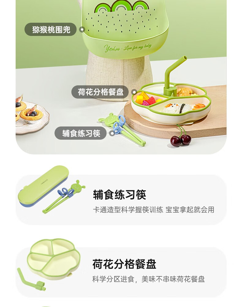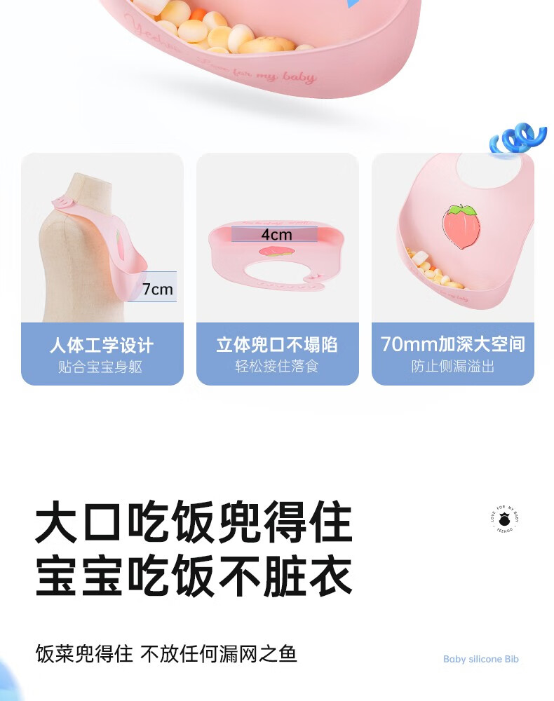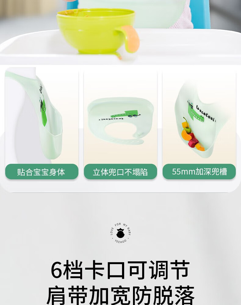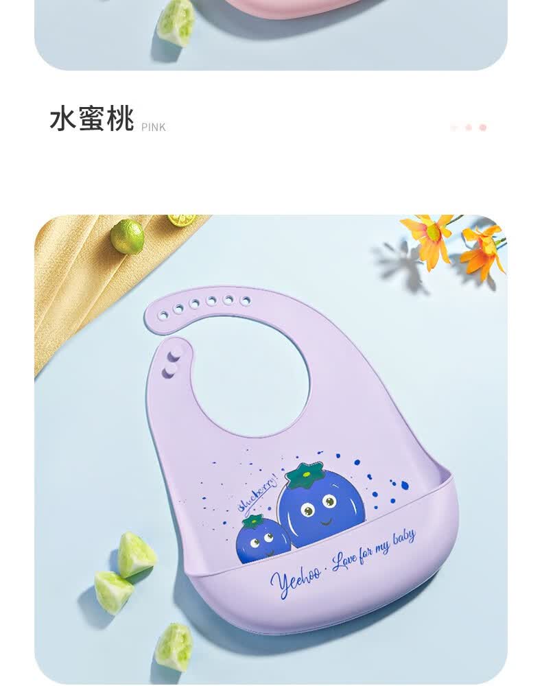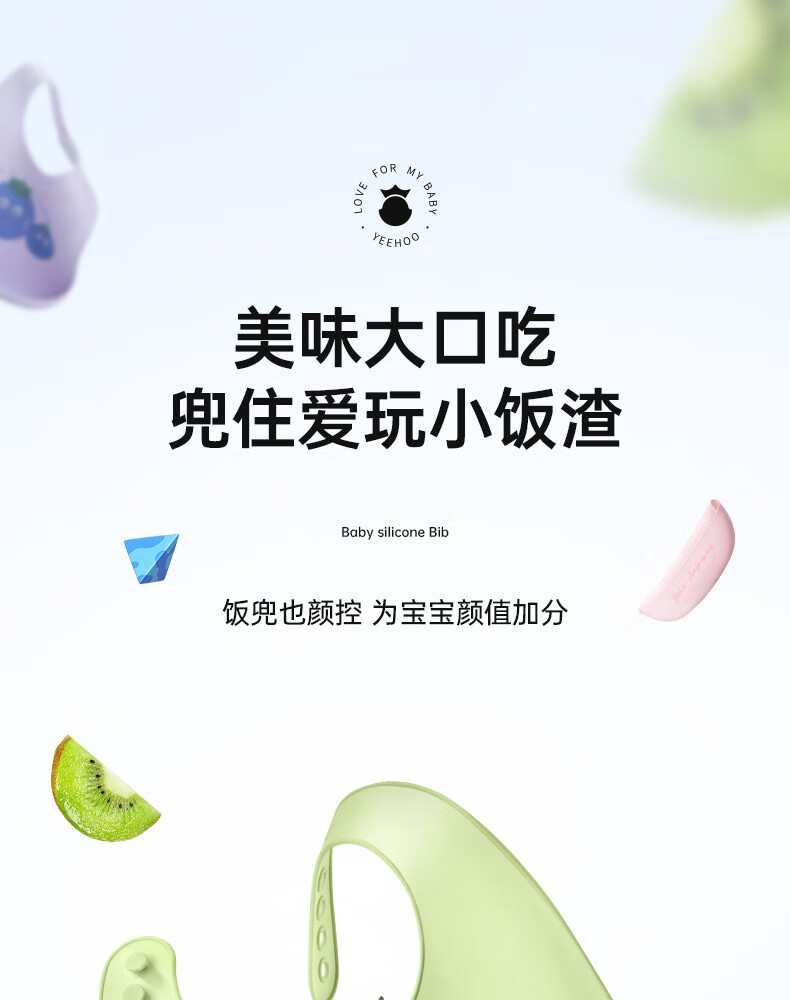 英氏(YEEHOO)围兜防溅衣婴儿硅胶超软儿童饭兜喂饭防水防脏神器 6档调节围兜 小鹿黄色