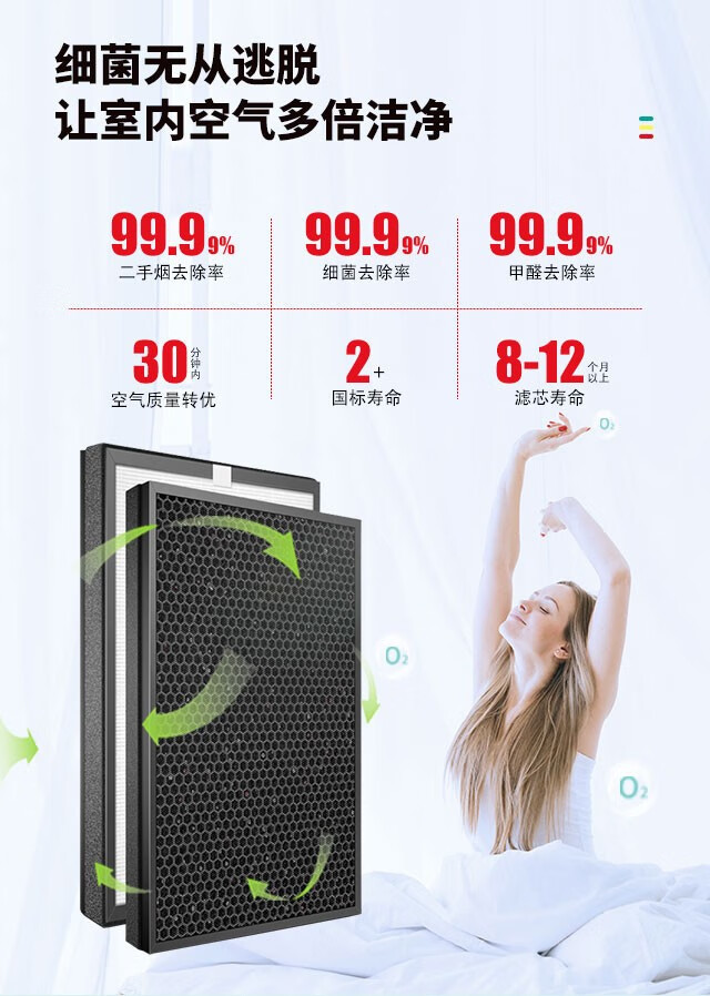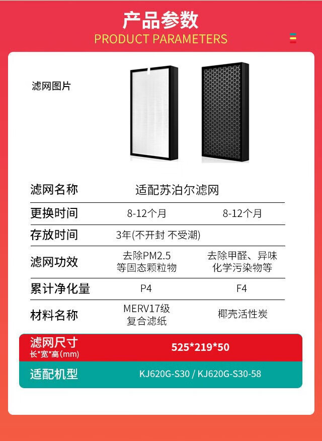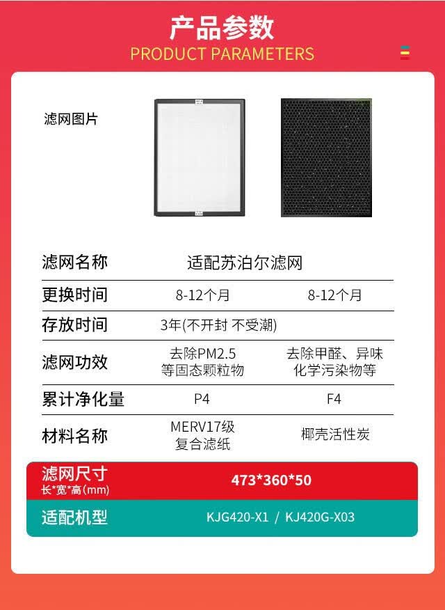 津斗云适配苏泊尔空气净化器滤芯过滤网套装两片 KJG420-X1/X03