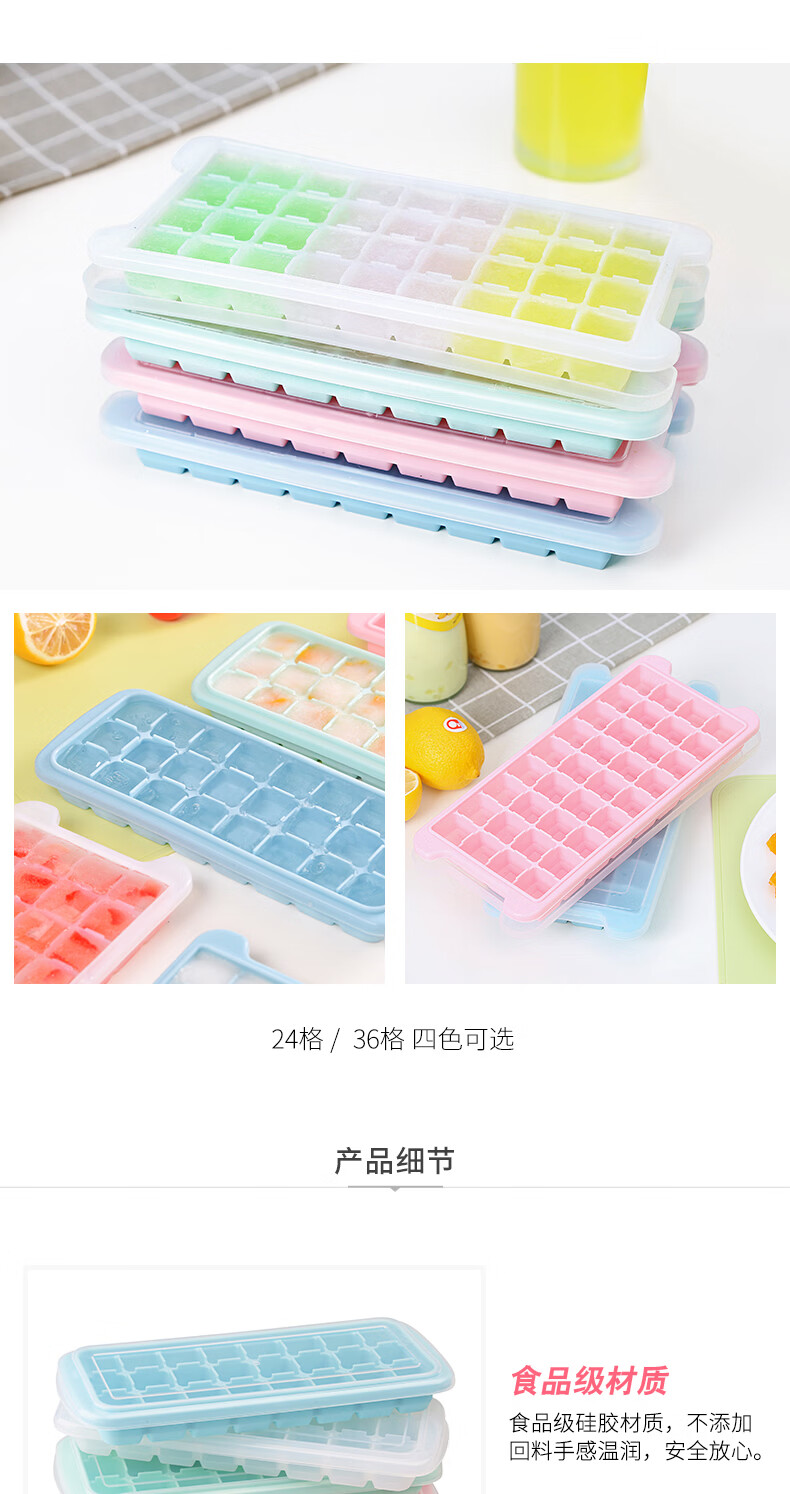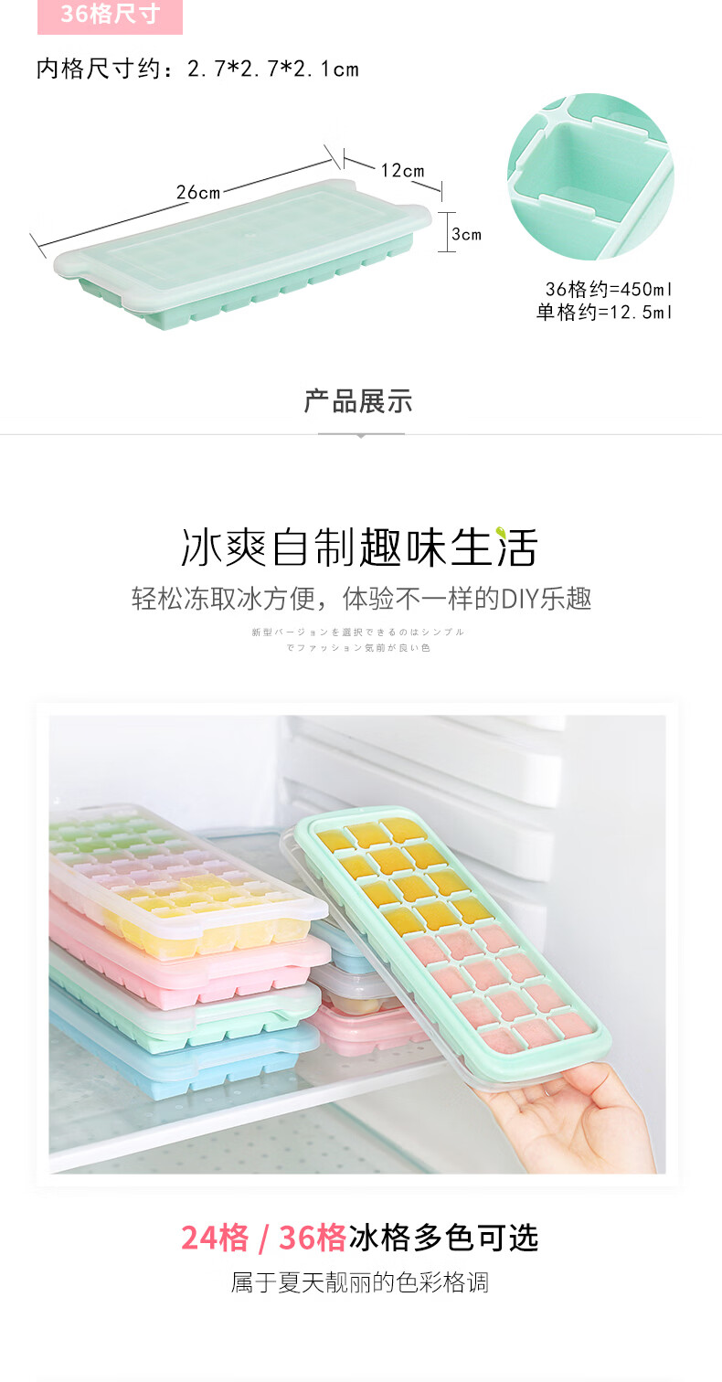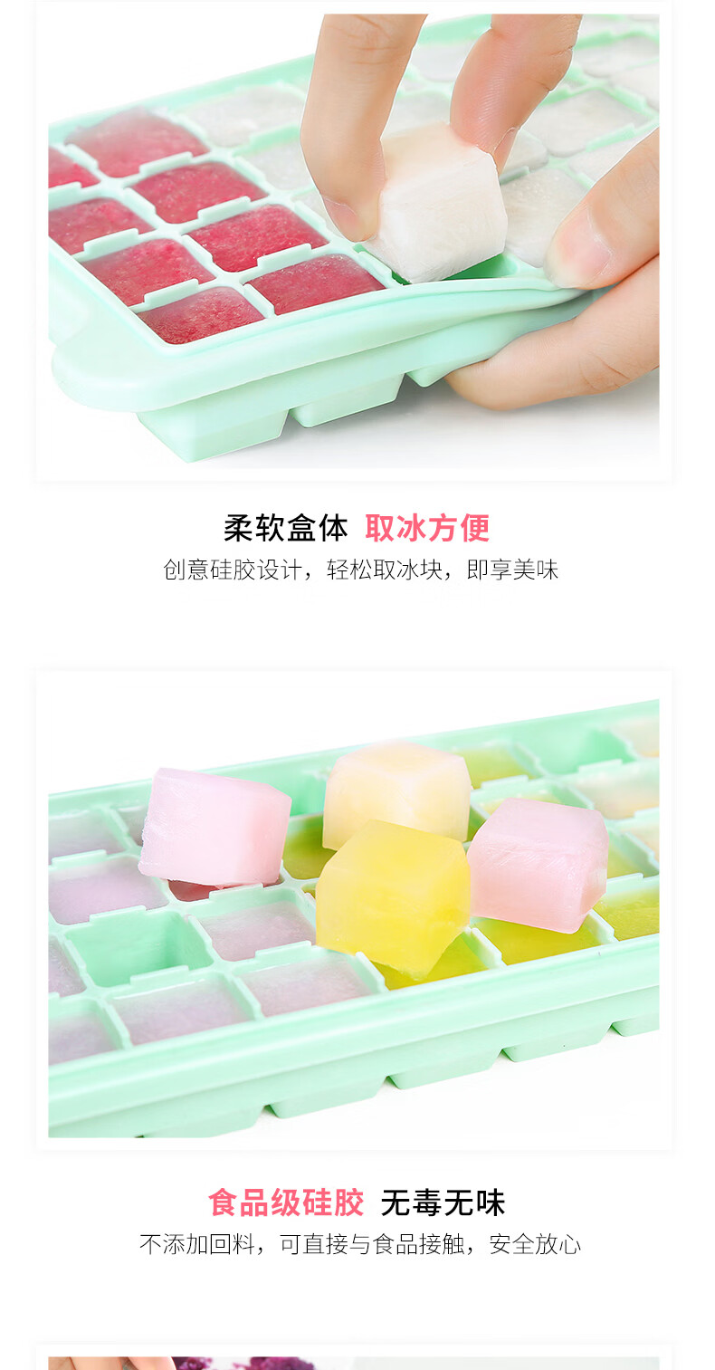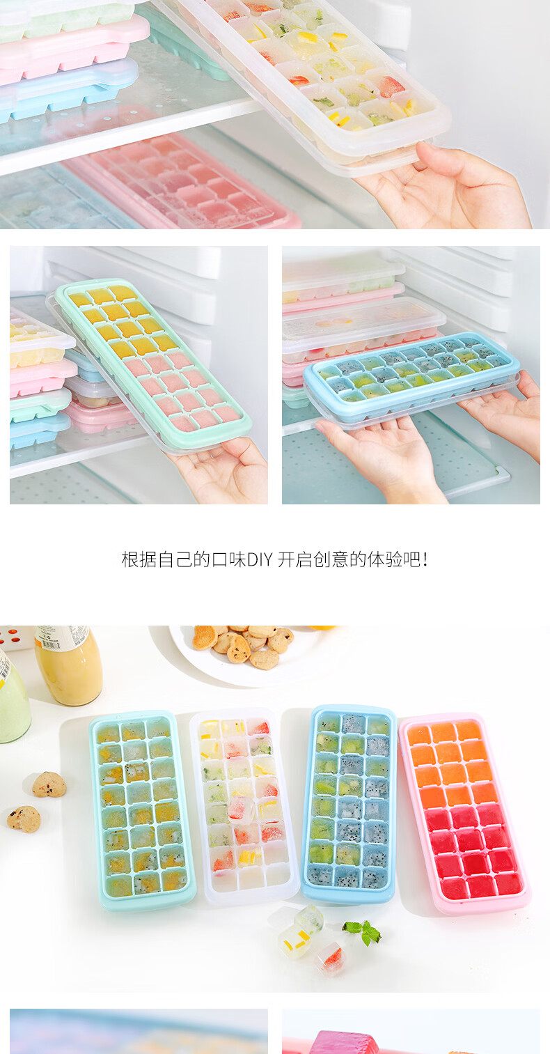 易思迪制冰模具家用冰格带盖冰块模具制冰盒辅食盒制冰格 淡雅蓝-24格 3个