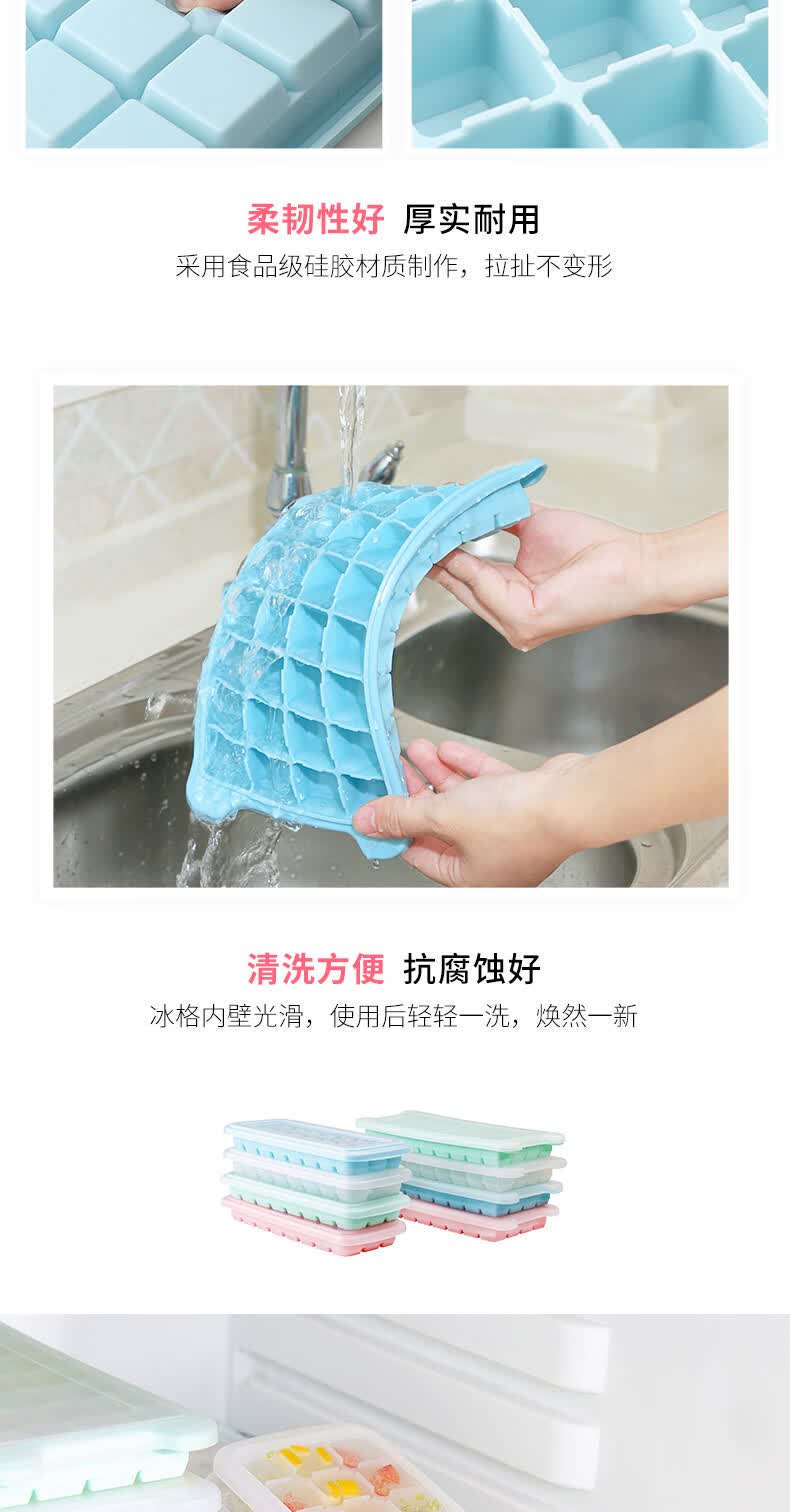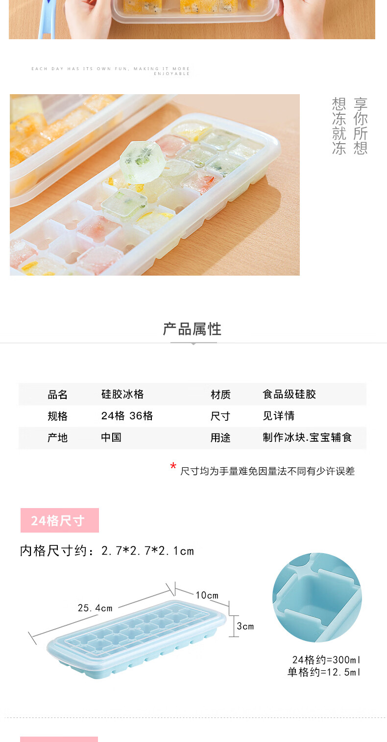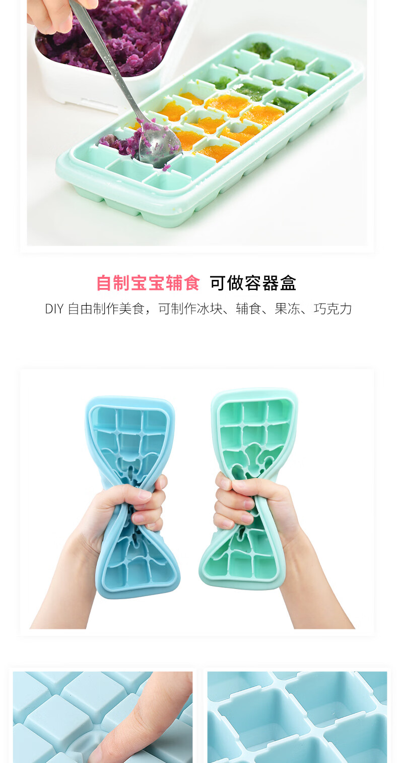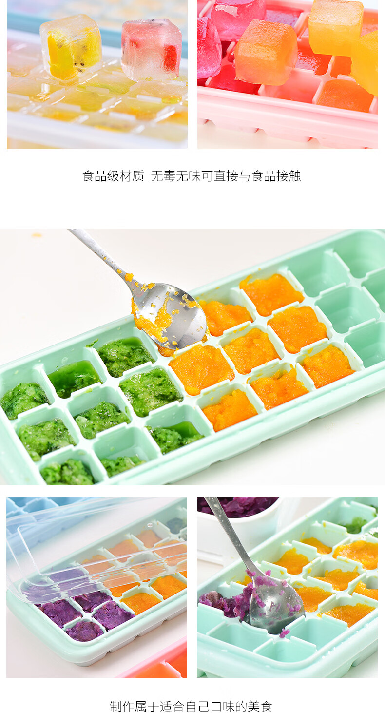 易思迪制冰模具家用冰格带盖冰块模具制冰盒辅食盒制冰格 淡雅蓝-24格 3个