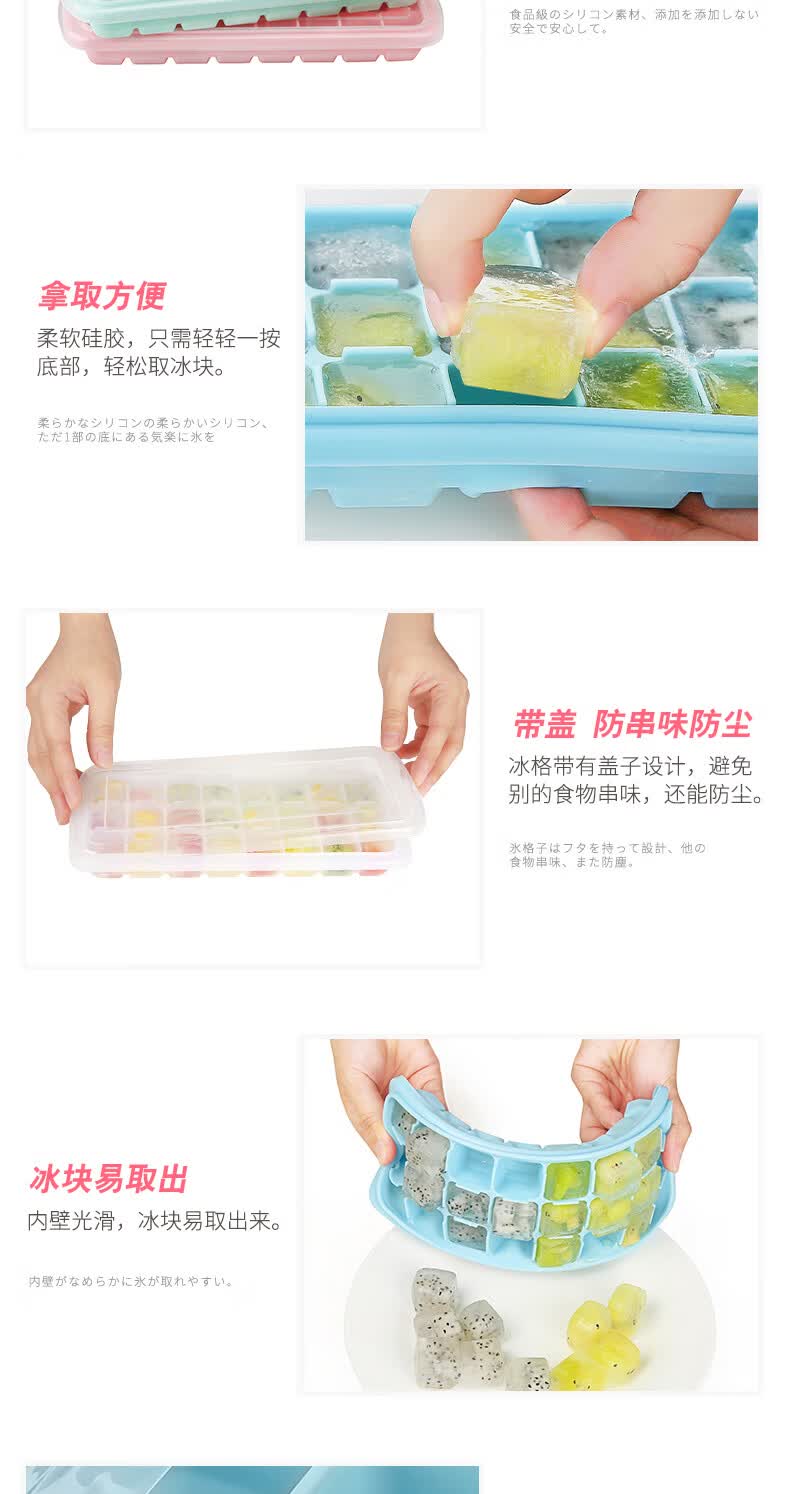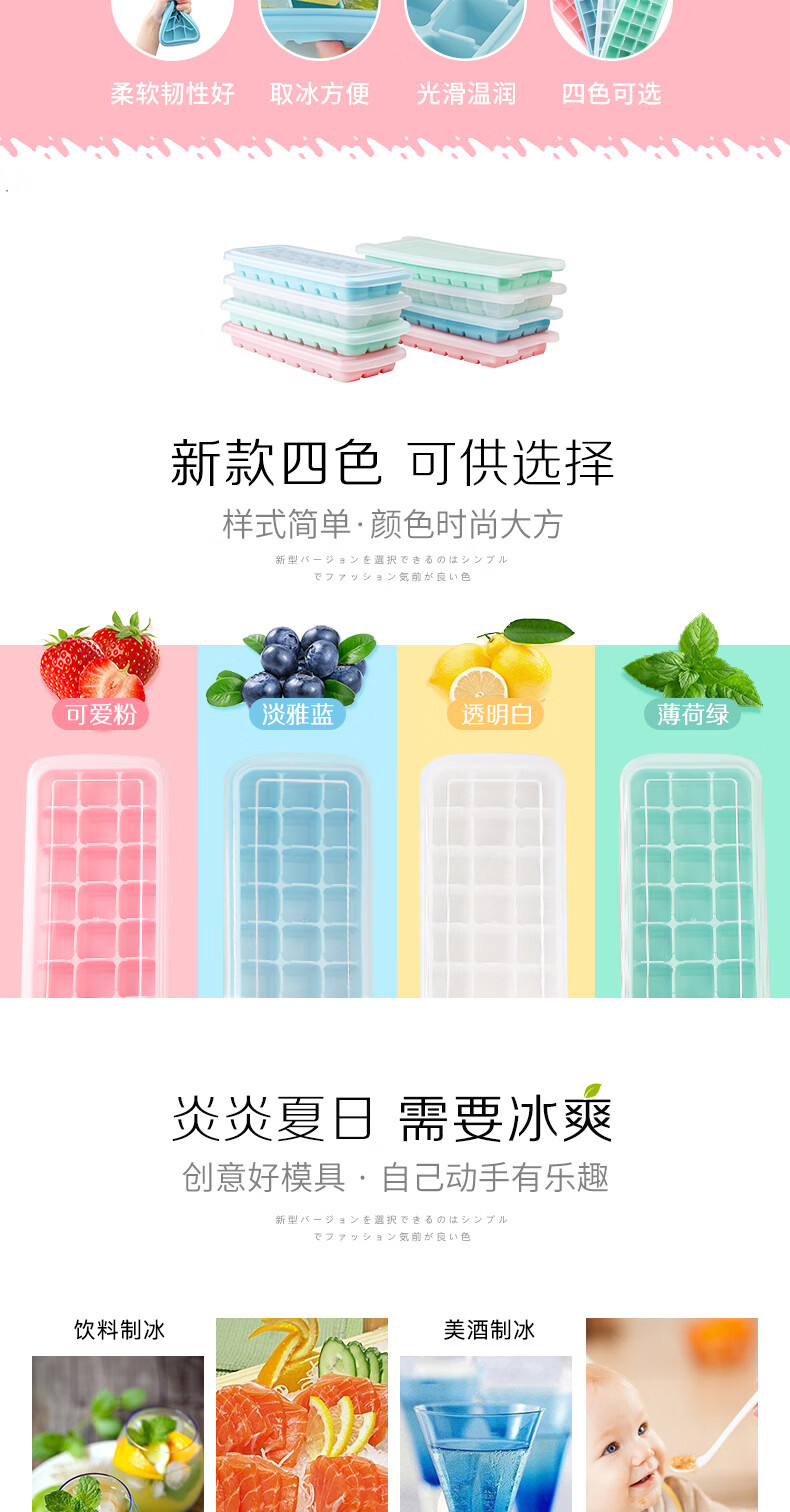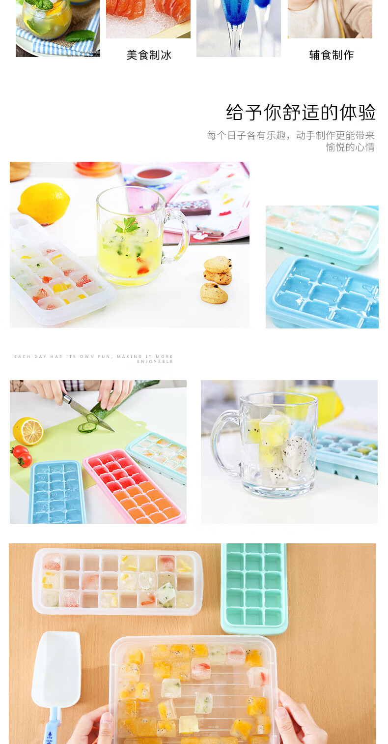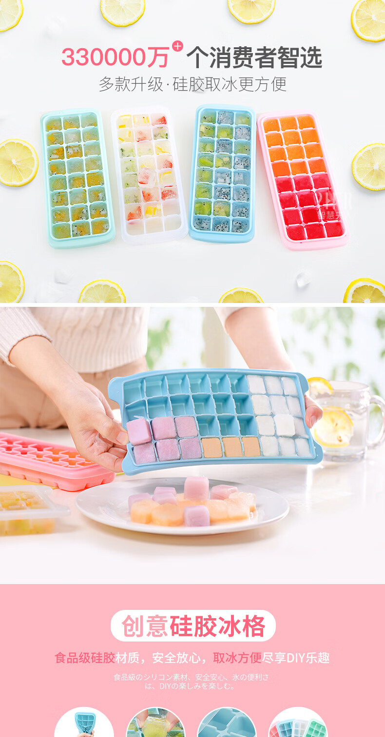 易思迪制冰模具家用冰格带盖冰块模具制冰盒辅食盒制冰格 淡雅蓝-24格 3个