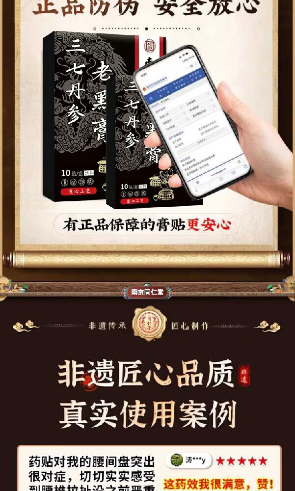 南京同仁堂腰椎贴腰间盘突出膏药腰椎压迫神经腰疼腿疼屁股疼腰肌劳损专用贴 买2送1:三盒装【腰疼腿疼屁股疼 腰椎间盘突出最好的膏药珍疏服老黑膏京东大药房