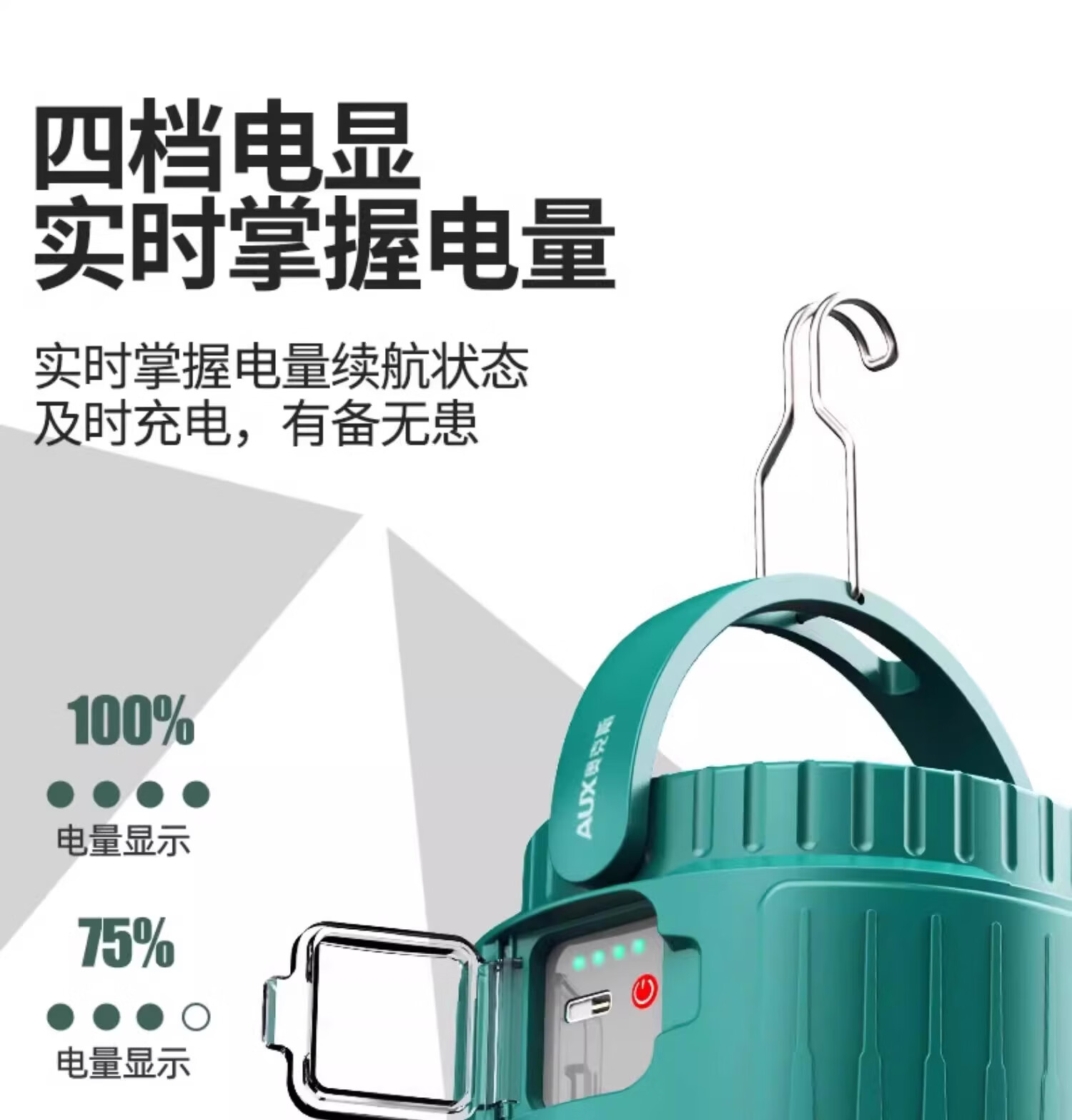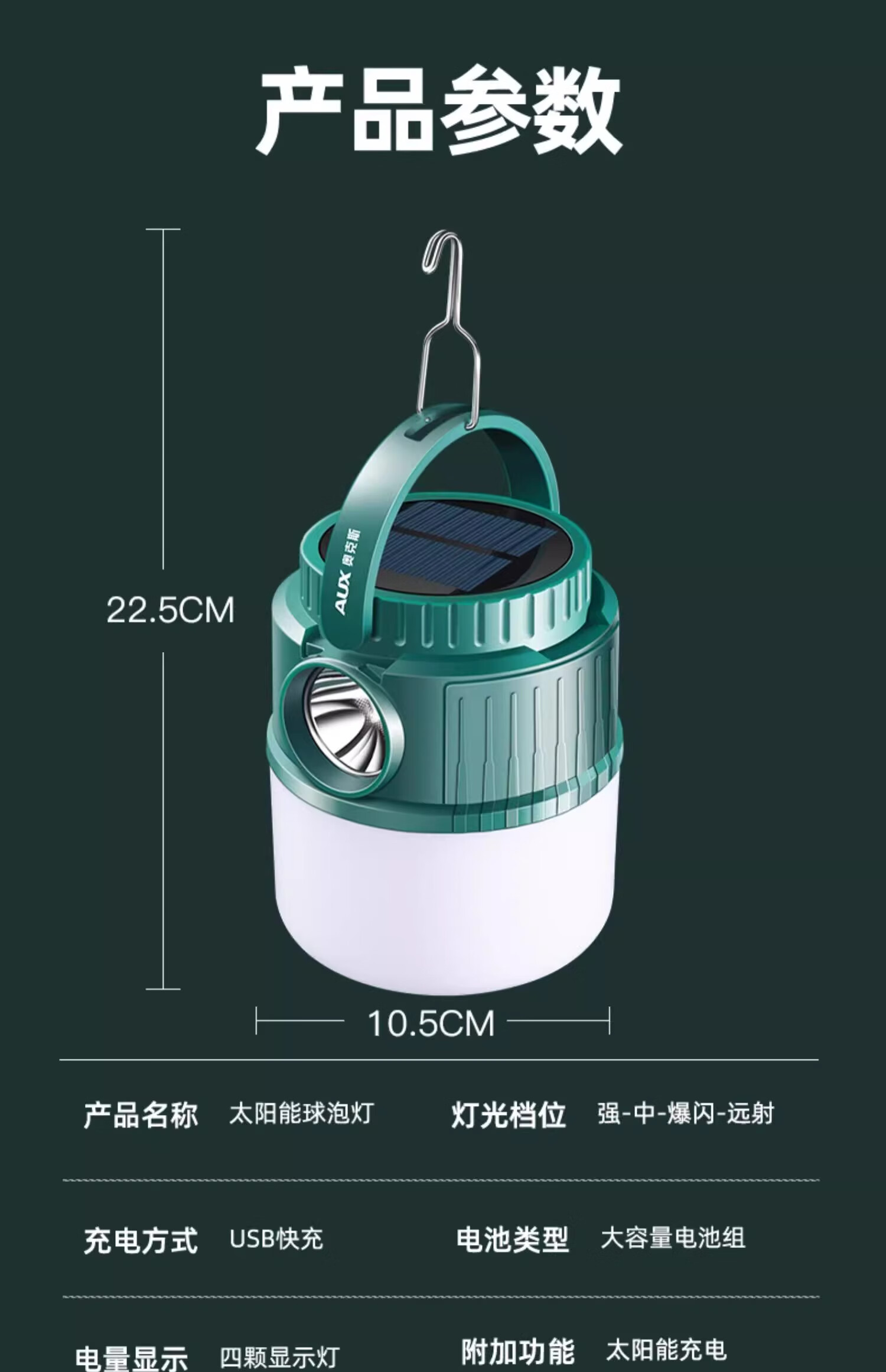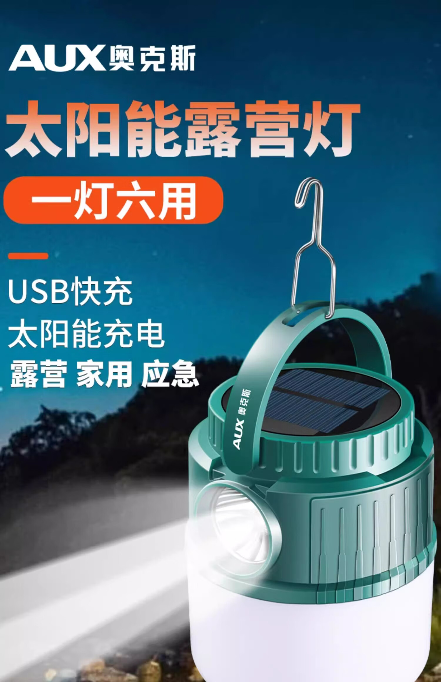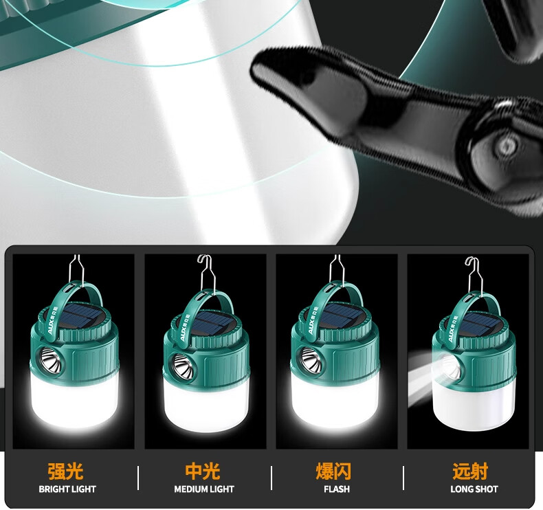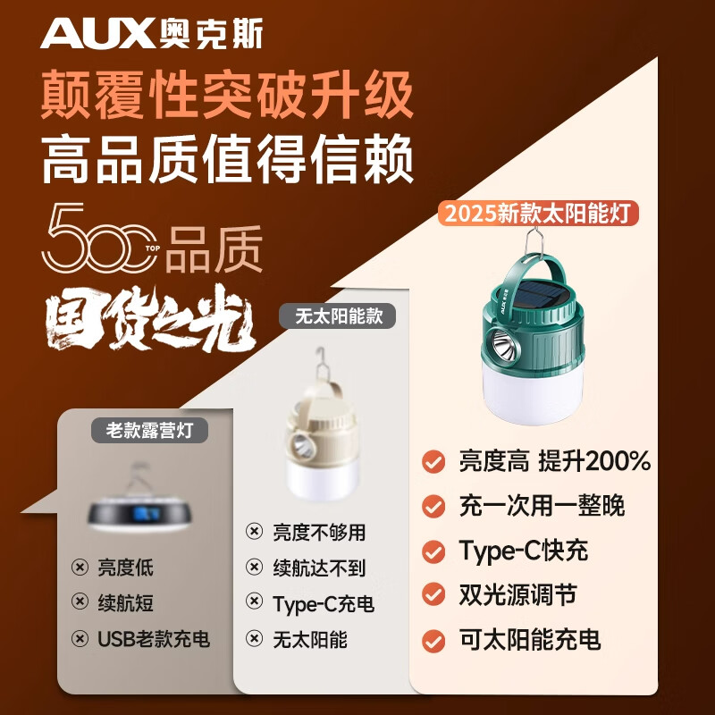 奥克斯(AUX)户外露营灯太阳能户外灯超长续航充电家用停电应急挂失帐篷照明 顶配款/双色光源 【续航16-20小时】