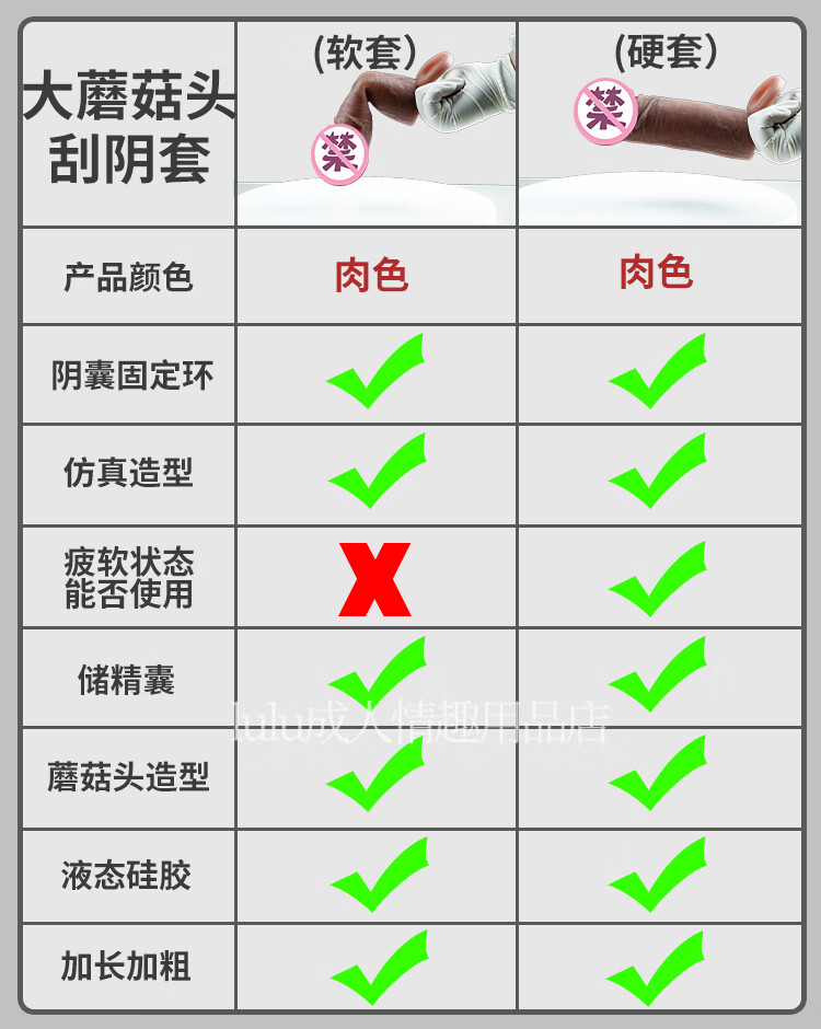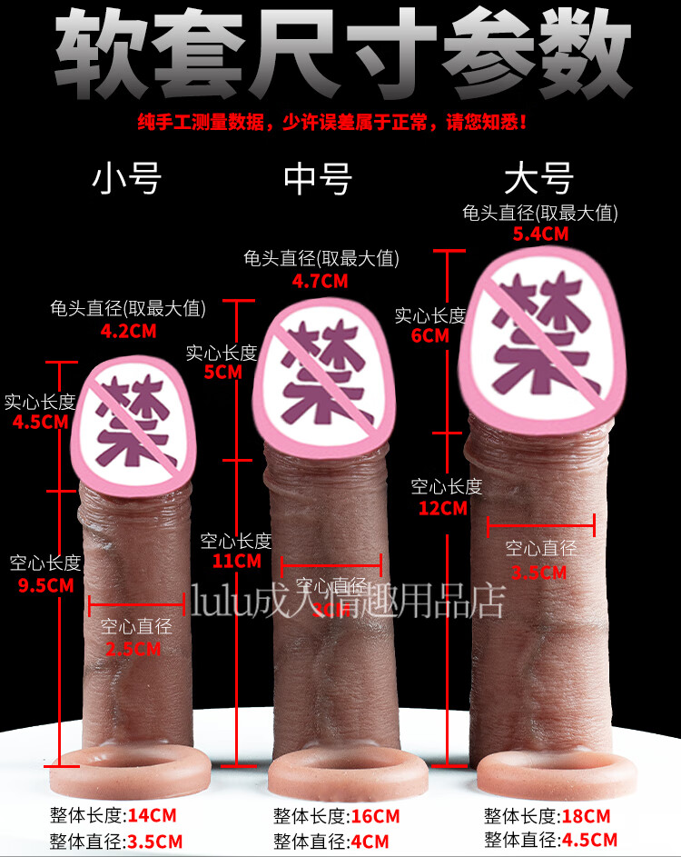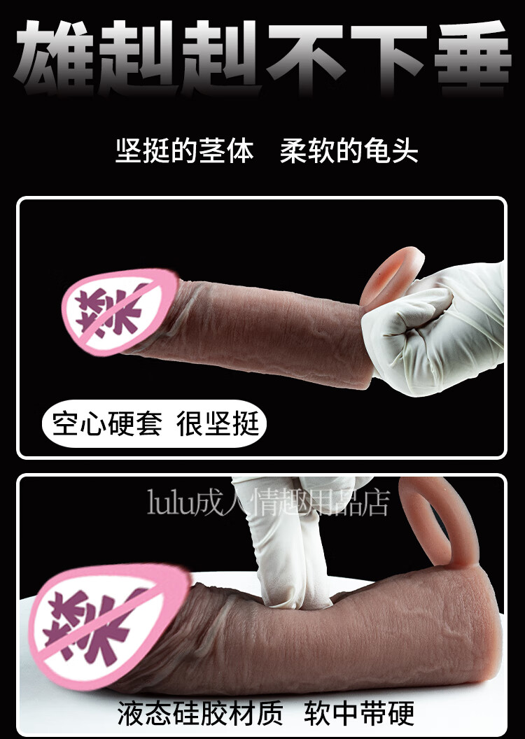 云曼大龟头男用加长阴茎套仿真加粗狼牙套男性不举硬套空心加长粗大套 软套-大号(物理加长加粗)