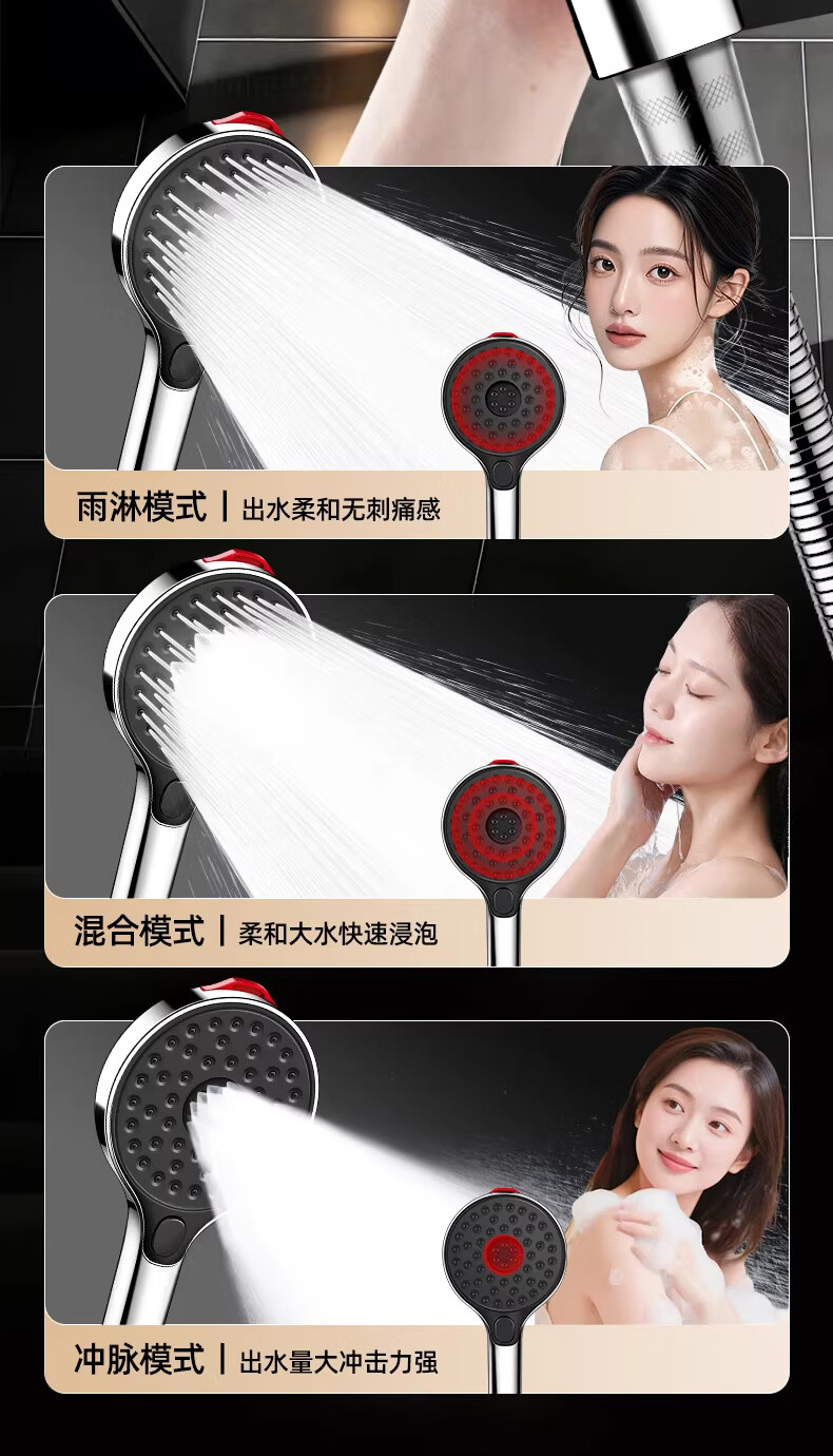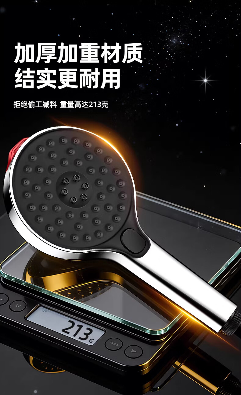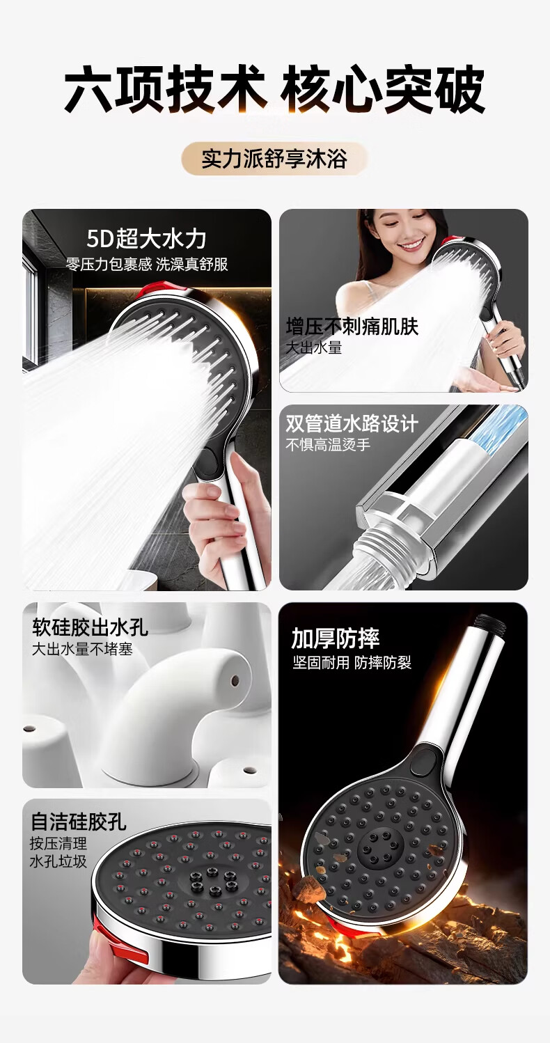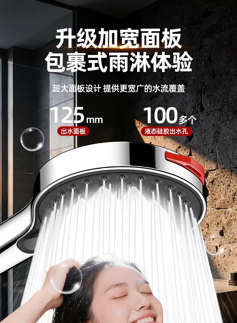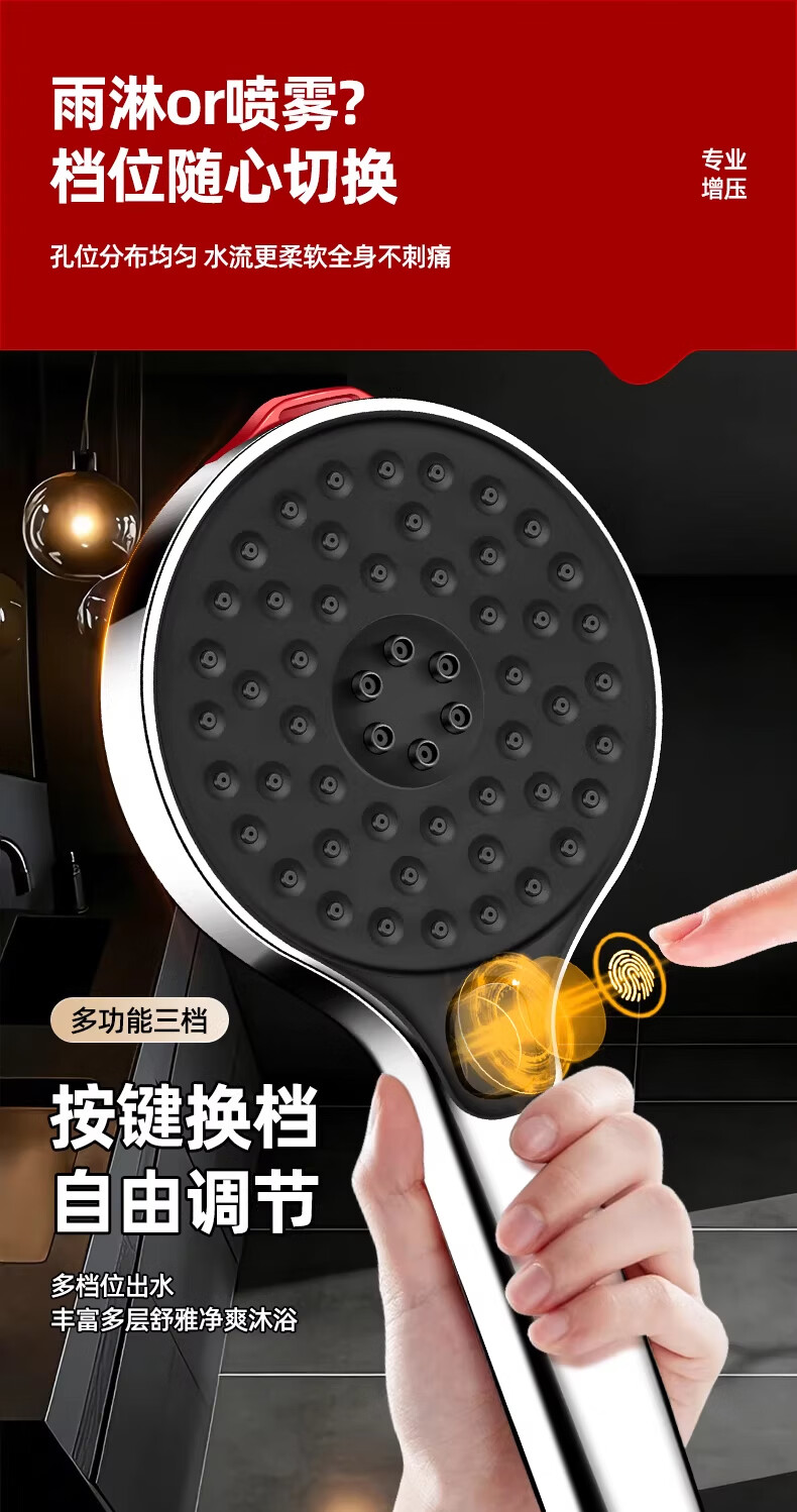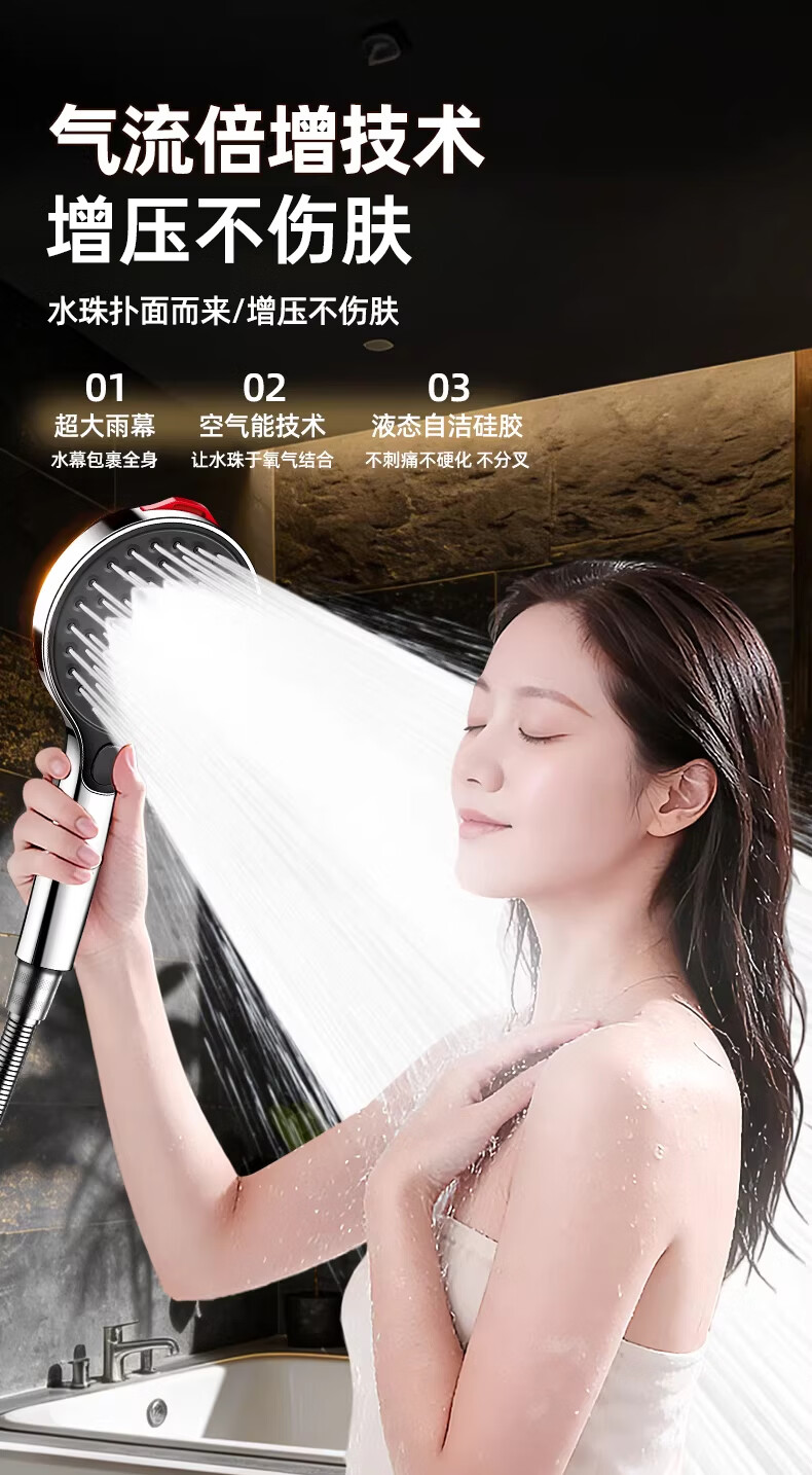 GuGuGo【德国】增压花洒喷头超强高压大出水浴室淋浴套装带软管除垢自洁 【星光银】除垢自洁花洒 三档漩涡增压丨享受六星级酒店沐浴体验