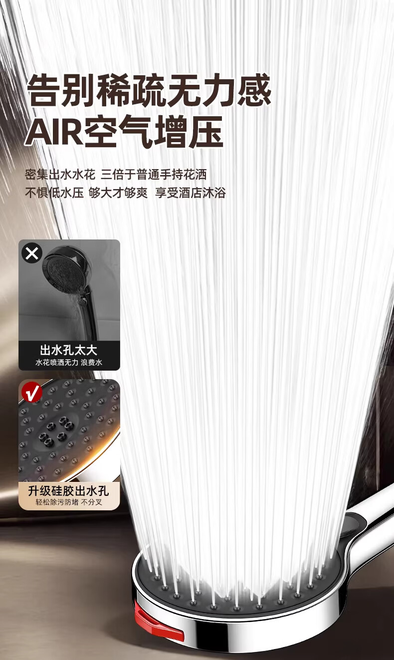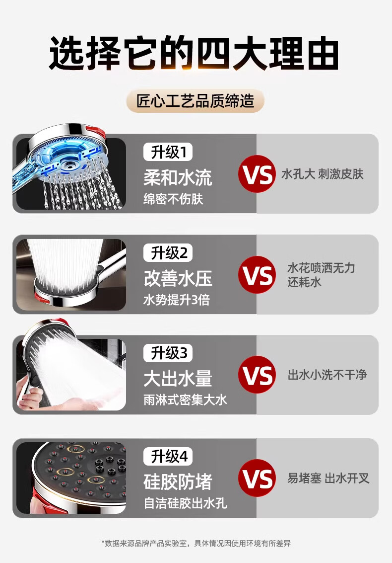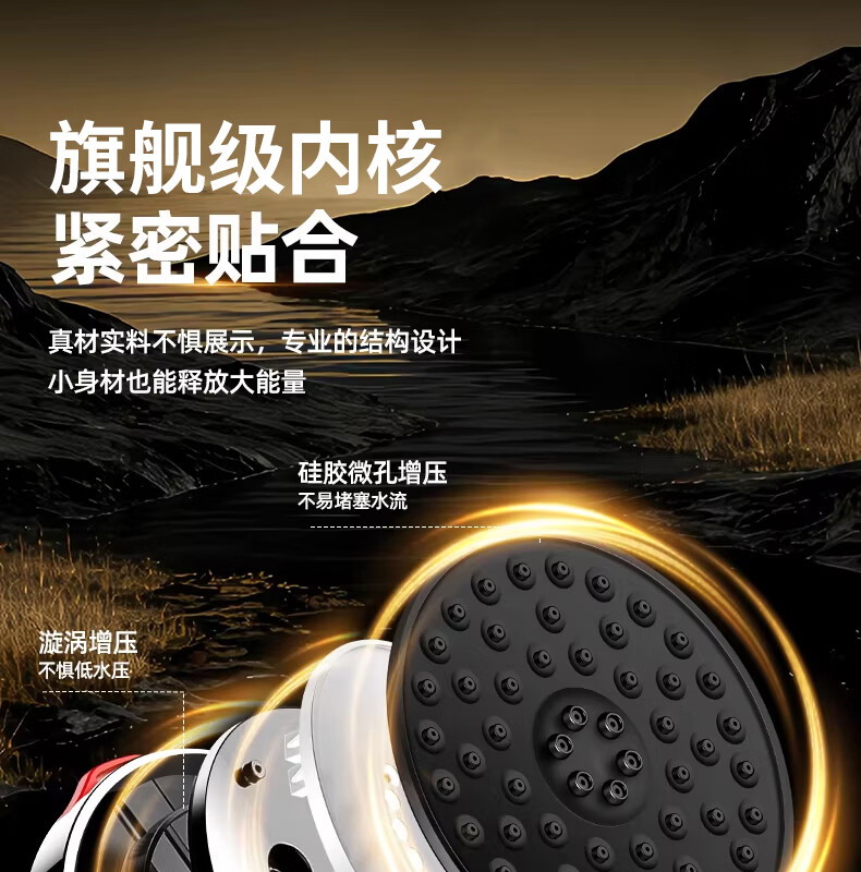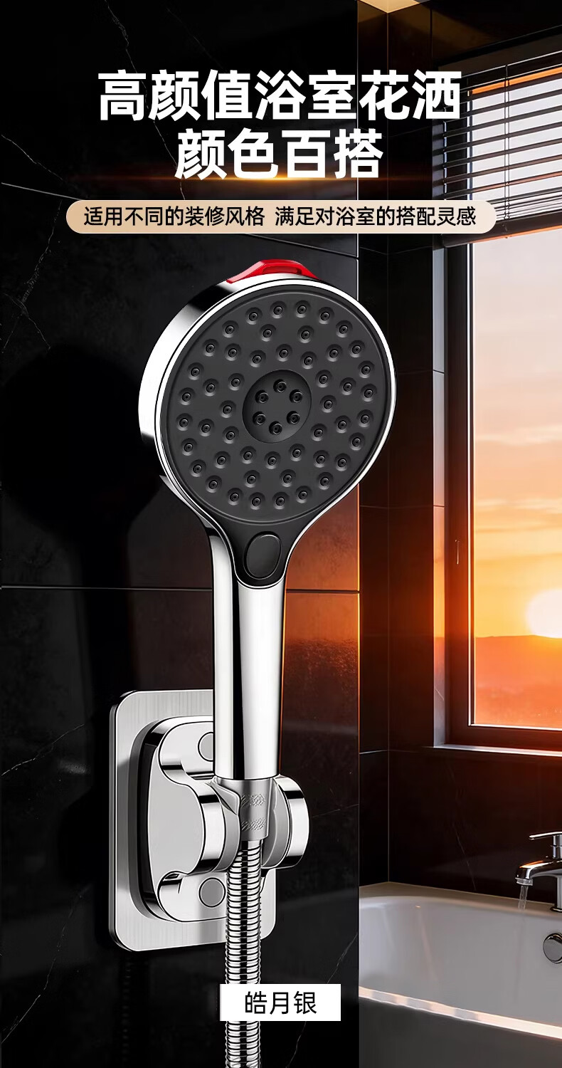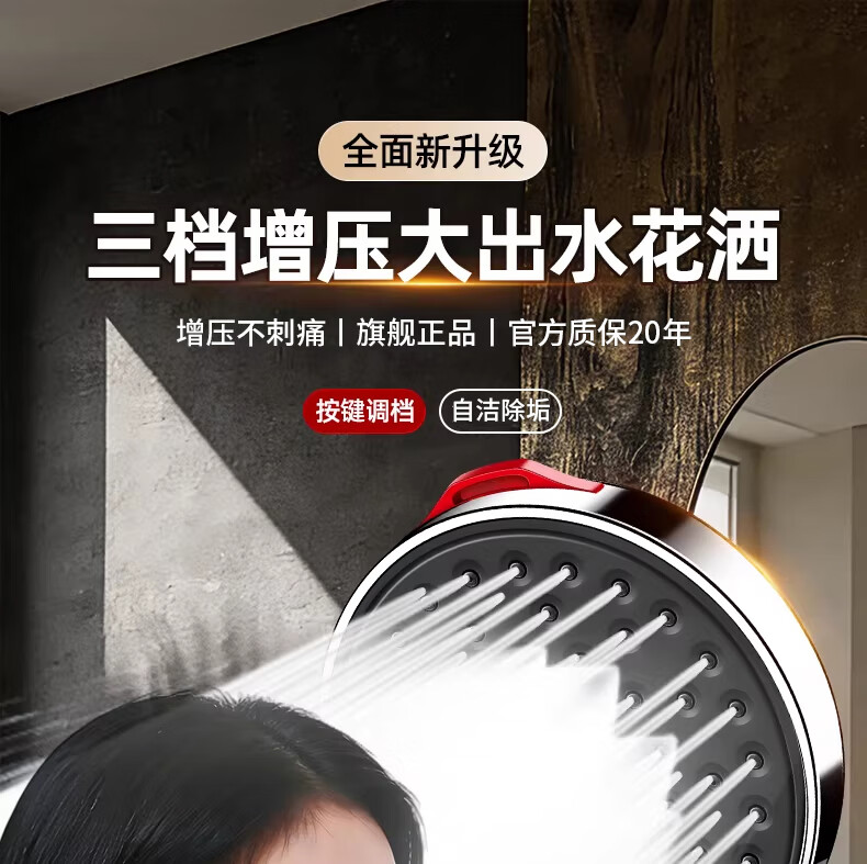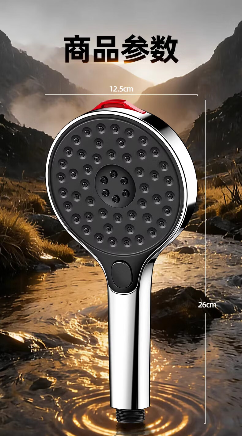 GuGuGo【德国】增压花洒喷头超强高压大出水浴室淋浴套装带软管除垢自洁 【星光银】除垢自洁花洒 三档漩涡增压丨享受六星级酒店沐浴体验