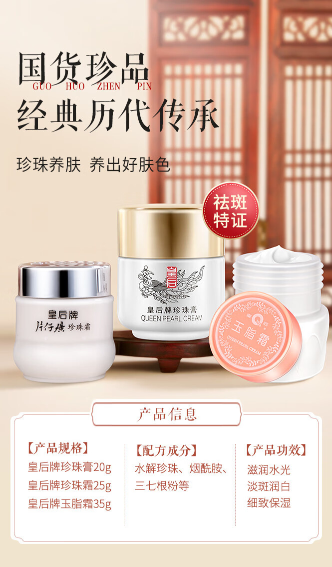 片仔癀珍珠霜皇后牌面霜补水保湿美白祛斑膏姥姥霜男女经典老国货护肤品 臻润珍珠膏 40g