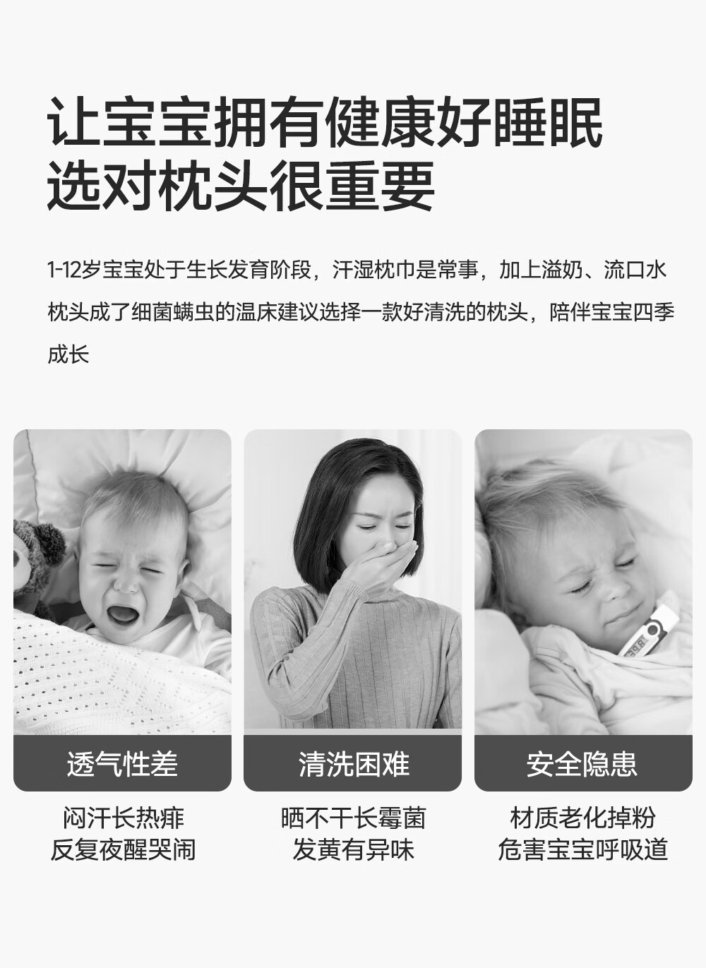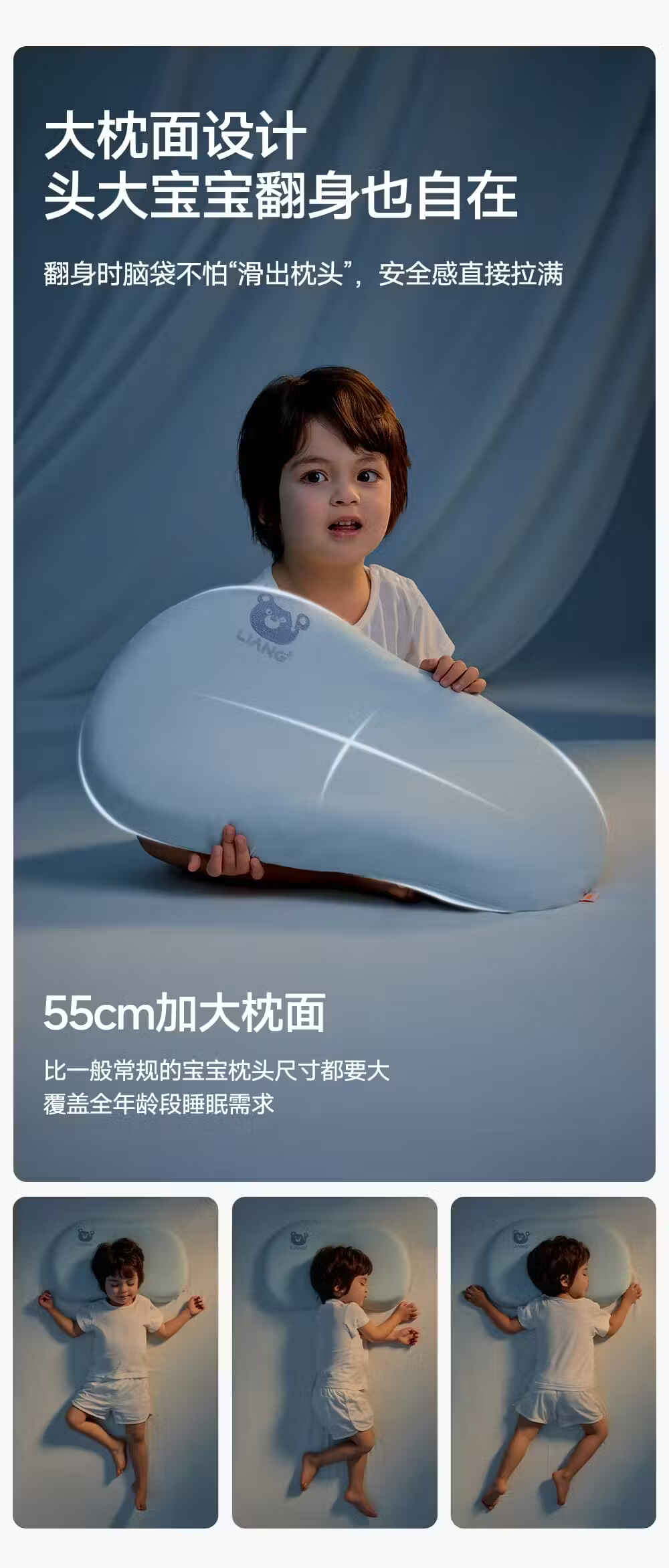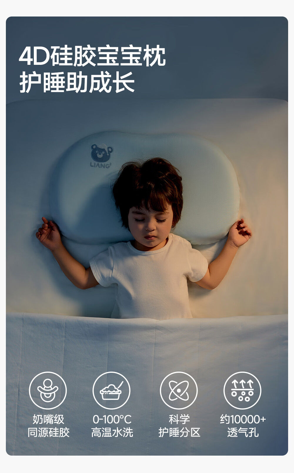 良良婴儿硅胶枕1-3岁儿童幼儿园透气防螨可水洗四季通用55*33cm