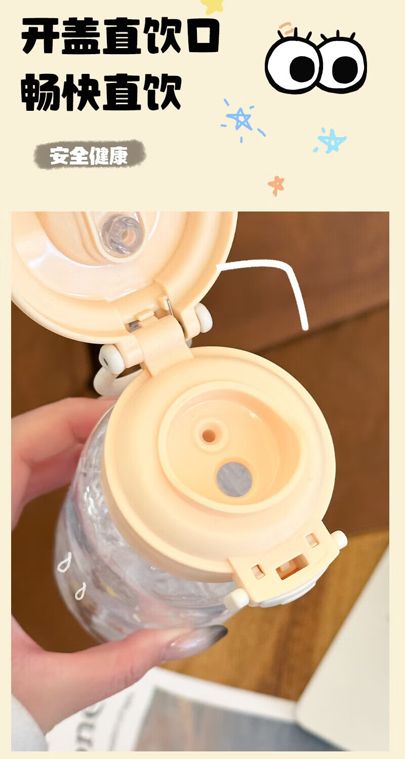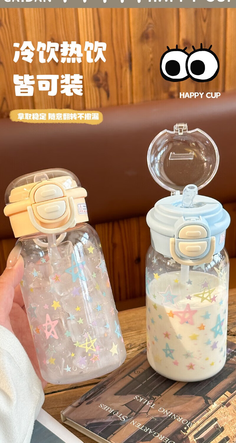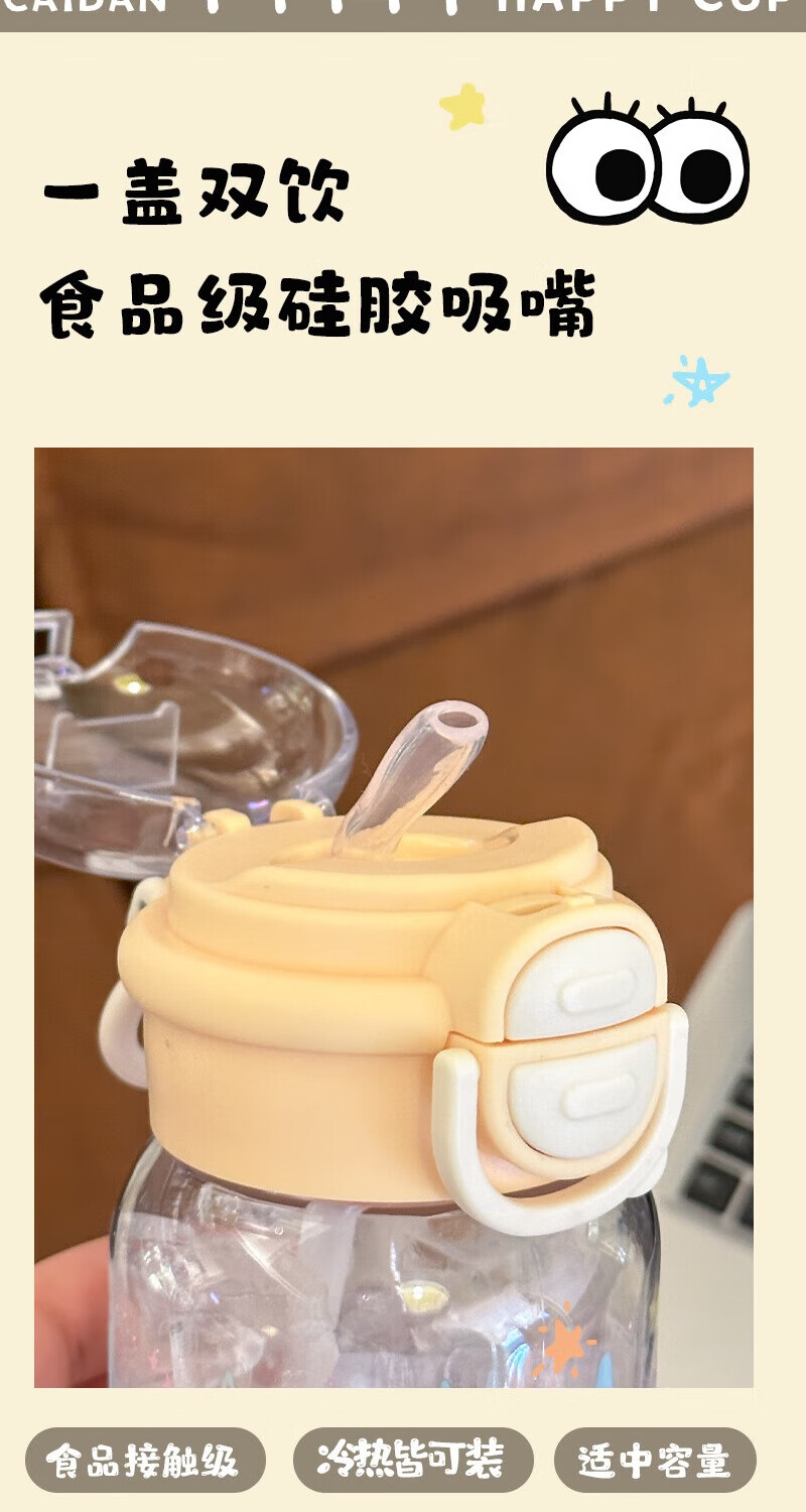 春季高颜值塑料水杯防摔耐高温吸管杯子双饮大容量学生男女 黄色 530ml 1个