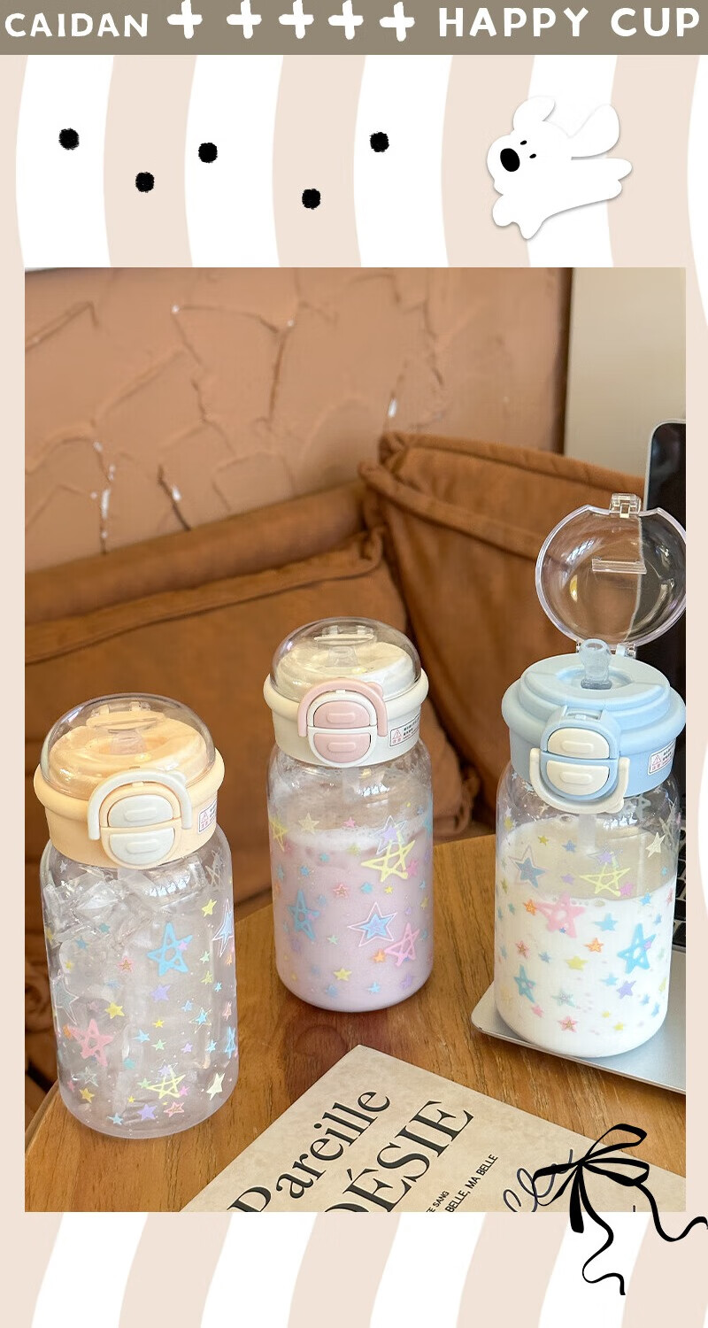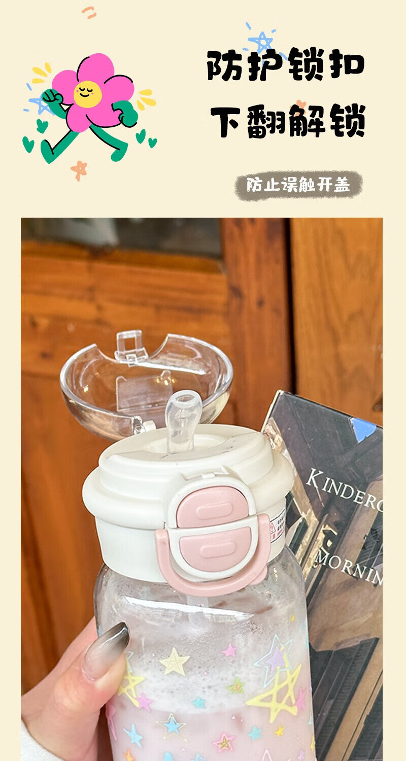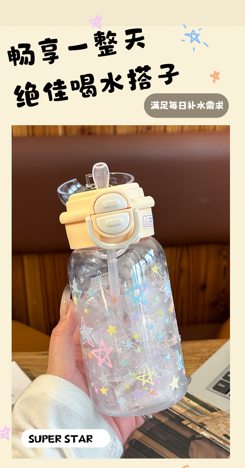 春季高颜值塑料水杯防摔耐高温吸管杯子双饮大容量学生男女 黄色 530ml 1个