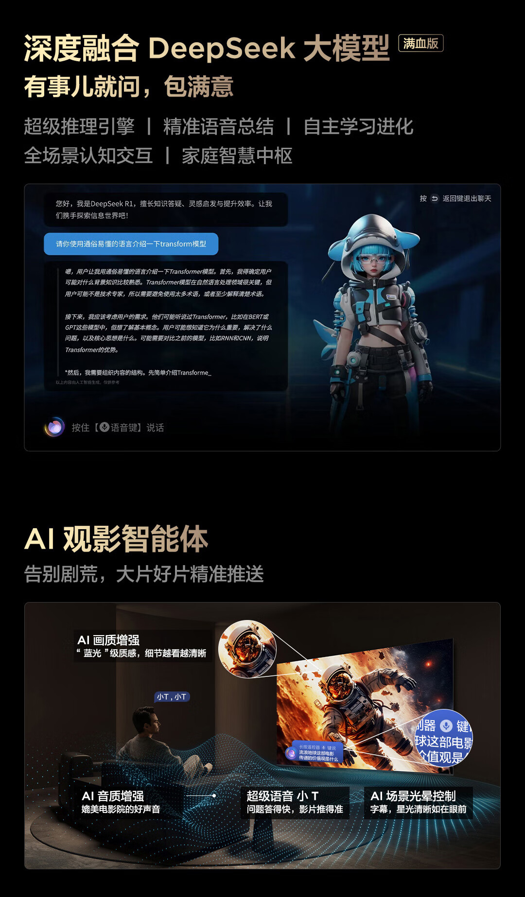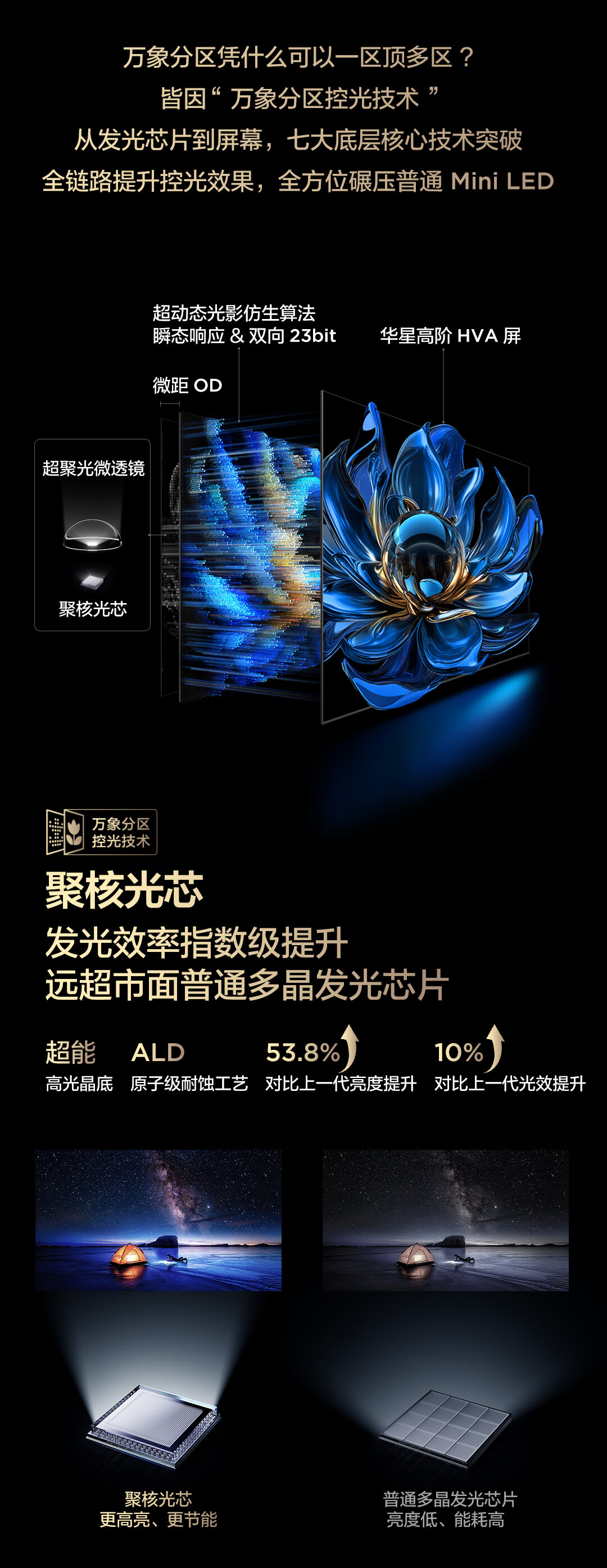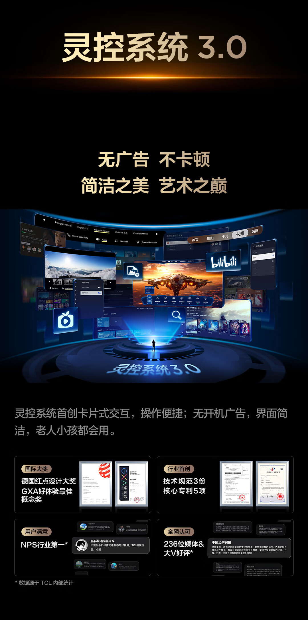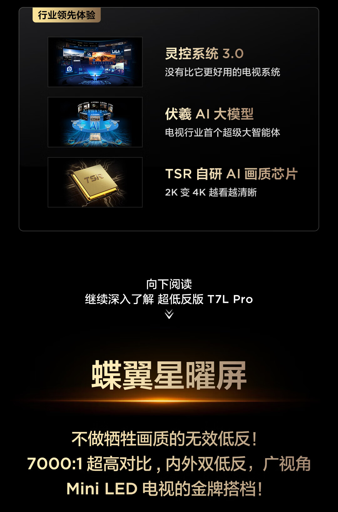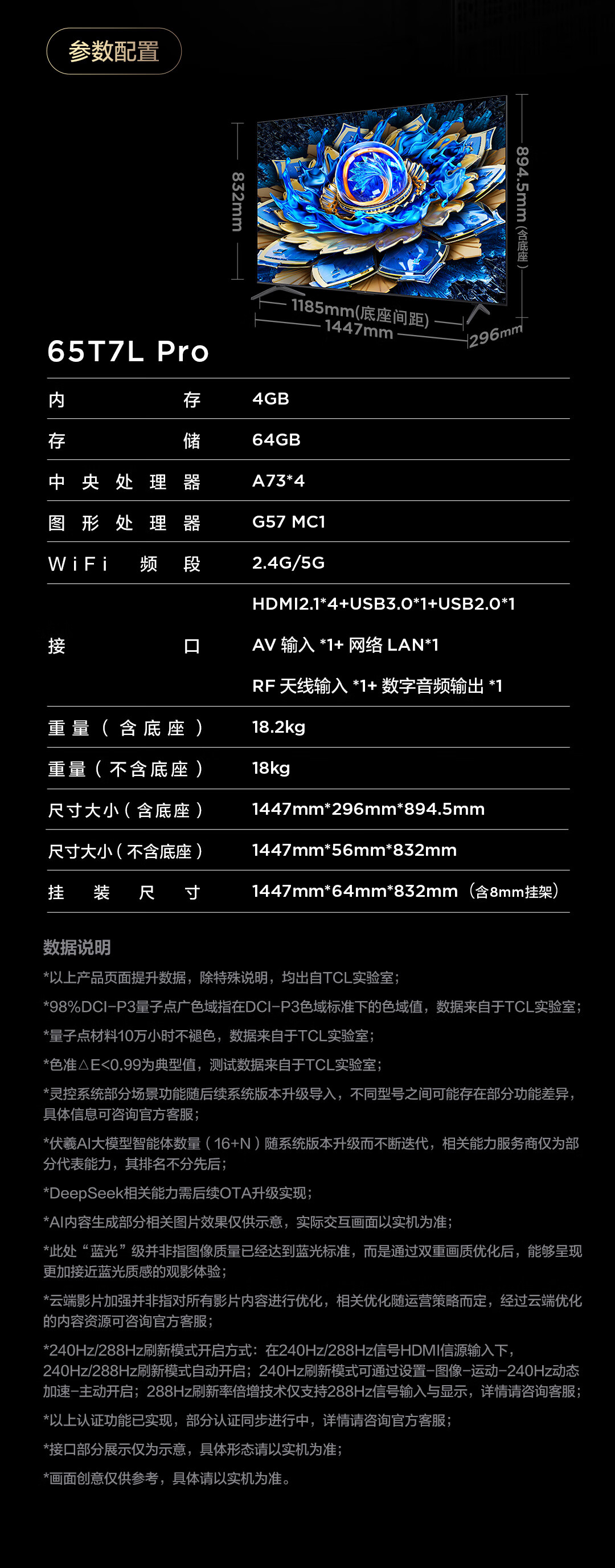 TCL电视 65T7L Pro 65英寸 QD-Mini LED 蝶翼星曜屏 万象分区 绚彩XDR 超薄 国家补贴 护眼