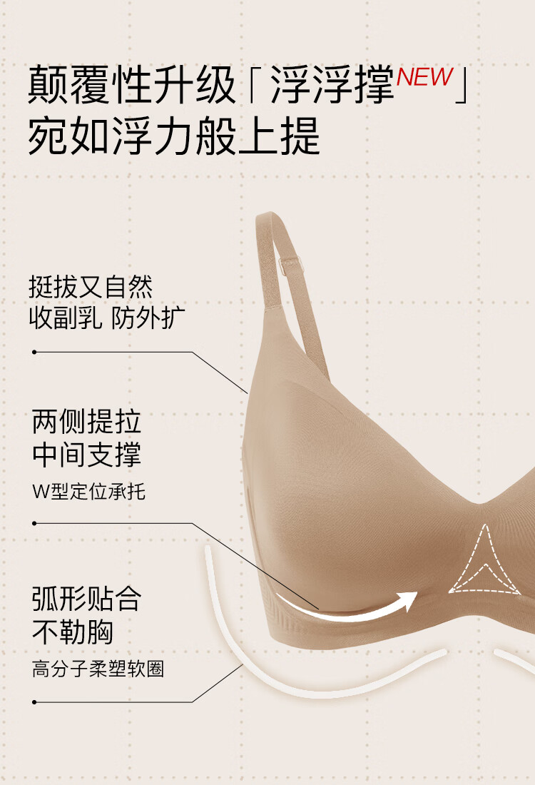 ubras虞书欣同款浮浮撑内衣无痕聚拢软支撑文胸女隐形肤色原肤裸M