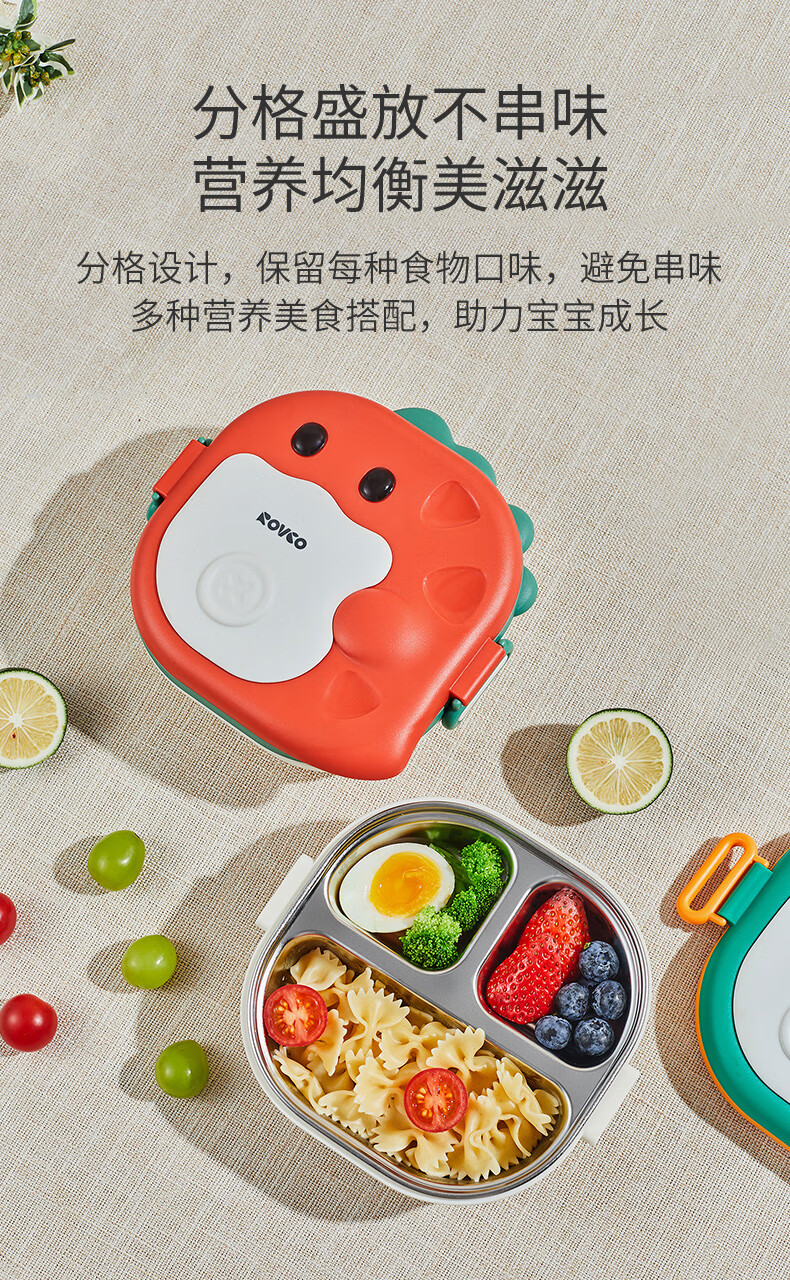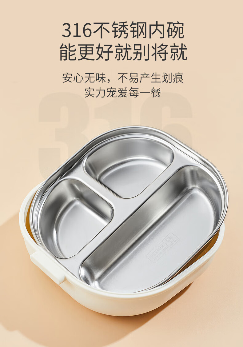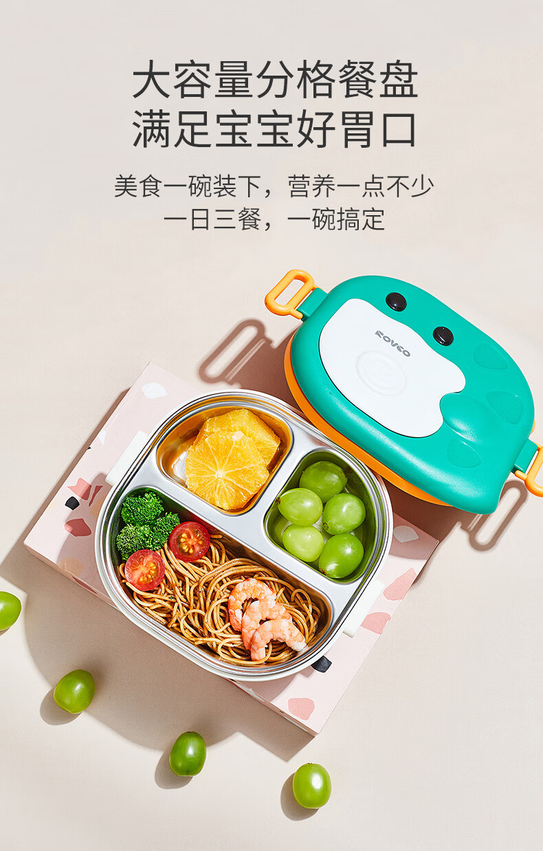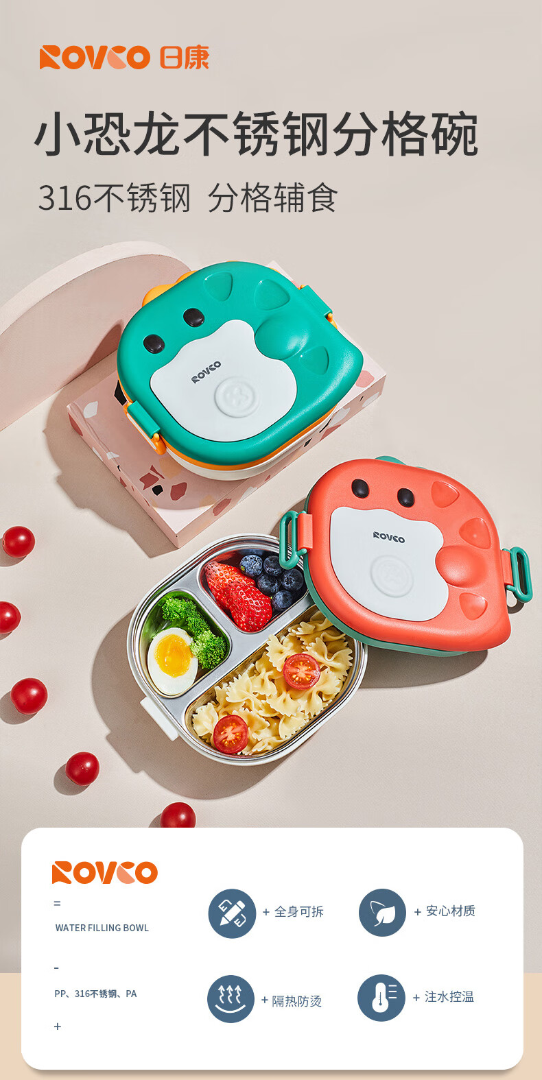 日康保温饭盒 儿童分格餐盘辅食碗 不锈钢小学生饭盒 C1016朱红