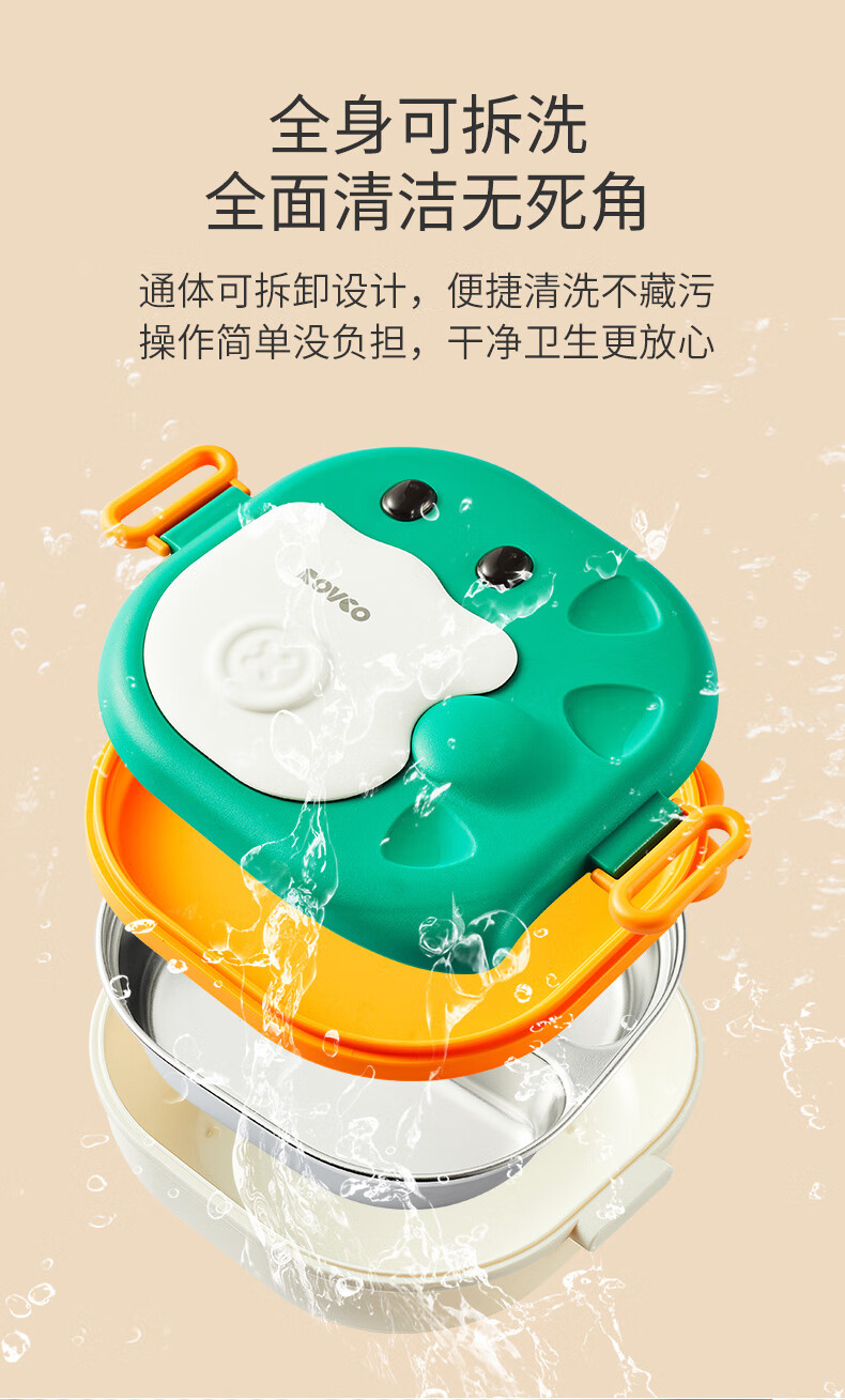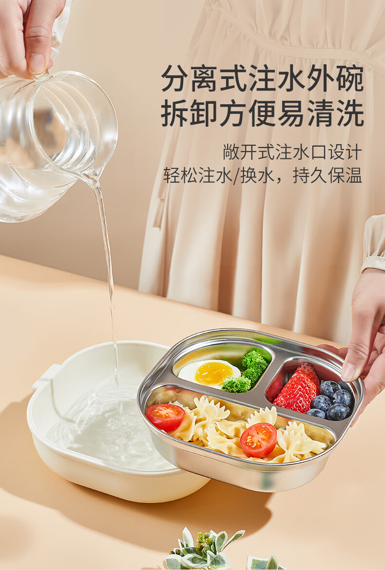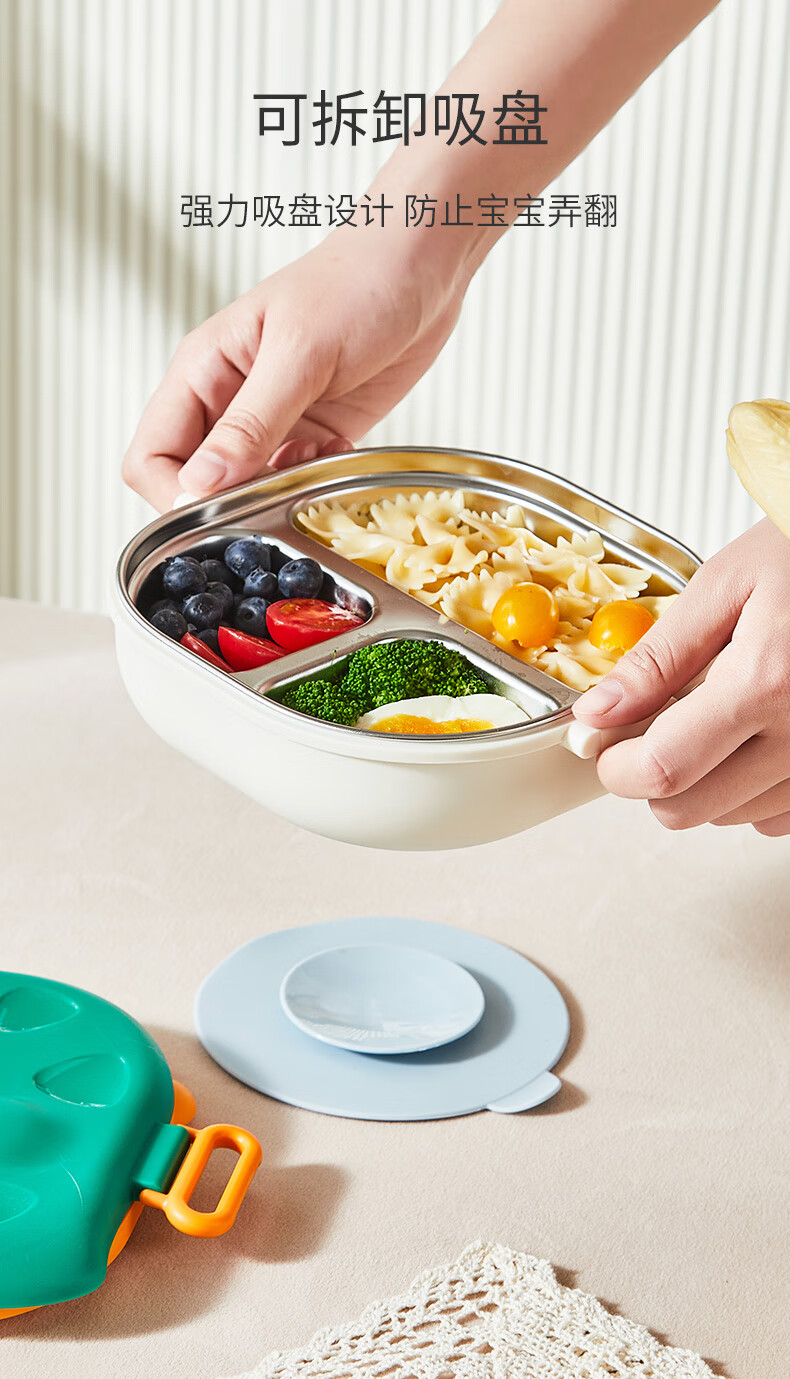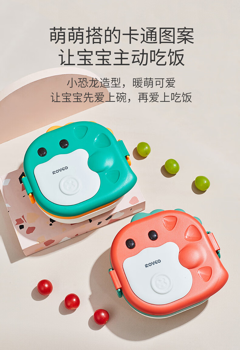 日康保温饭盒 儿童分格餐盘辅食碗 不锈钢小学生饭盒 C1016朱红